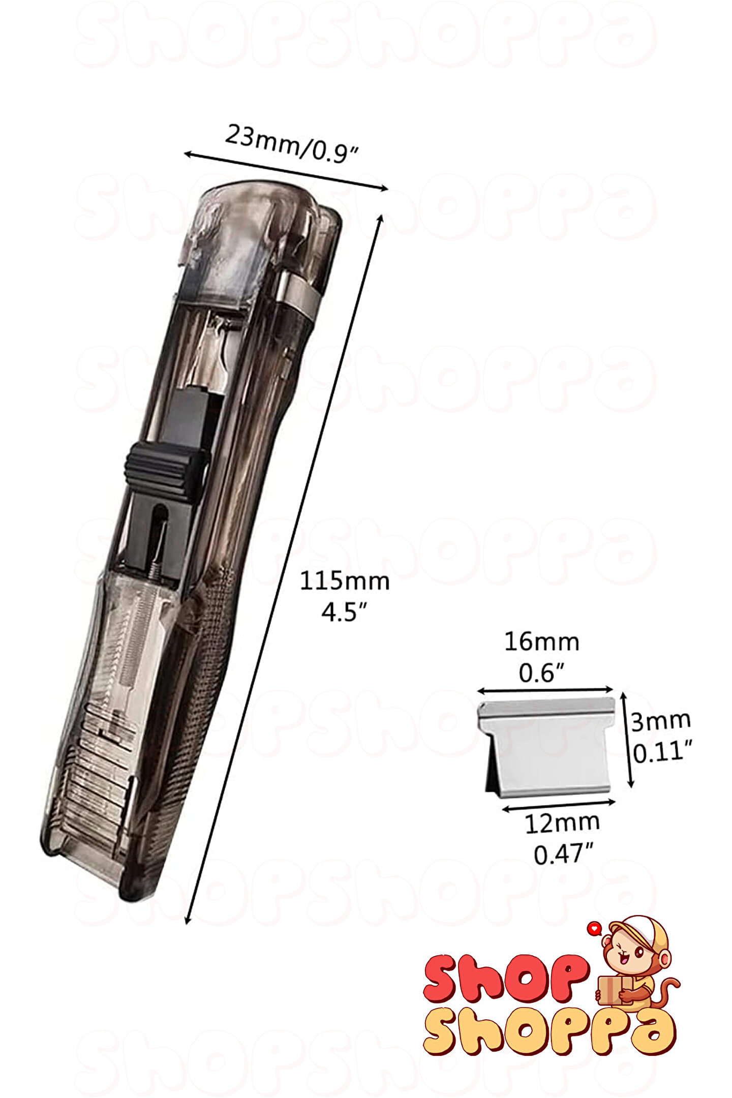 Boyutlar: İtme zımbası: 11.5x2.5 cm, zımba: 1.6x1.3 cm