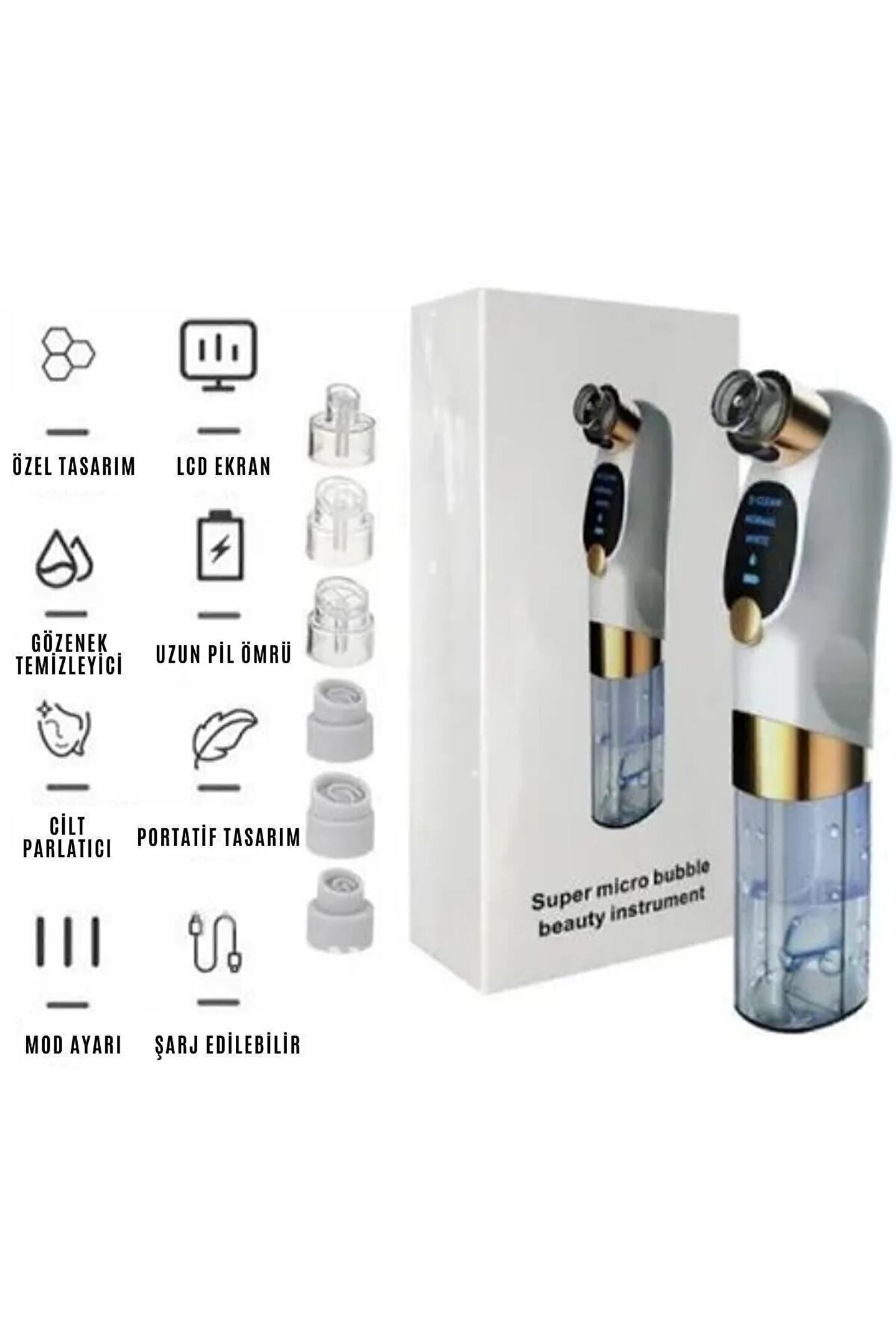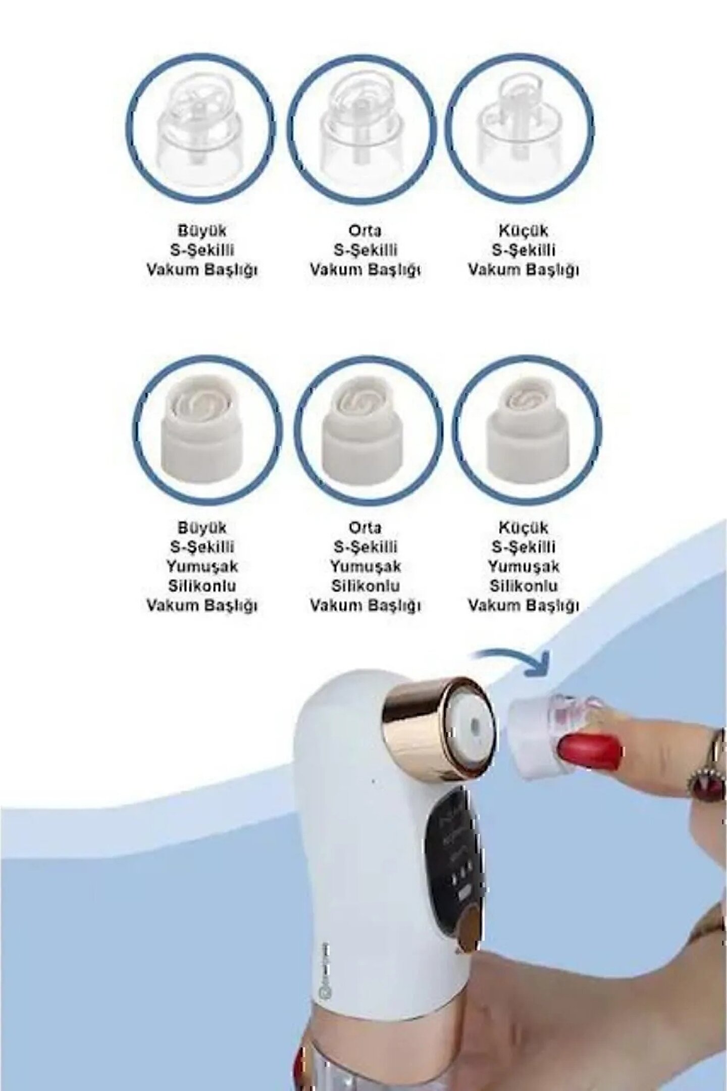Ürün hazne ve başlık kısmı olmak üzere 2 kısımdan oluşmaktadır Cildinize yapacağınız her işlemde farklı başlık kullanabilirsiniz 6 adet başlığı mevcuttur.