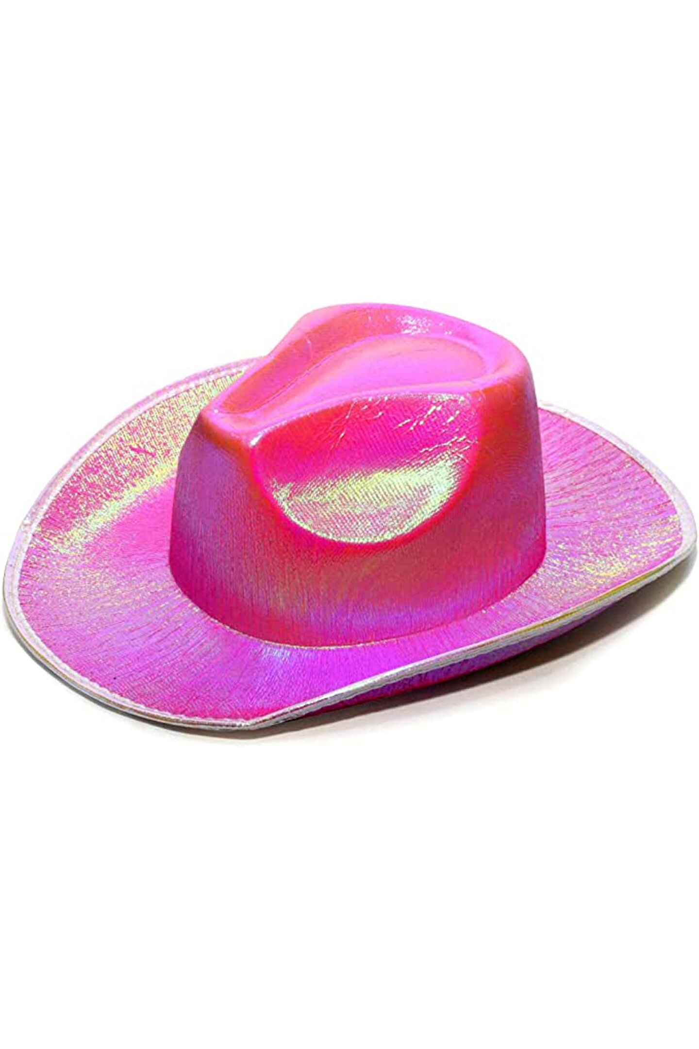 Samur Parti Parti Aksesuar & Kostüm Neon Hologramlı Kovboy Model Parti Şapkası Pembe Yetişkin 39x36x