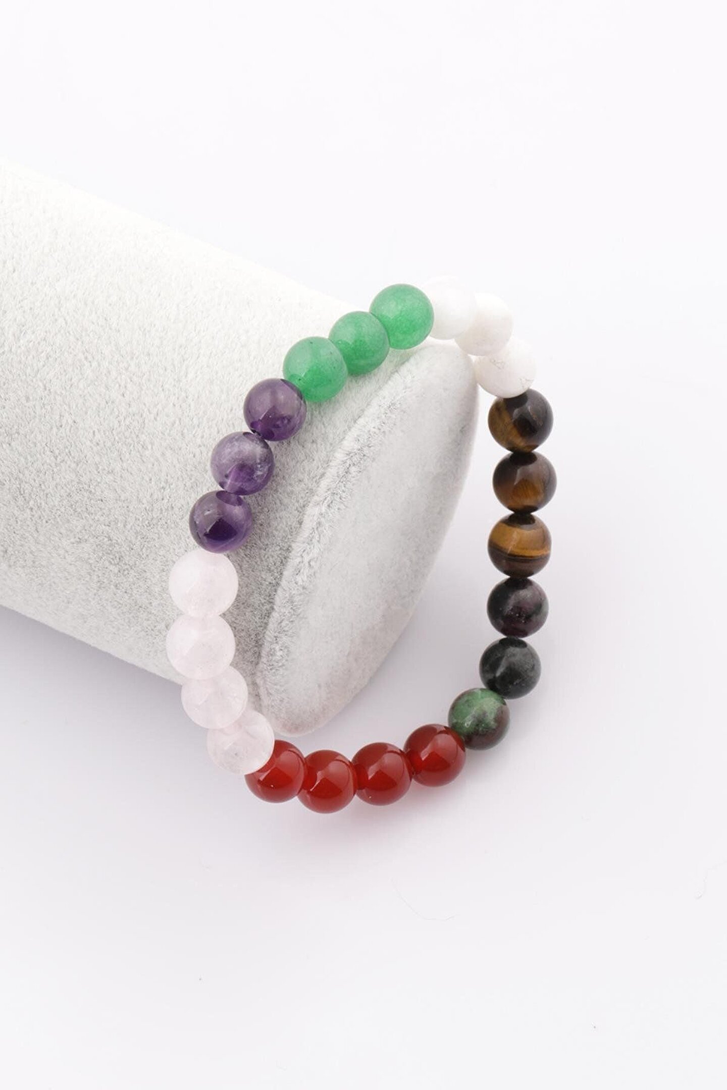 Tane Boyu 8 mm.; ; Ağırlık 18 gr.; ; Uzunluk 19 cm.; ; Esnek Lastik Misinaya Dizilmiştir Her Bileğe Uyum Sağlar.; ; Yengeç Burcuna Uyumlu Akik,Kaplan Gözü,Ay Taşı, Aventurin,Ametist, Pembe Kuvars ve Anyolit Taşlarından Oluşmaktadır.; ; Ürün Fotoğrafı Temsili Fotoğraftır, Ürünümüz Doğal Taş Olduğundan Renklerinde, Ağırlıklarında ve Boyutlarında Küçük Farklılıklar Gösterebilir.;