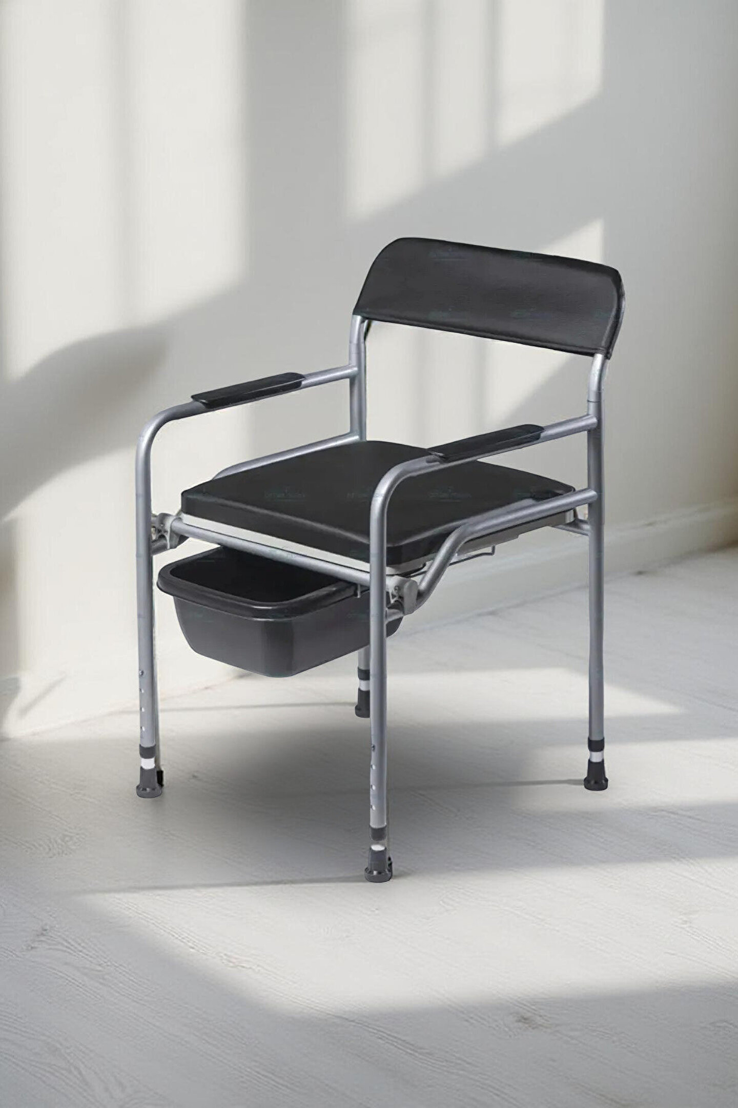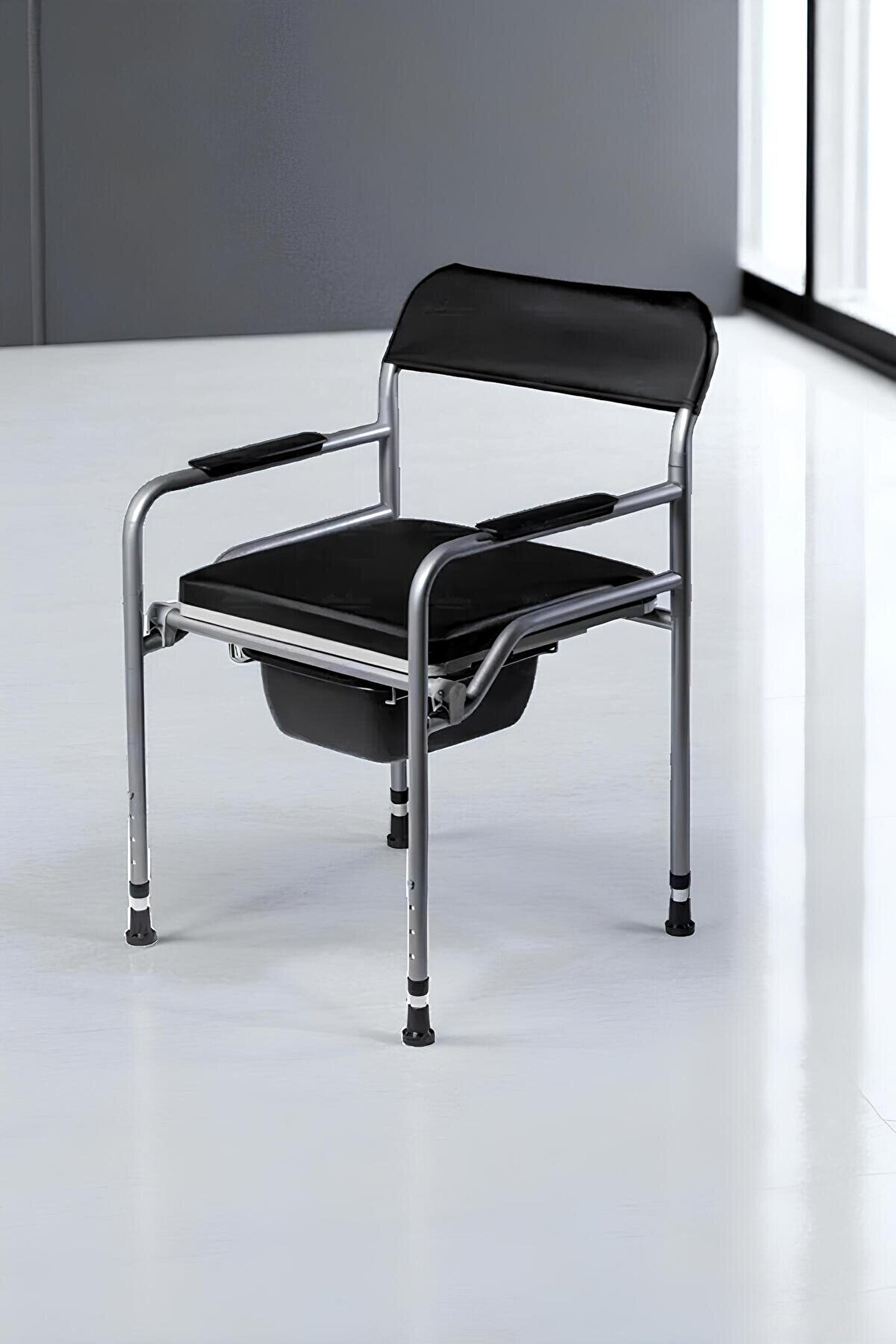 - Seyyar tasarımı sayesinde, evde veya dış mekanlarda kolayca taşınabilir ve kullanılır.; - Katlanabilir yapısı ile yer kaplamaz ve saklama konusunda pratik çözümler sunar.; - Klozetli özelliğiyle hijyenik bir kullanım sağlar; tuvalet ihtiyacınız olduğunda rahatça oturabilirsiniz.; - Yükseltilebilir mekanizması sayesinde farklı boyutlardaki kullanıcılar için idealdir ve kişisel konforunuzu artırır.; - Menşei Türkiye'den gelen bu ürün, yerel üretim kalitesini yansıtarak dayanıklılık ve güvenilirlik sunar.; -Ürün hastanın banyoda da kullanması ve oda içinde de sandalye görevi görebilmesi için hasta psikolojisi düşünülerek deri döşemeli lüks şekilde tasarlanmıştır.;