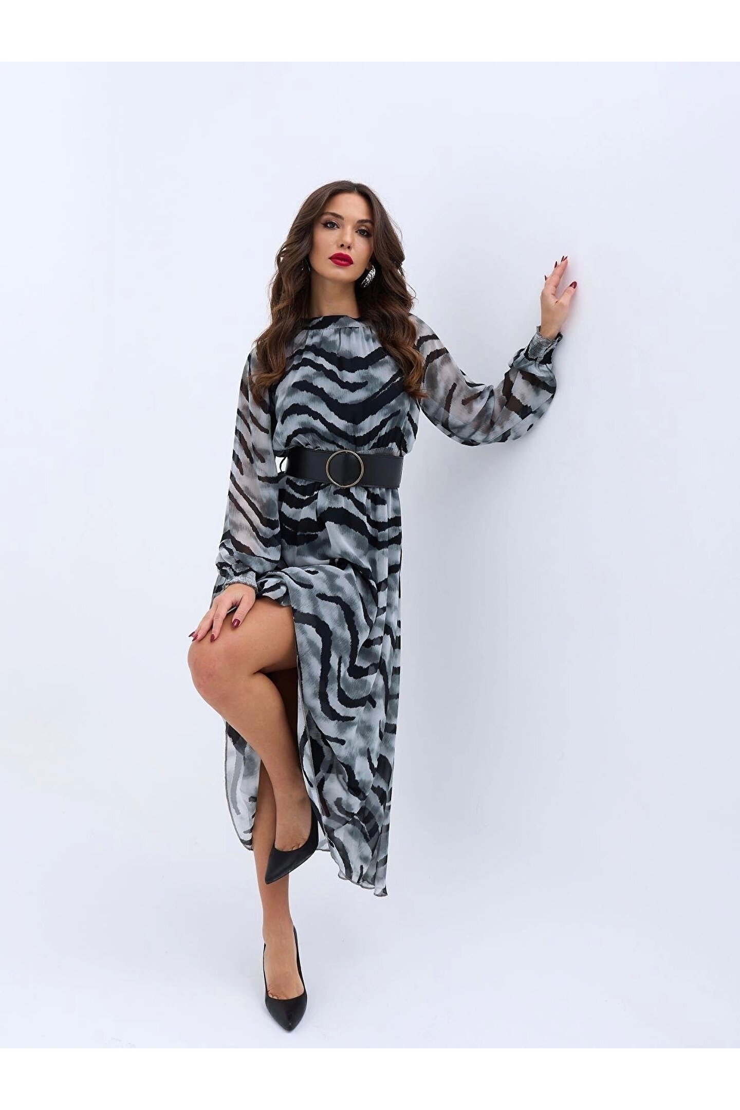 Modelin Ölçüleri: Boy:165, Kg:55, Göğüs:90, Bel:72, Kalça: 100