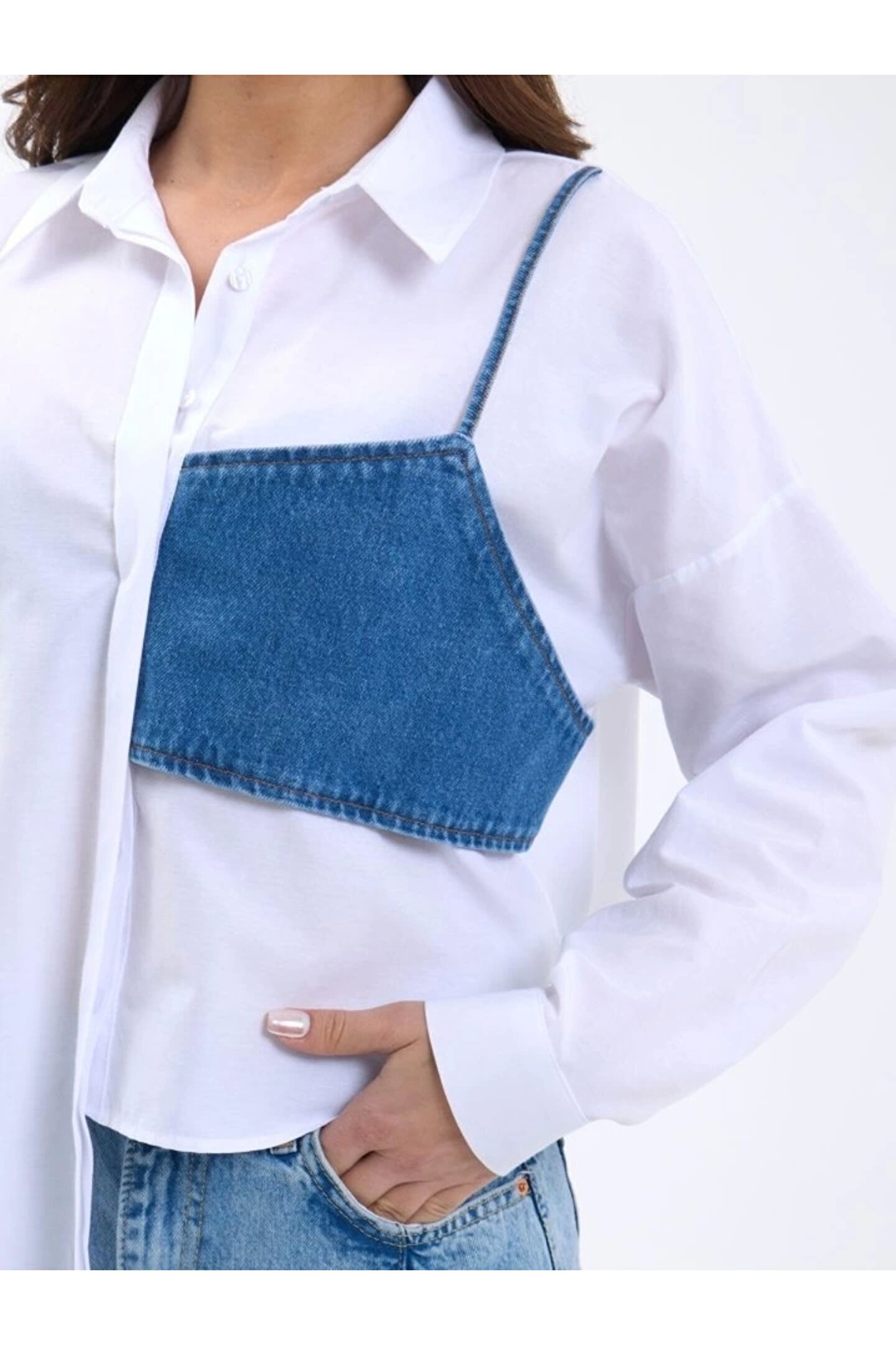 5419 GÖMLEK-MAVİ CEPLİ BEYAZ