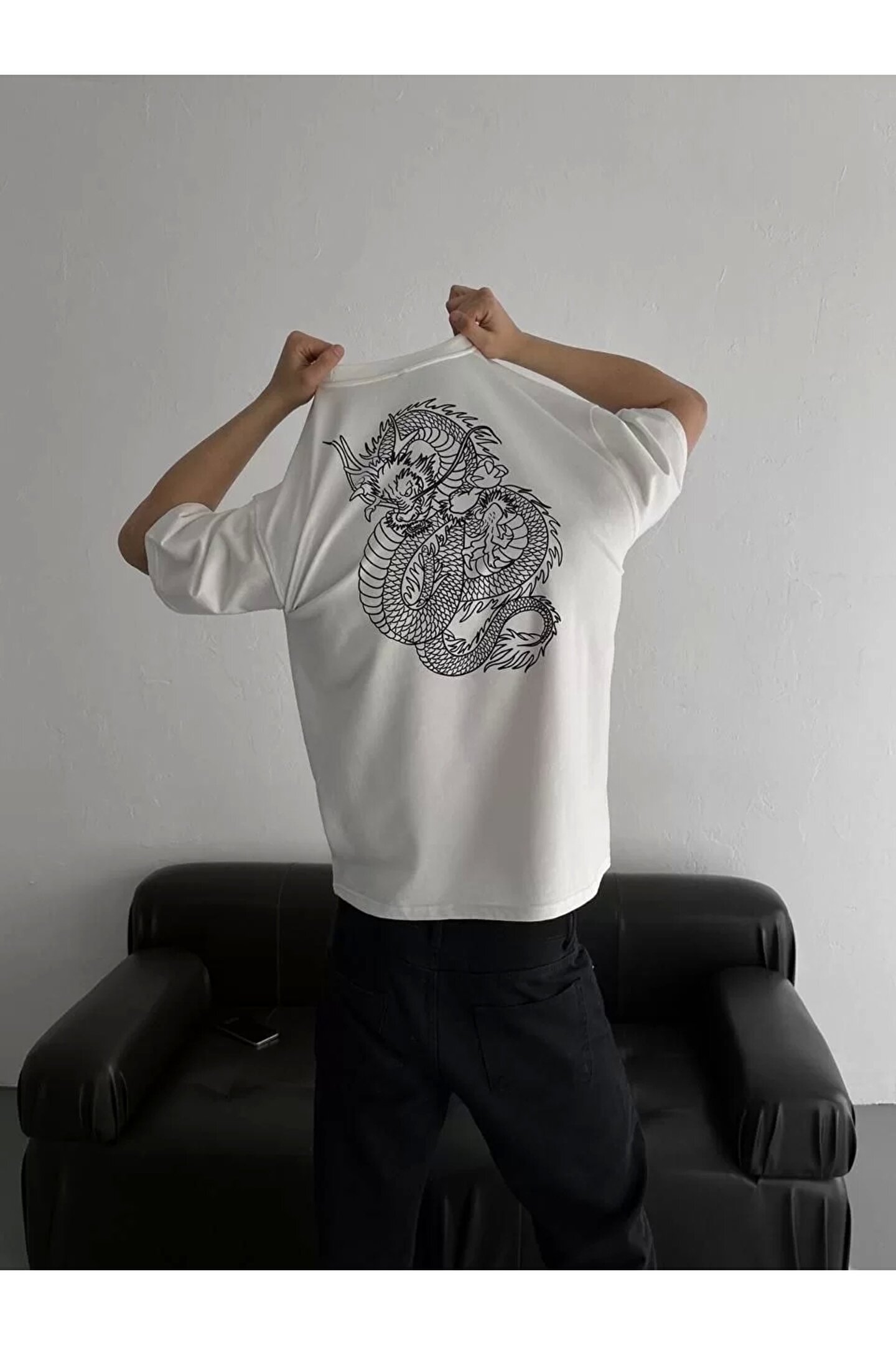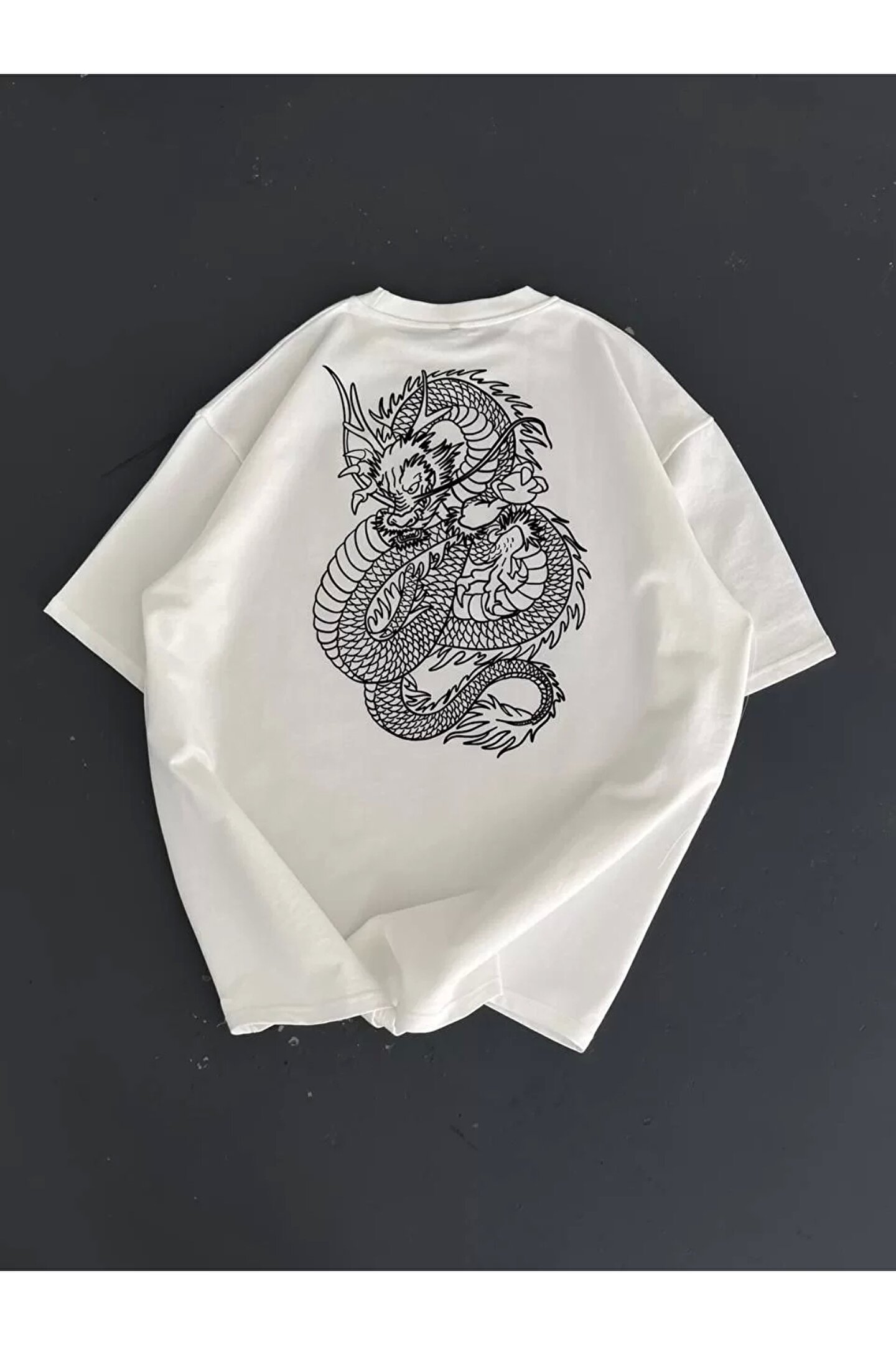 Baskılı Oversize Bisiklet Yaka T-shirt - Beyaz