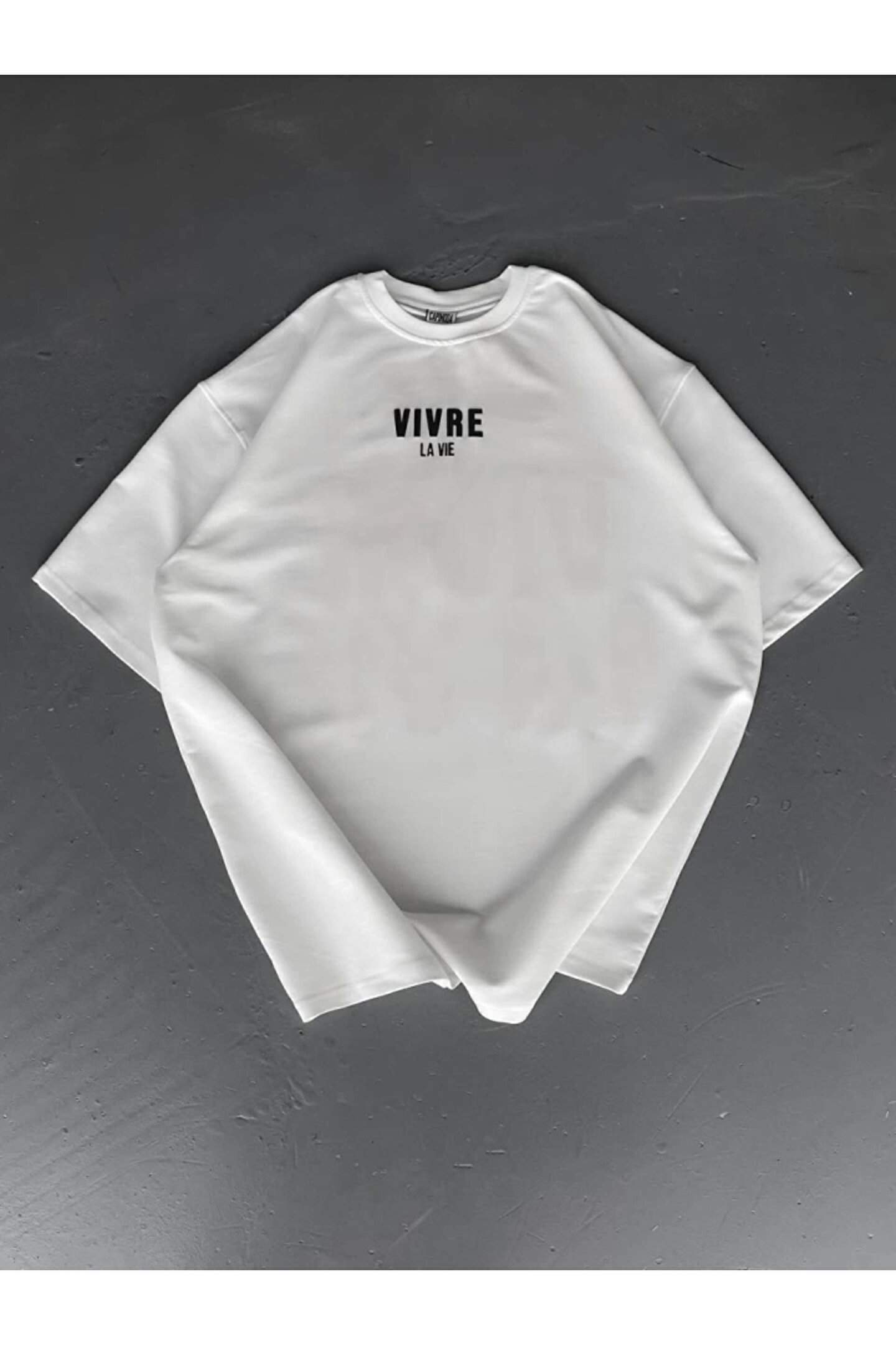 Baskılı Oversize Bisiklet Yaka T-shirt - Beyaz
