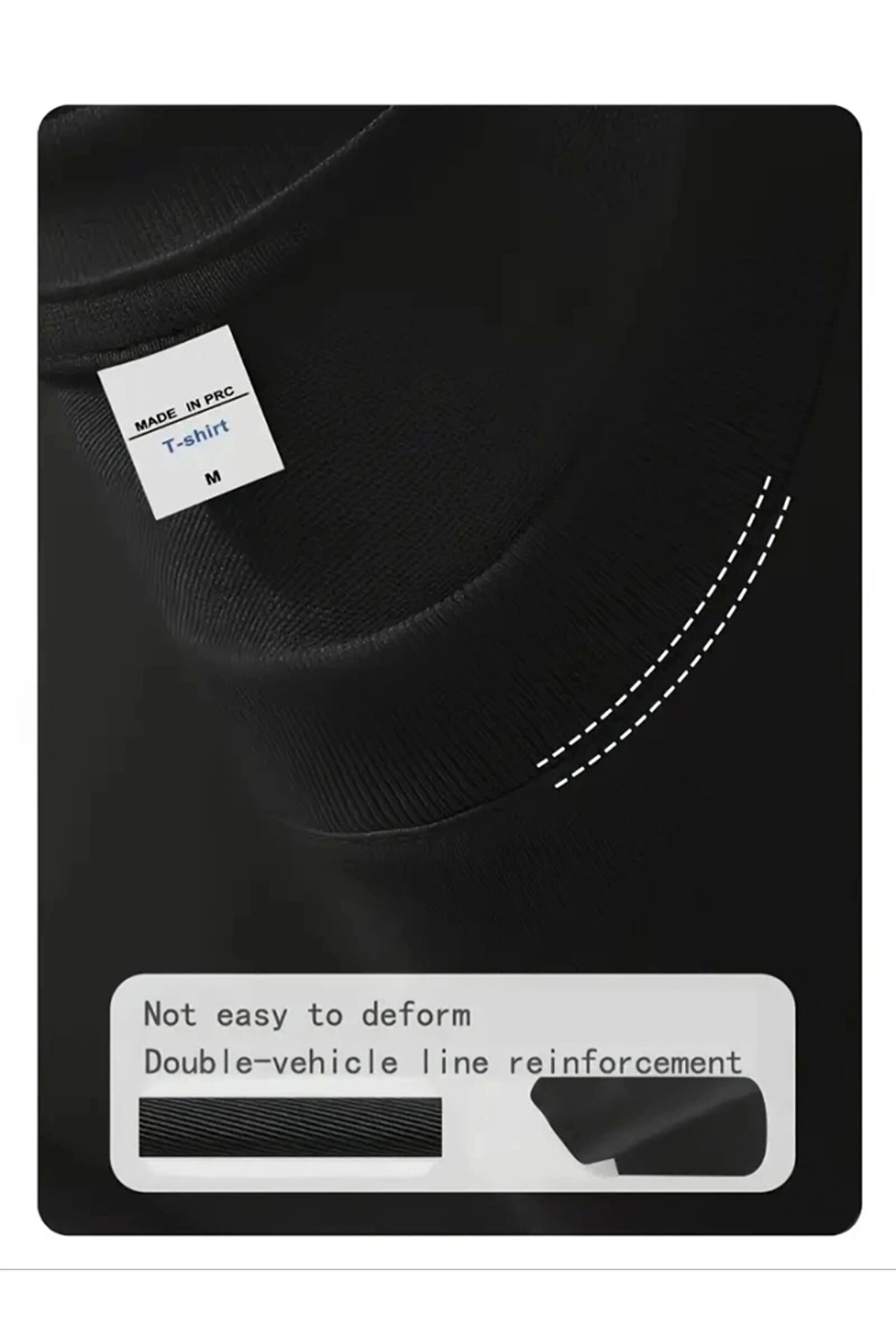 Baskılı Oversize Bisiklet Yaka T-shirt - Siyah
