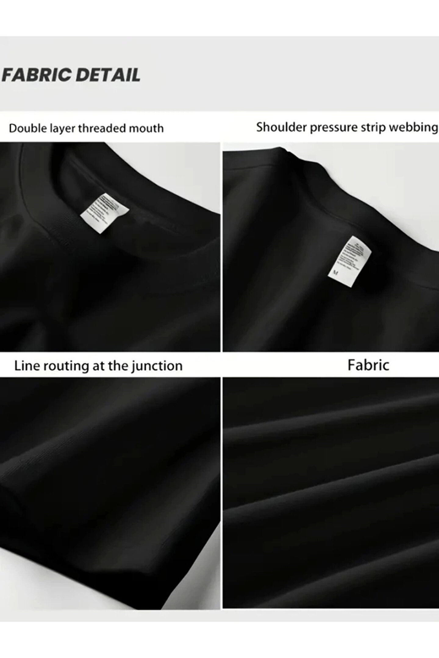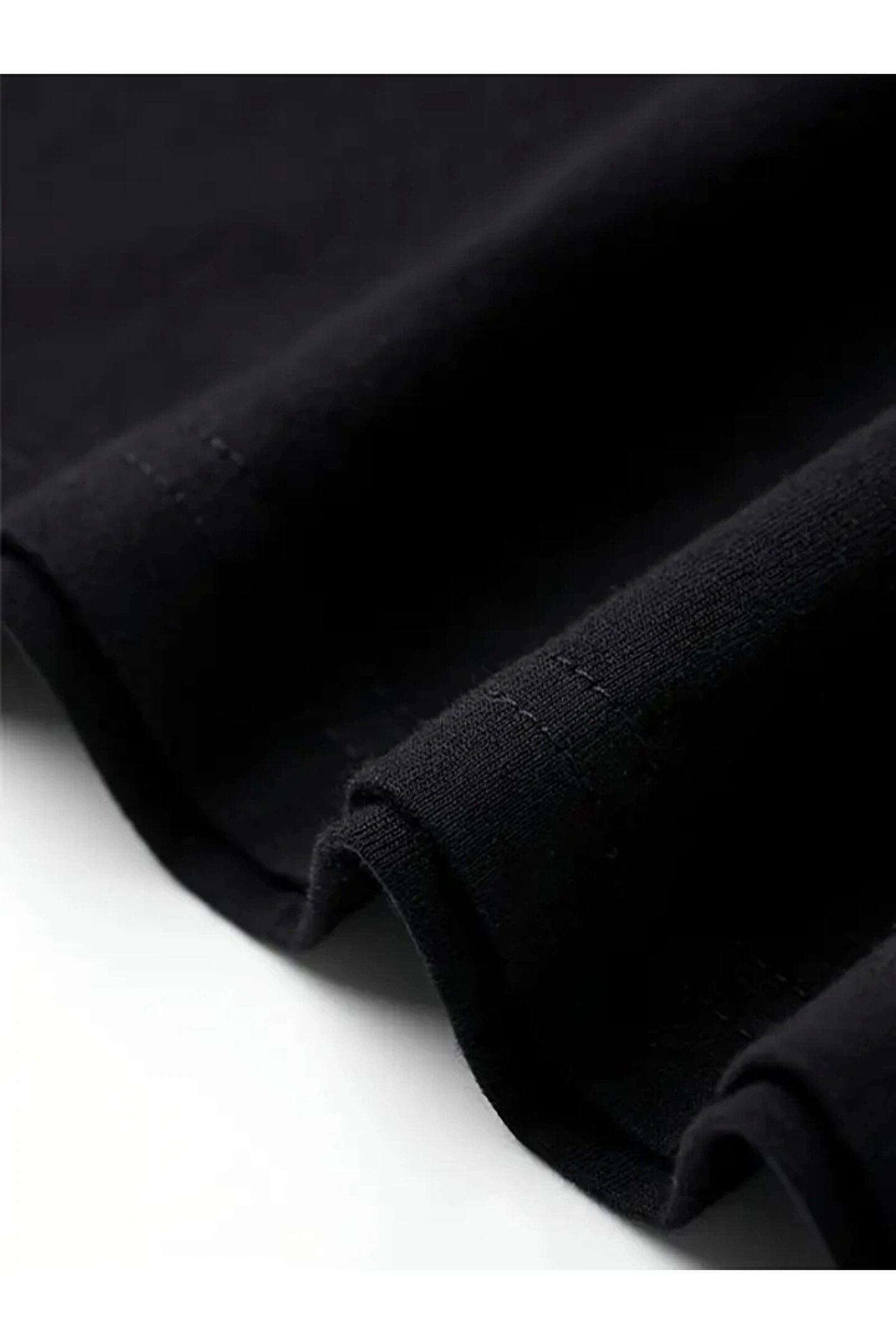 Baskılı Oversize Bisiklet Yaka T-shirt - Siyah