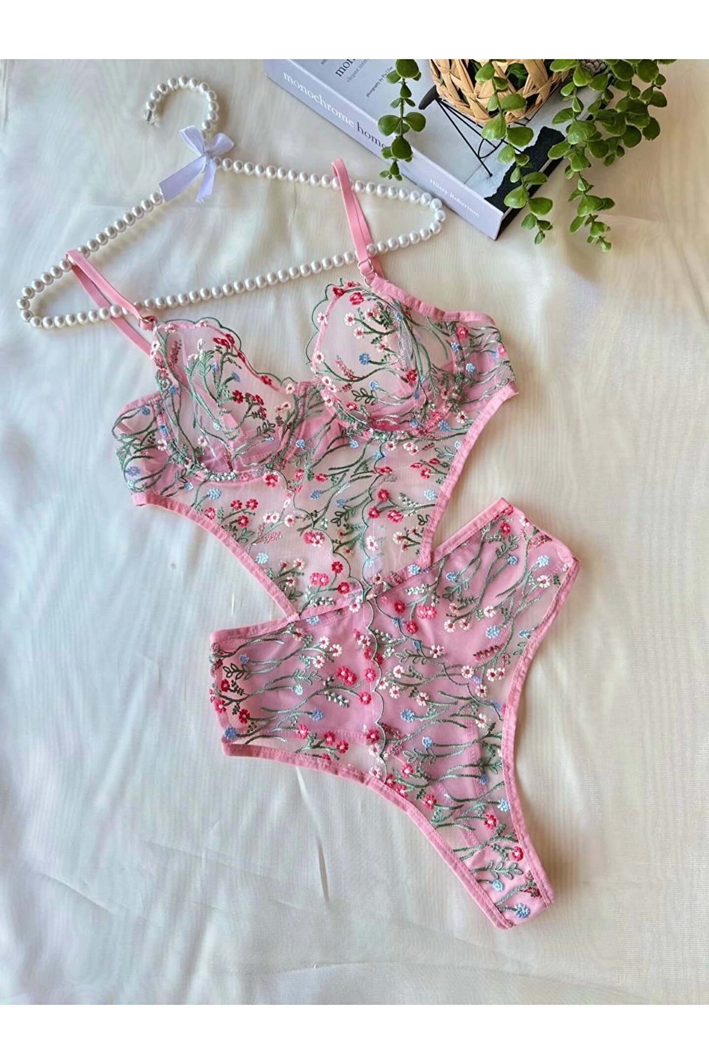 Colette Çiçek İşlemeli Pembe BodySuit