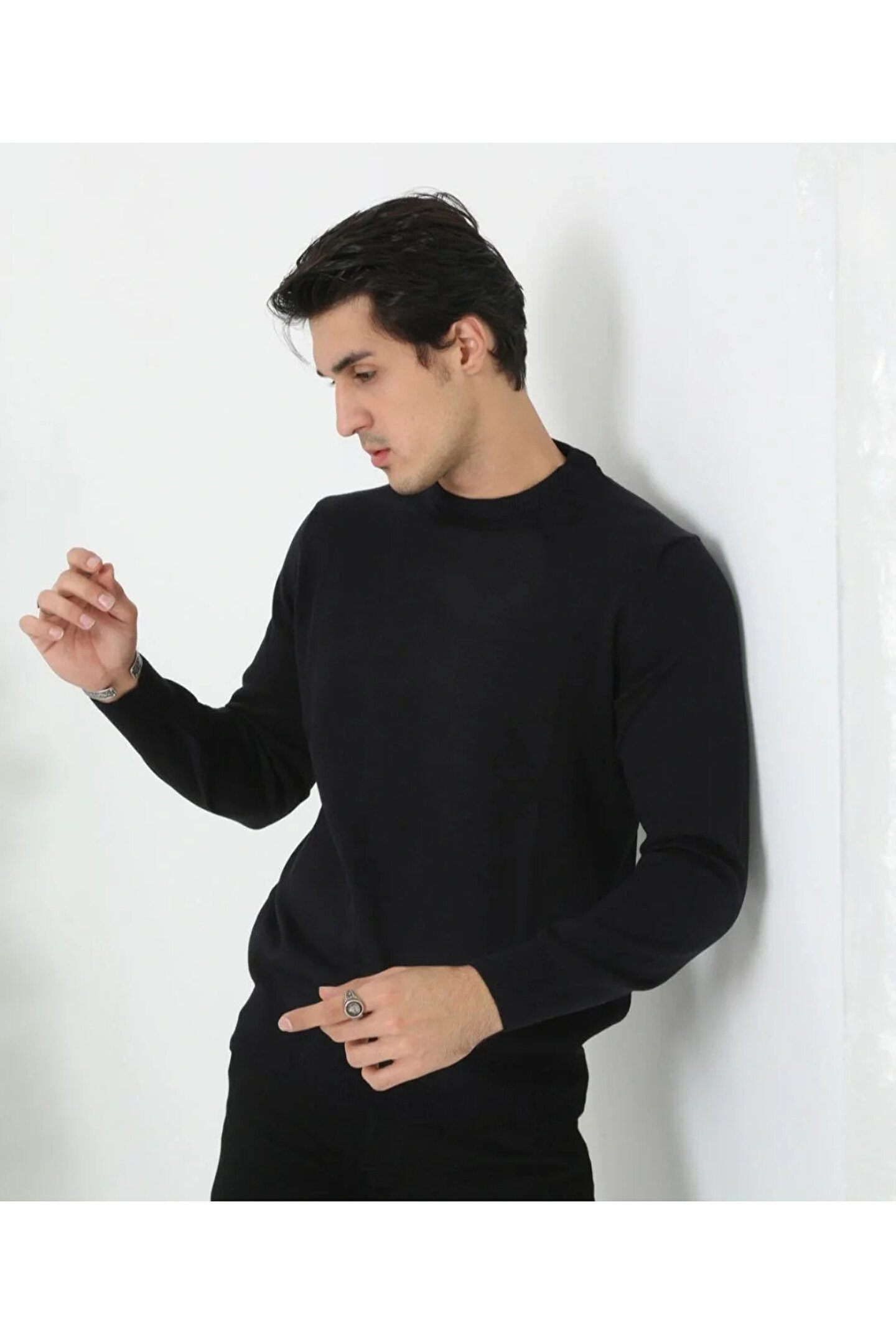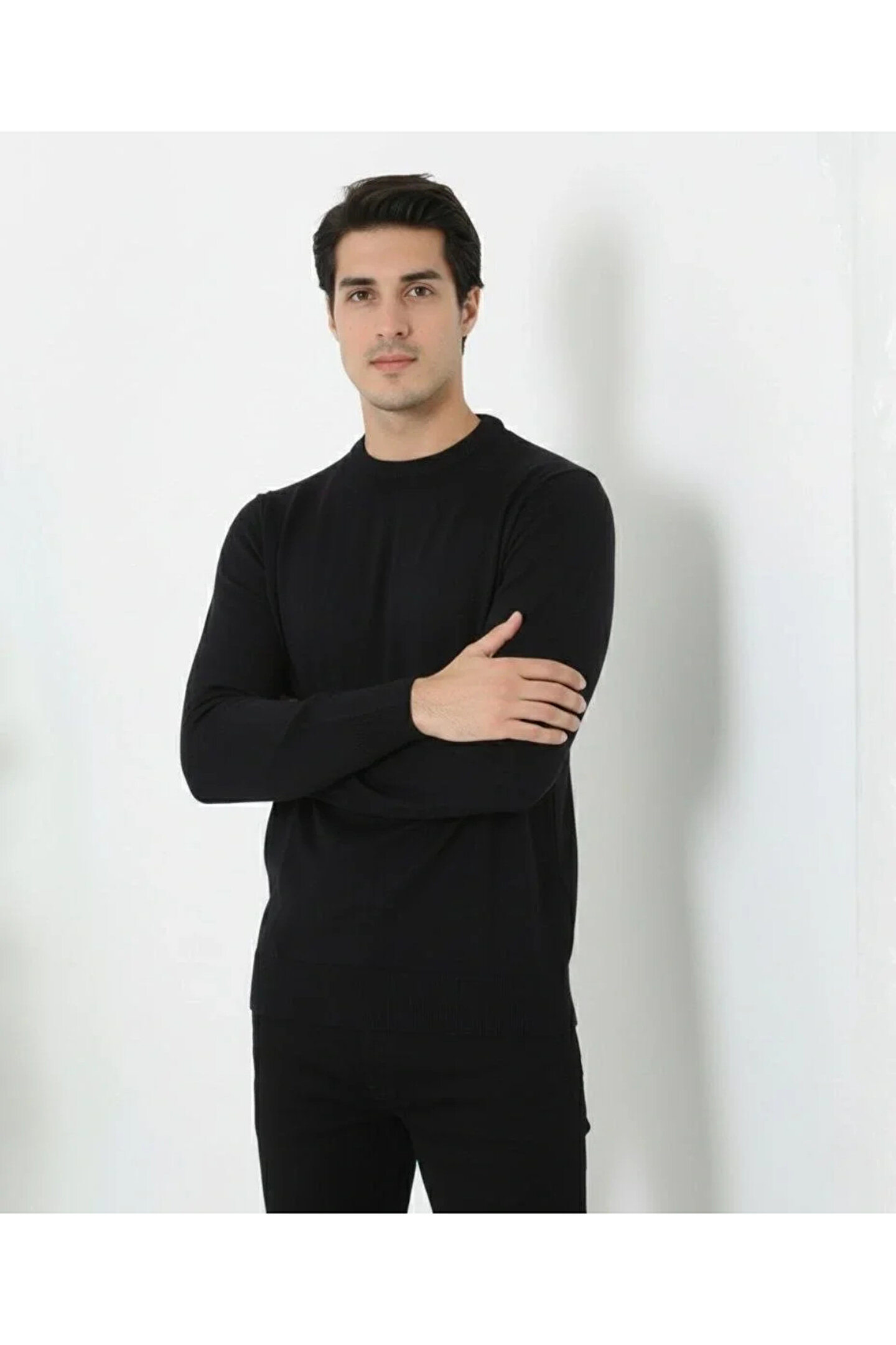 Silerra Erkek Bisiklet Yaka Triko Kazak yumuşak dokulu Pamuklu ince Dokuma, uzun kollu Rahat Regular kalıp -