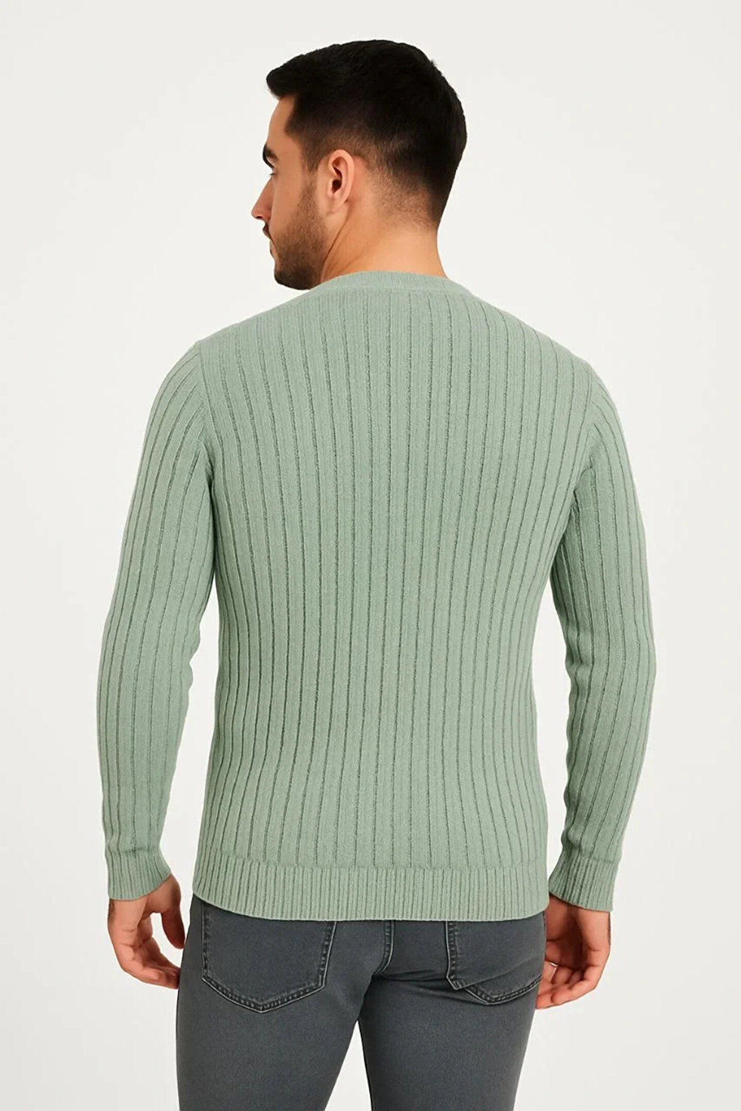 Silerra Erkek Bisiklet Yuvarlak Yaka Triko Kazak Pamuklu Kalın Fitilli Dokuma, Regular Fit Uzun Kollu Kışlık
