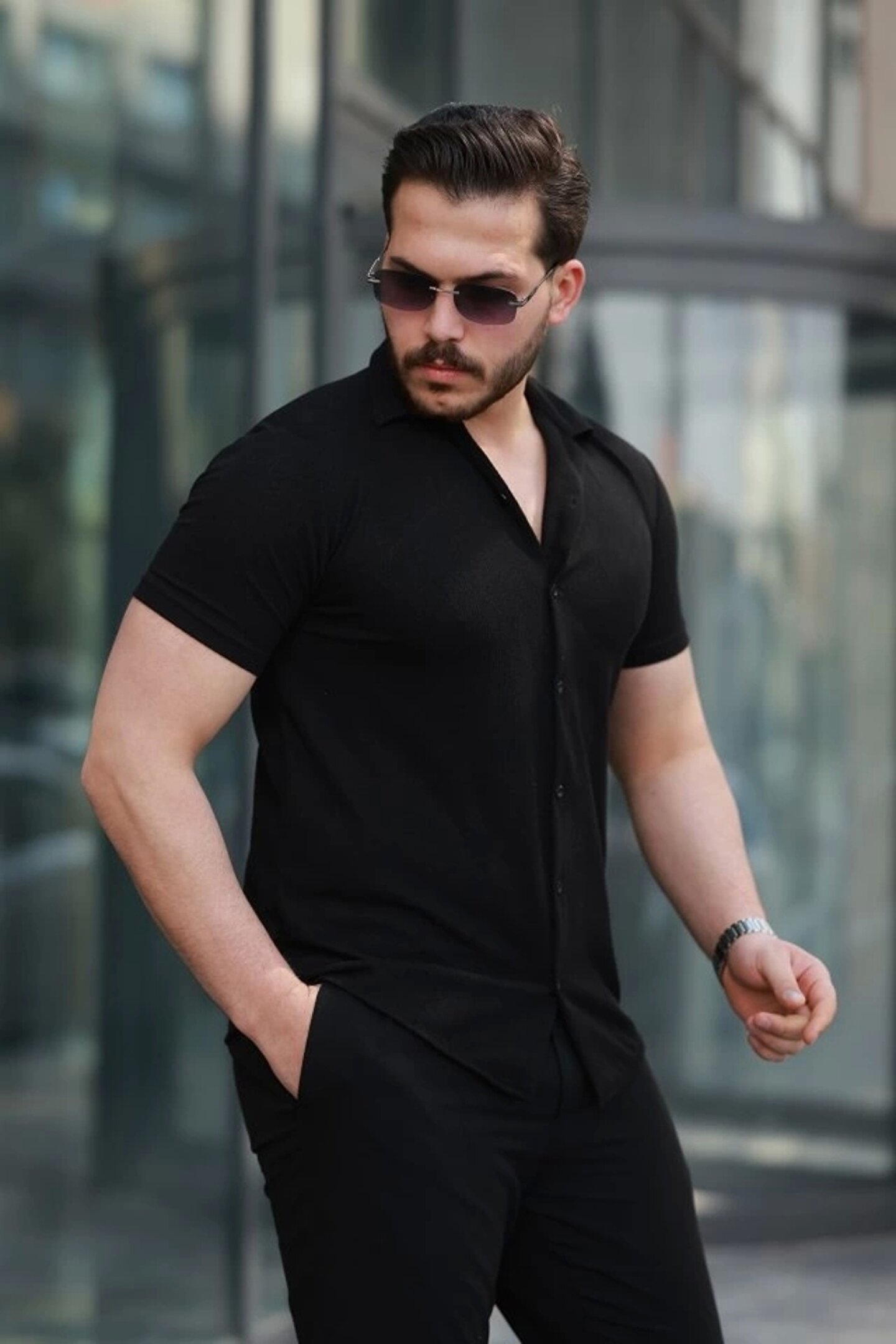 Silerra Erkek Kısa Kollu örme Kumaş Pamuklu Gömlek