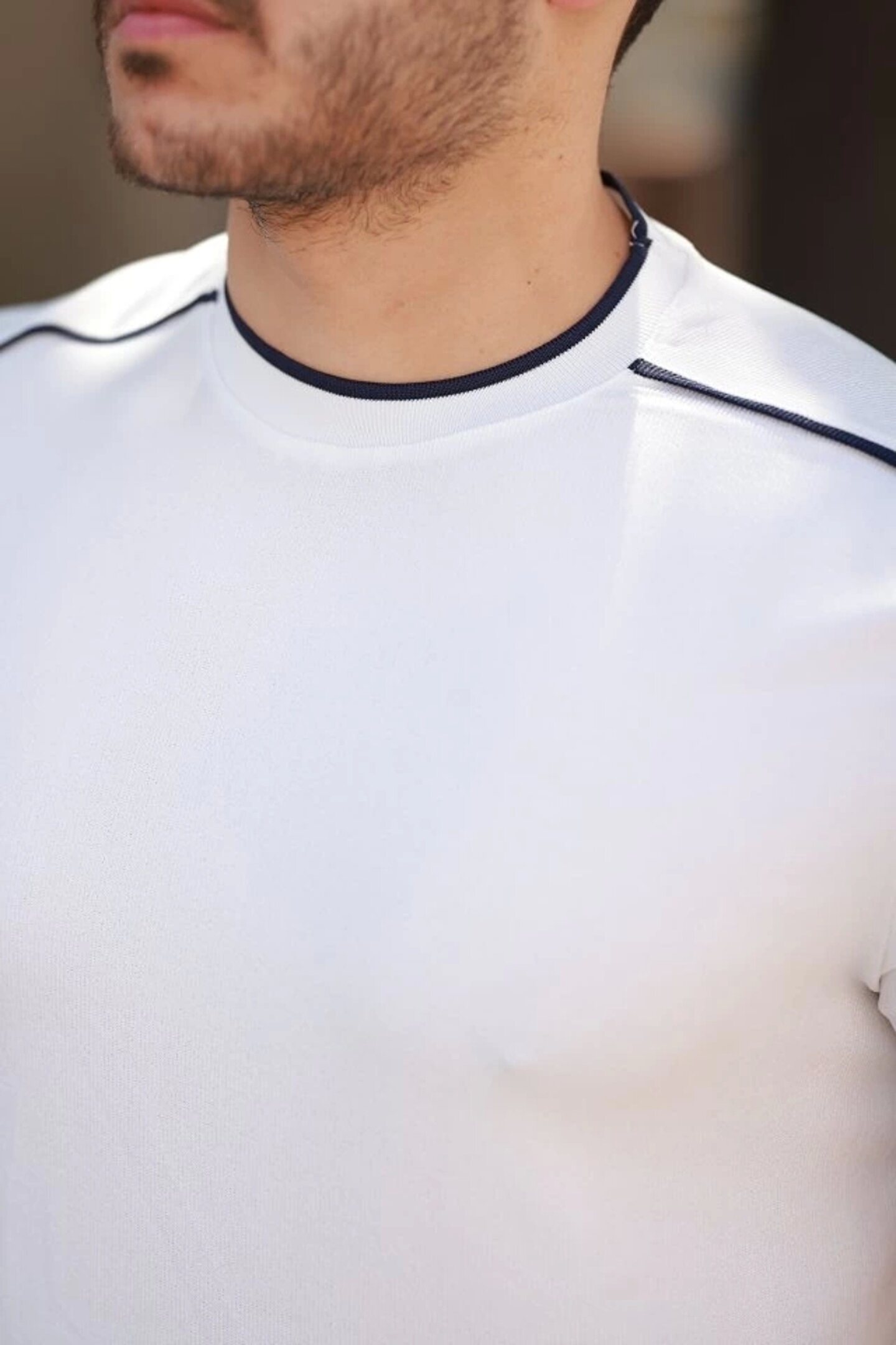 Erkek Omuzlar çizgi Detaylı Kısa Kollu T-shirt