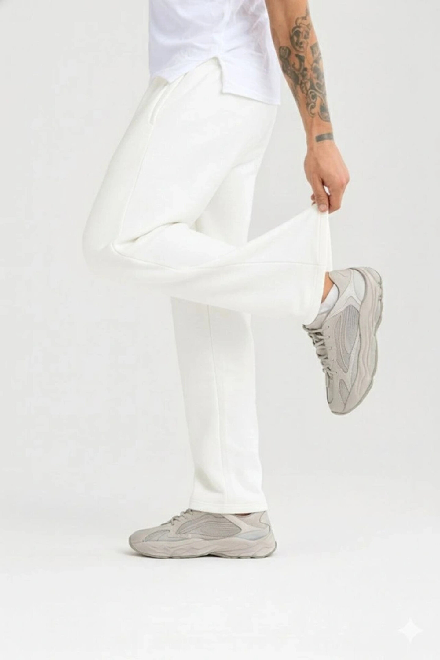 Erkek Üç Iplik Kışlık Pamuklu Ovarsize Bağcıklı Düz Paça Cepli Eşofman Altı Spor Rahat Model - Beyaz