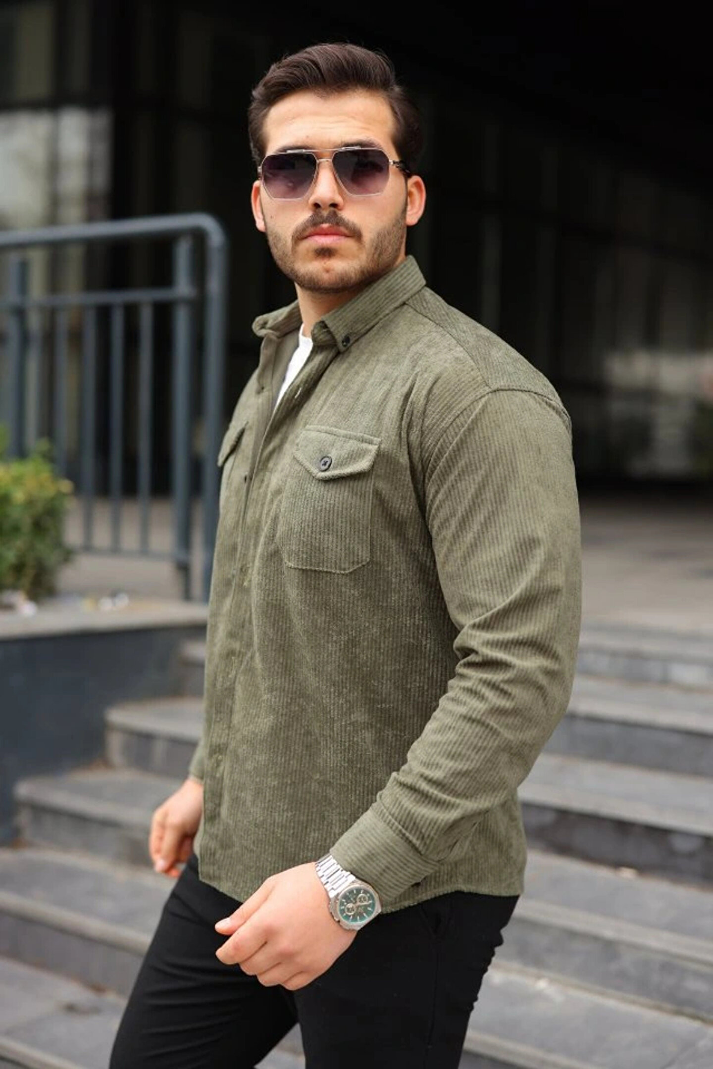 Erkek Uzun Kollu Cepli Kadife Gömlek