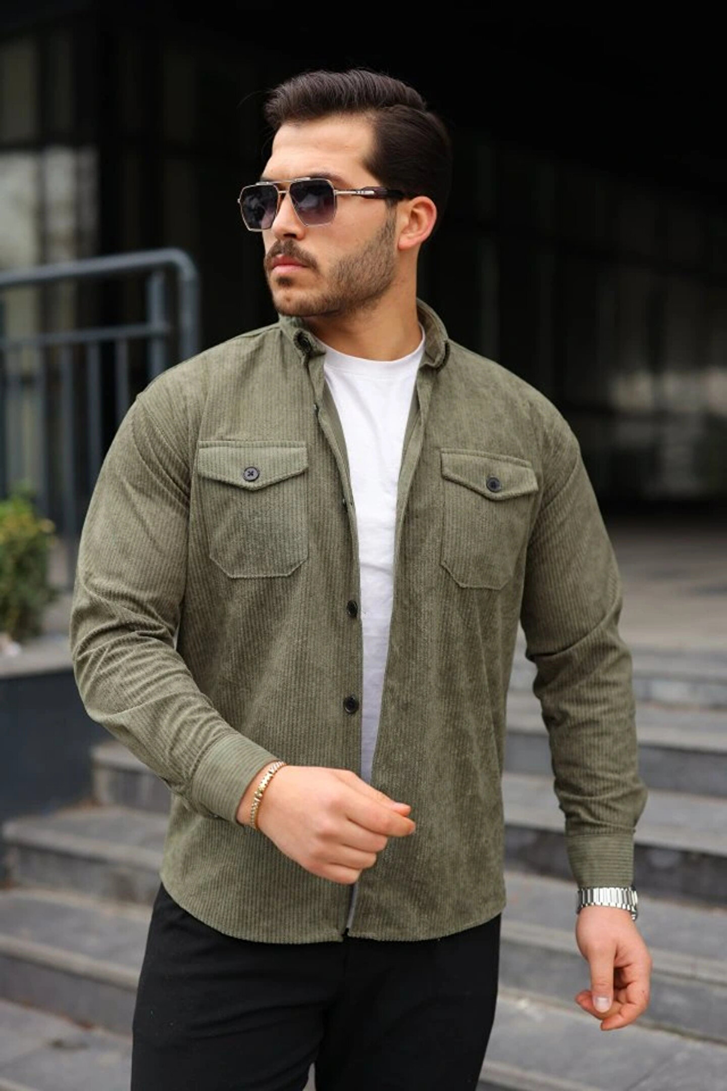 Erkek Uzun Kollu Cepli Kadife Gömlek