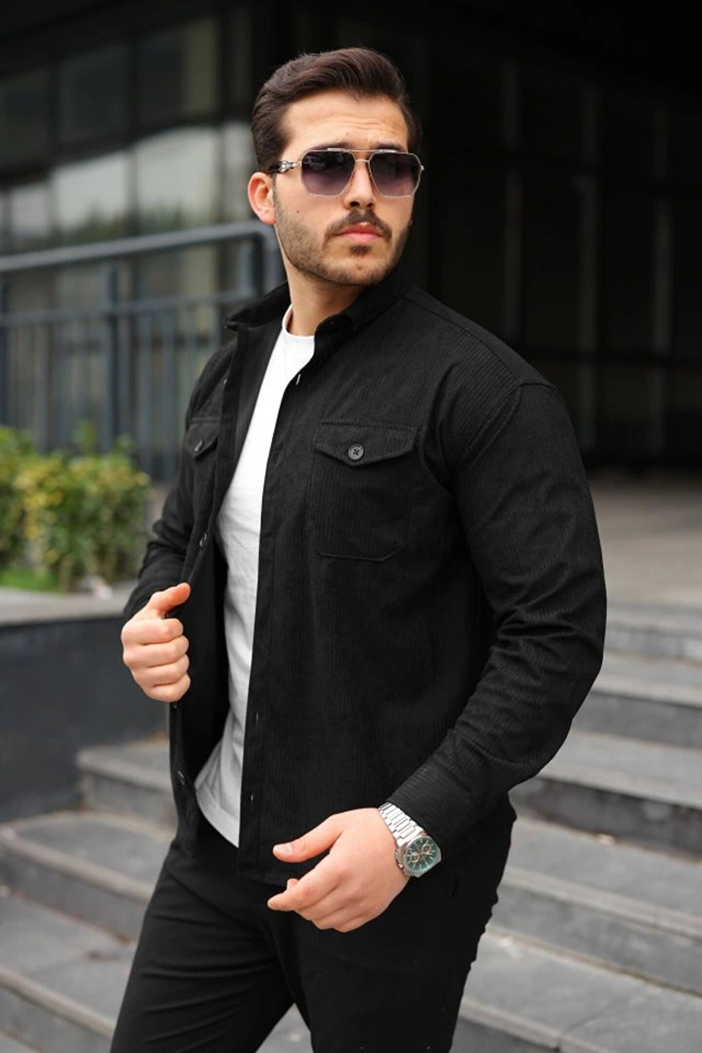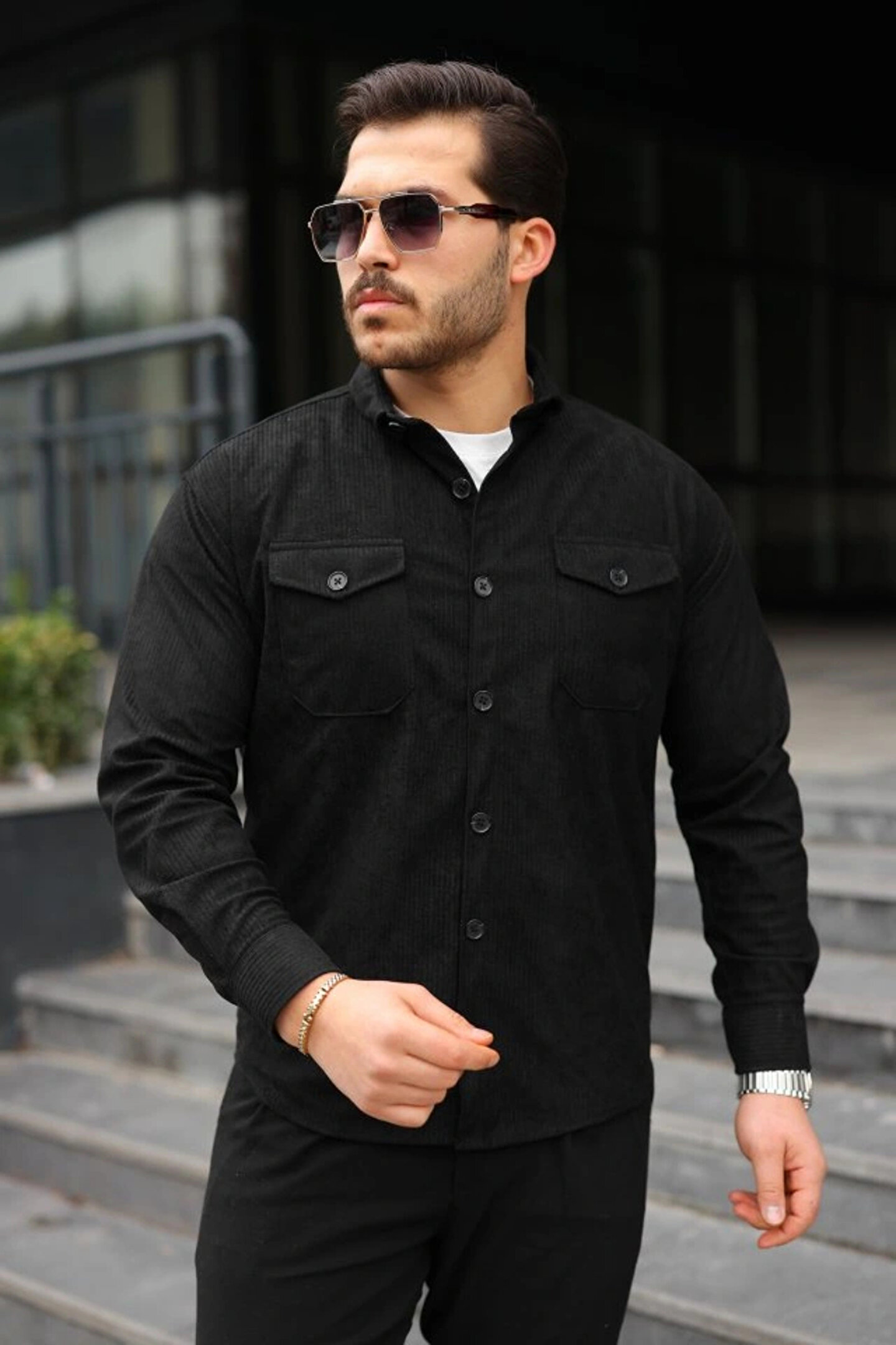 Erkek Uzun Kollu Cepli Kadife Gömlek