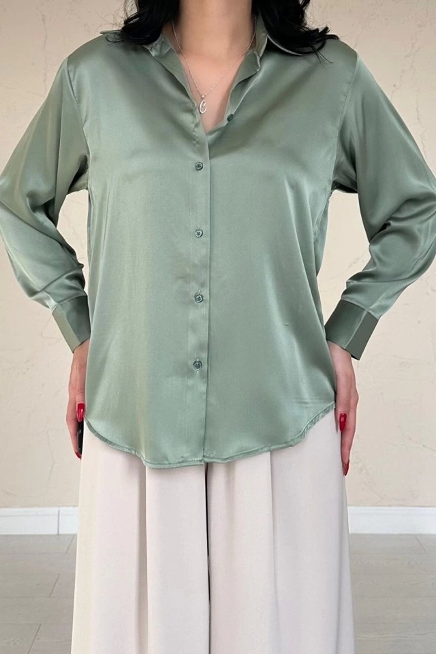Mint Saten Gömlek
