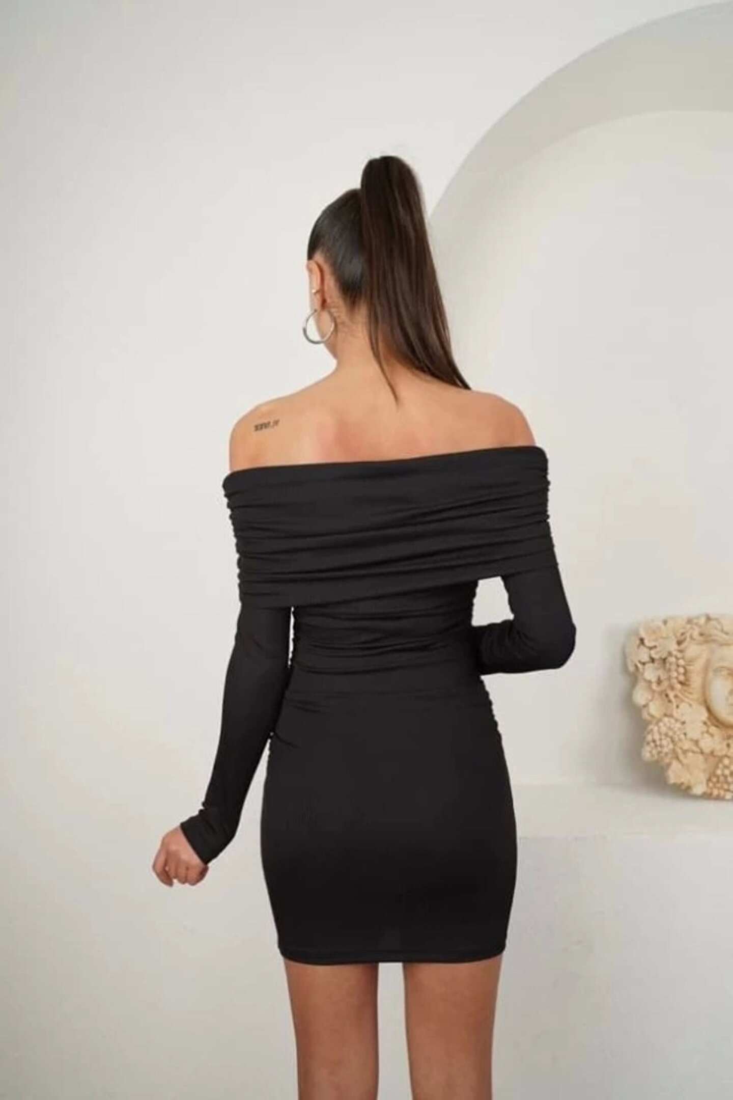Kadın Madonna Mendil Yaka Fırsat ürün Büzgülü Mini Elbise
