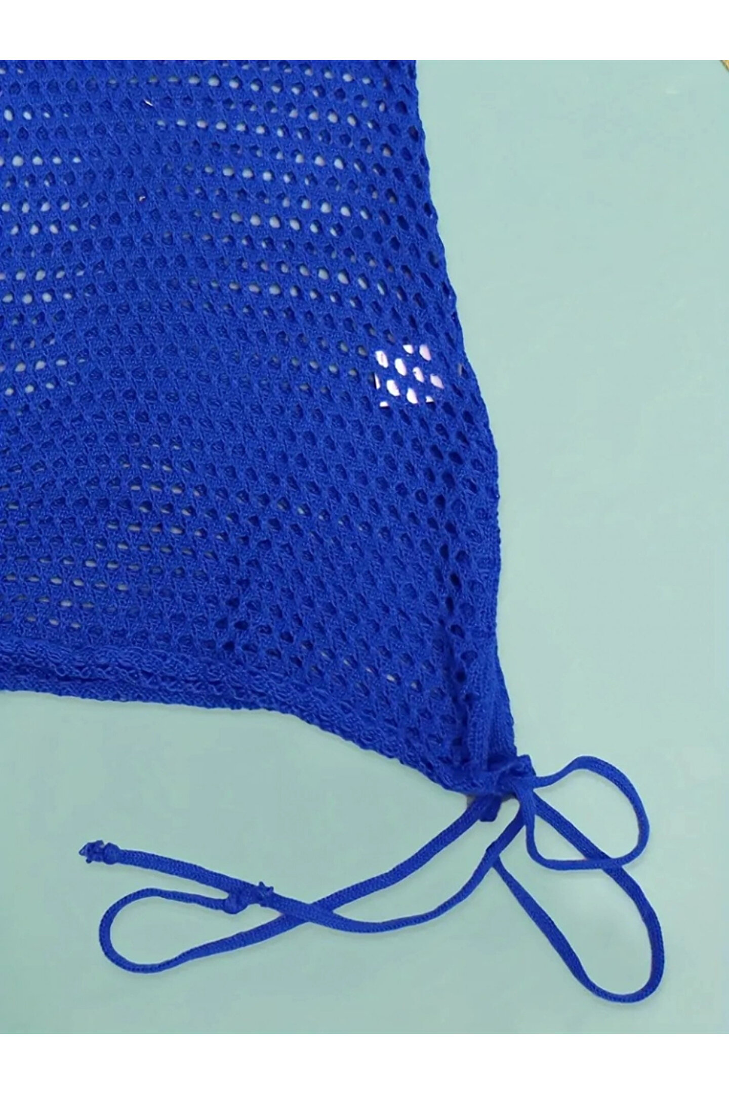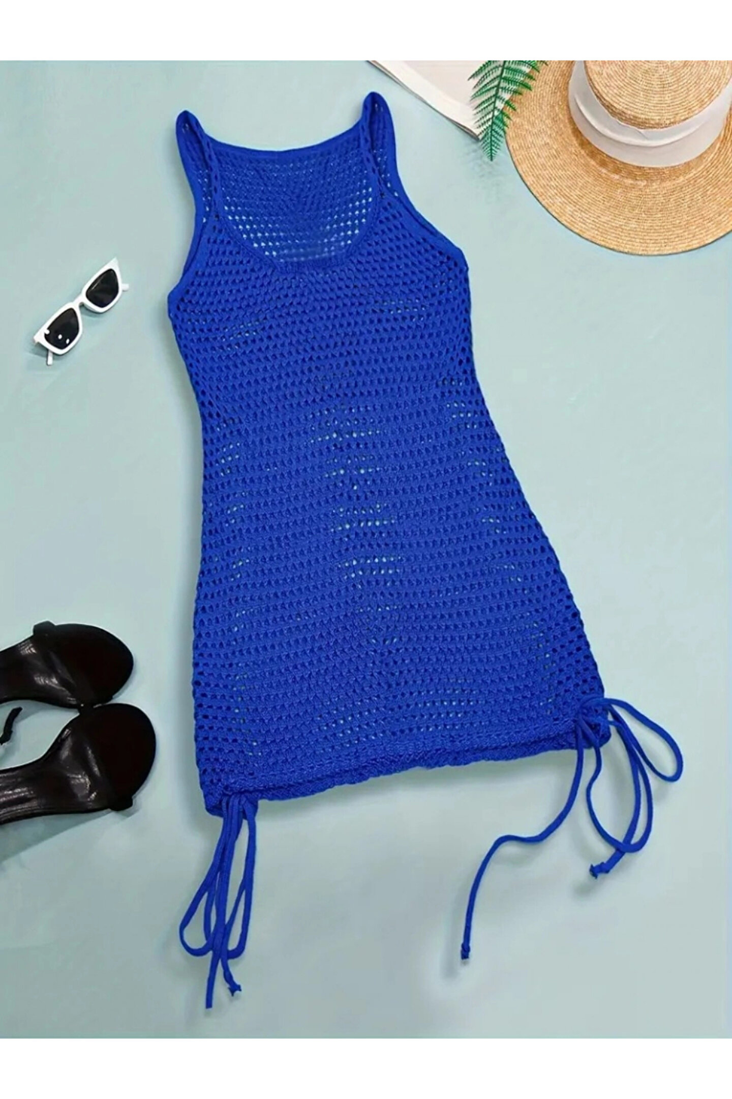 Kadın Askılı Eteği Büzgü Bağlama Detay Delikli örme Triko Pareo Elbise