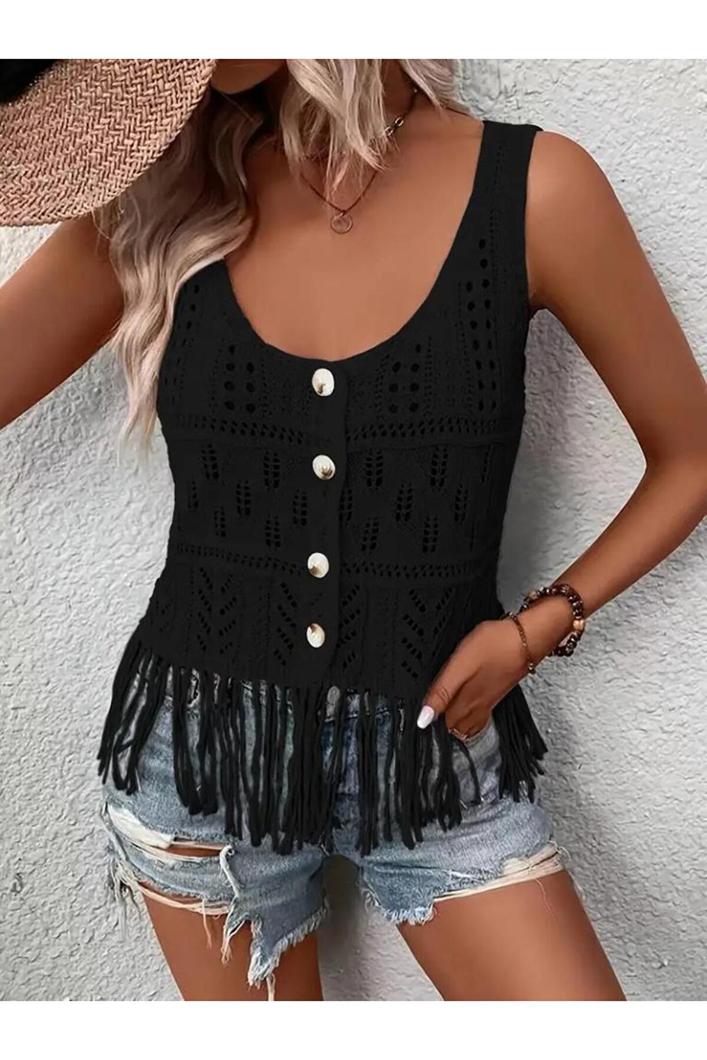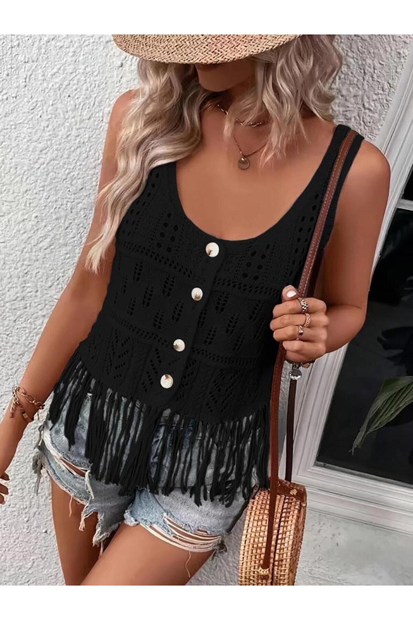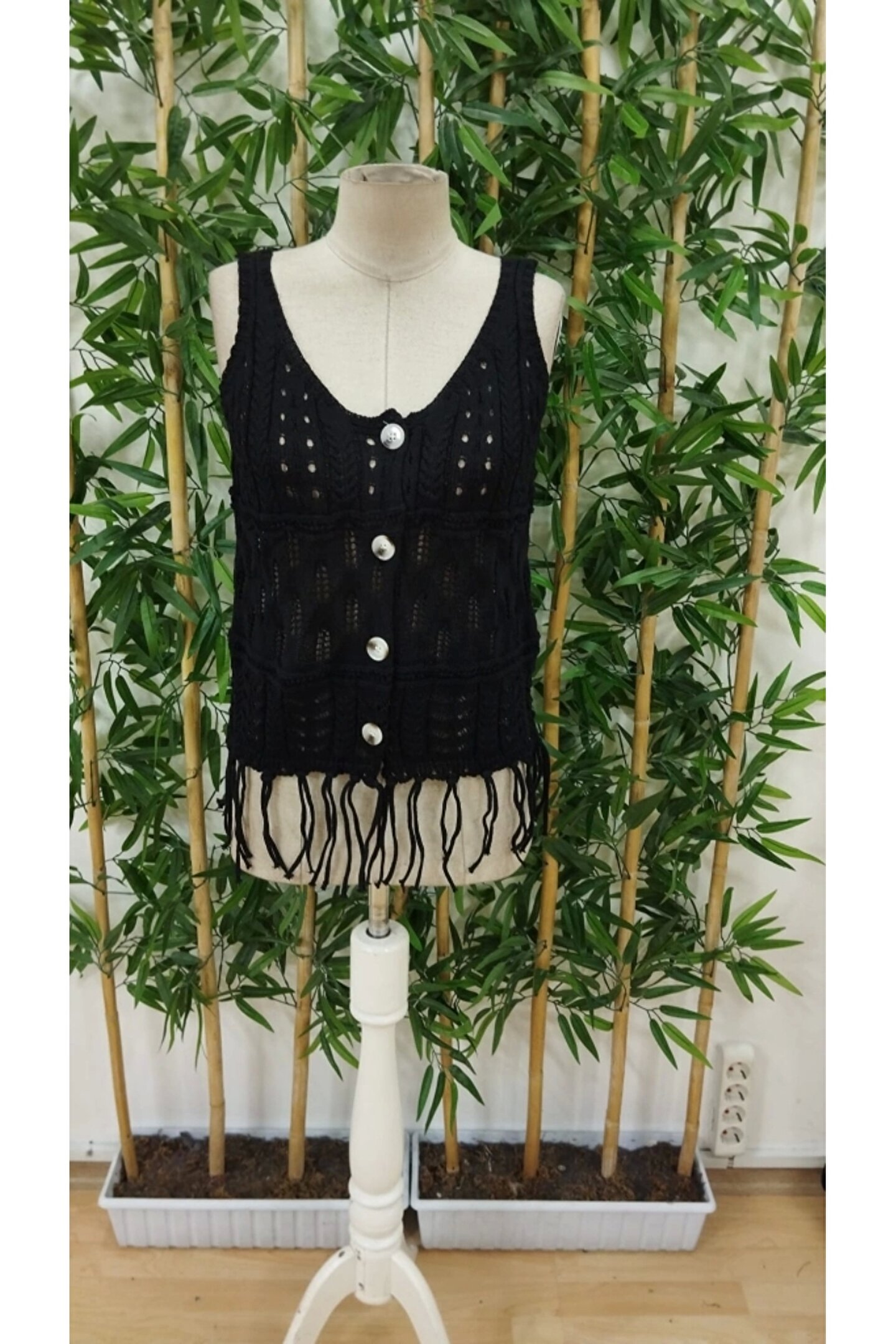 - Rahat kesimi ile günlük kullanım için ideal, yaz aylarında serin tutan triko bluz.; - %95 pamuk ve %5 elastan karışımından üretilmiş olup, cildinizle dost dokusuyla konfor sunar.; - Kolay bakım imkanı sağlayan 30 derecede makinede yıkanabilir özelliğiyle pratik kullanım sağlar.; - Sade tasarımı ve püskül detaylarıyla şıklığına zarif bir dokunuş ekler.; - Günlük giyimde rahatlıkla tercih edebileceğiniz, genç koleksiyonuna ait bu bluz, casual tarzınıza uyum sağlar.; - Orta kalınlığa sahip kumaşı sayesinde mevsim geçişlerinde de idealdir; ne çok sıcak tutar ne de soğuktan korur.; - Astarsız yapısıyla hafifliği ön planda tutarken, cut-out detayları modern bir görünüm kazandırır.; - Askılı kol tipiyle omuzlarınızda rahat hareket etme özgürlüğü sunarken, ajurlu deseniyle hava alabilirlik sağlar.; - Casual ortamlarda rahatlıkla kombinleyebileceğiniz bu bluzu, U yakası ile feminen çizgilere sahiptir.; - Normal boy uzunluğuyla farklı vücut tiplerine uyum gösterirken, örgü dokuması dayanıklılığı arttırır.
