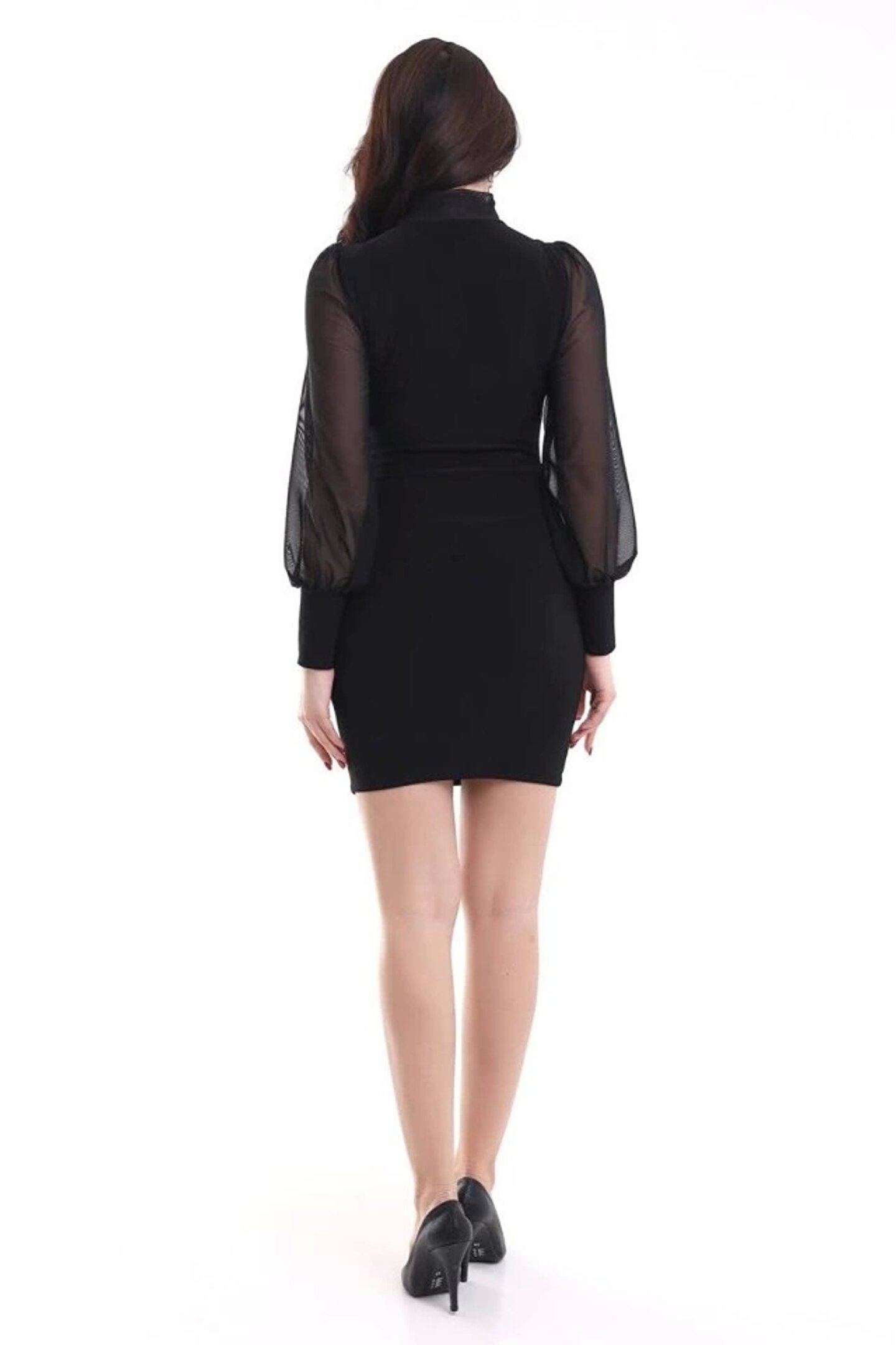 Kadın Balıkçı Yaka Transparan Detay Fırsat ürün Sandy Kumaş Mini Elbise