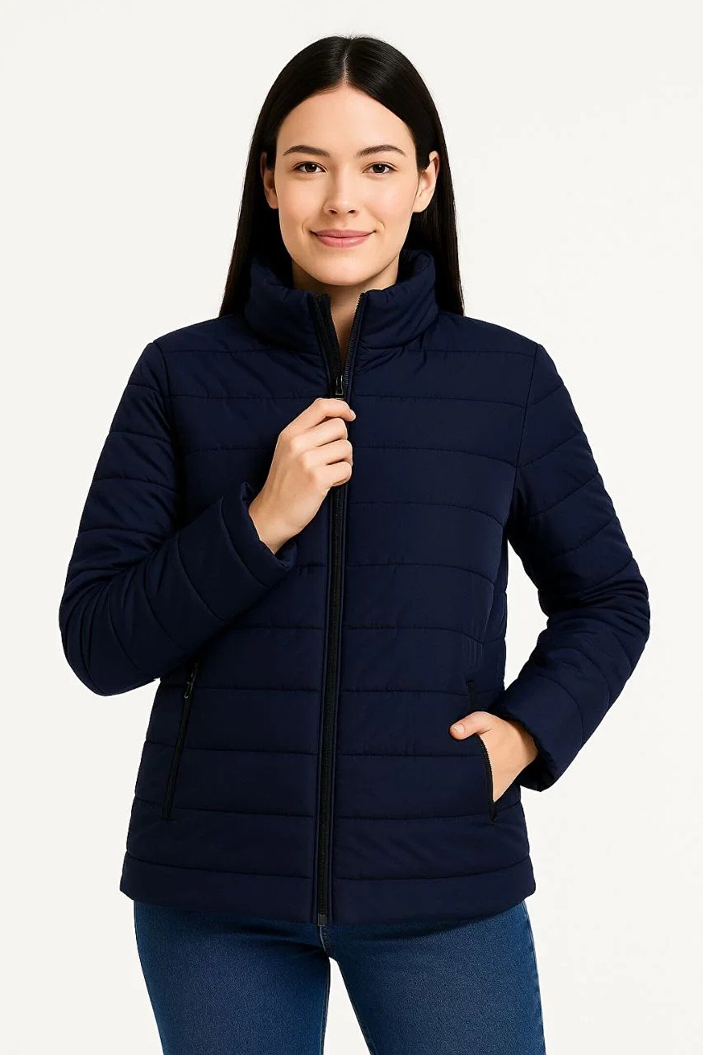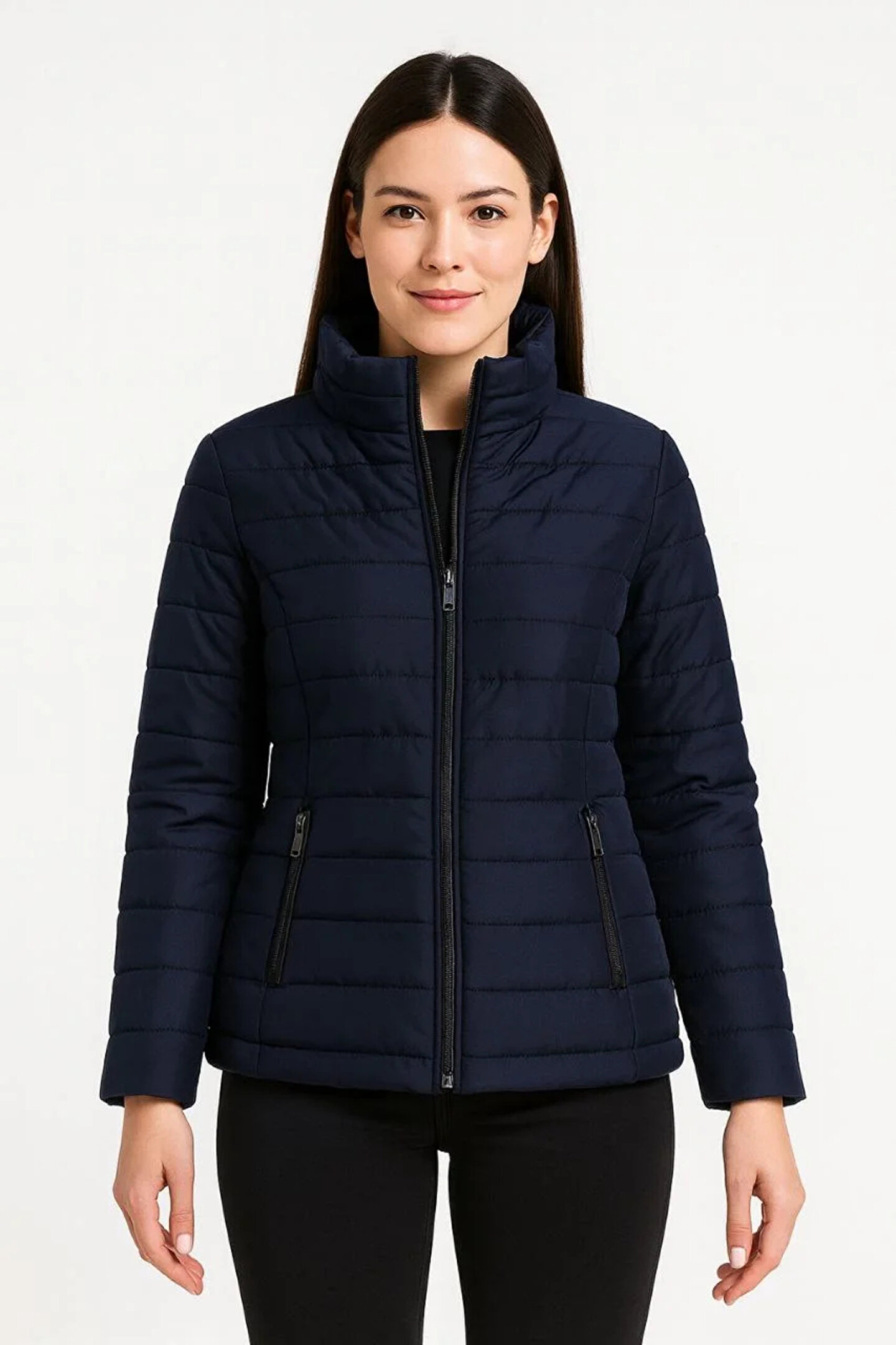 - Su itici kumaş özelliği sayesinde yağmur ve kar gibi hava koşullarına karşı koruma sağlar.; - Kapitone astarlı yapısı ile soğuk havalarda ekstra sıcaklık ve konfor sunar.; - Fermuarlı tasarımı kolay giyilip çıkartılmasını ve pratik kullanım imkanı sağlar.; - Lacivert rengi ve çok renkli detayları ile şık bir görünüm kazandırır.; - Ceket yaka tasarımı, modern ve zamansız bir stil sunar.; - Bomber silueti ile rahat hareket edebilme özgürlüğü verir.; - Casual ortamlarda günlük kullanım için idealdir; hem rahat hem de şık bir görünüm sağlar.; - Uzun kol tasarımı, kolların tamamını sıcak tutarak soğuk havalarda konfor sunar.; - Standart boy kesimiyle farklı vücut tiplerine uyum sağlar.; - Astarlı yapısı, montun iç kısmının daha dayanıklı olmasını ve formunu korumasını sağlar.; - Kapitone dokuma tipi ile hafif ama dayanıklı bir yapıya sahiptir.; - Yetişkin kadınlar için özel