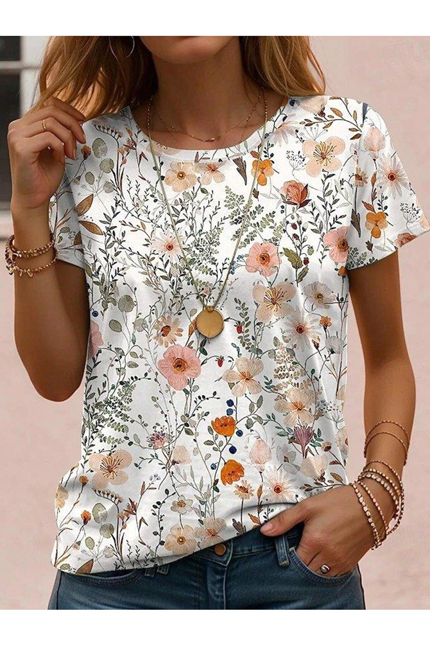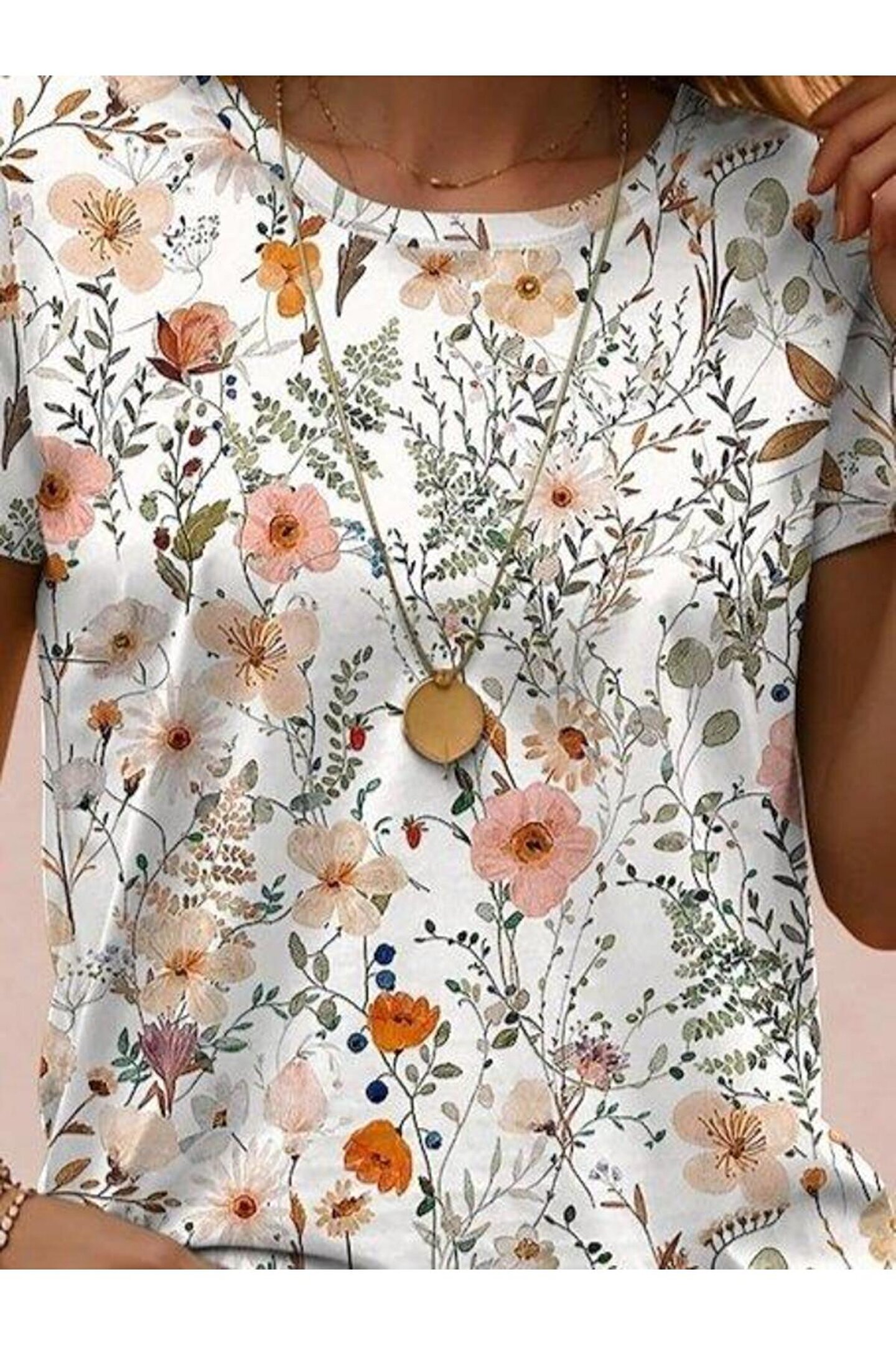 Kadın Kısa Kollu Bisiklet Yaka çiçek Desenli Viskon Bluz