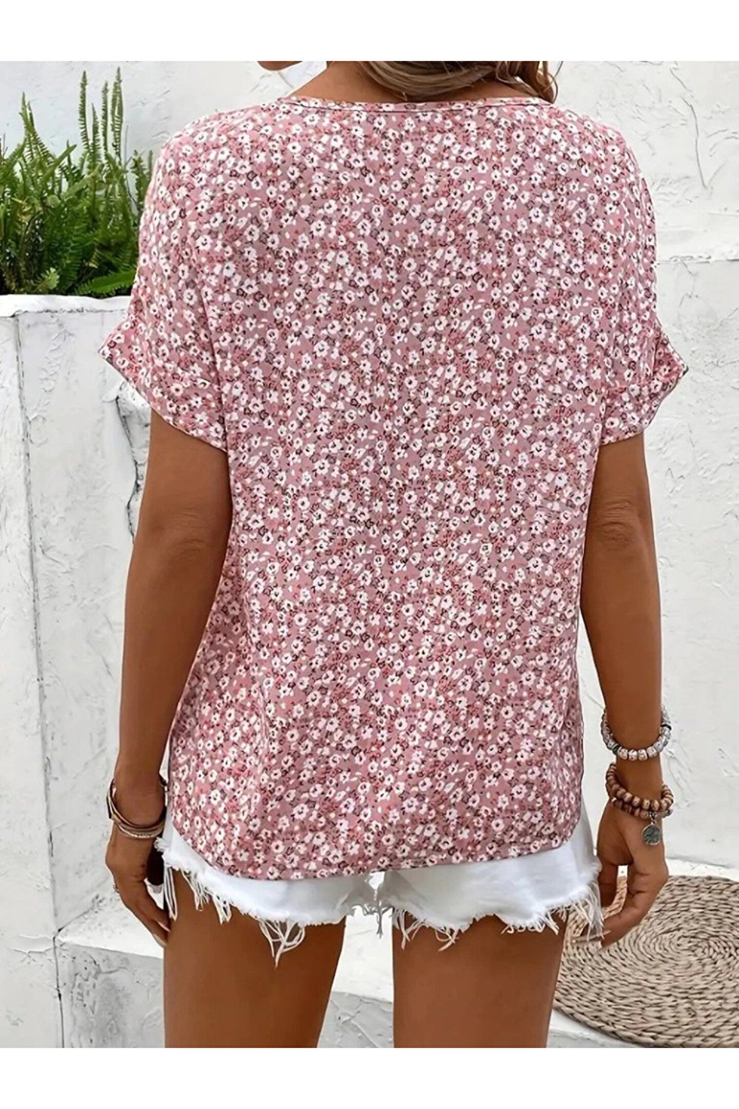Kadın Kısa Kollu çentikli V Yaka Ve Düğme Detaylı çiçek Desenli Süprem Bluz Modelin Ölçüleri: Boy:165, Kg:55, Göğüs:90, Bel:72, Kalça: 100 Modelin üzerindeki ürün M/38 bedendir Trendleri belirleyen kadın giyim markası velmorafashion'a hoşgeldiniz! VelmoraFashion, kadınların tarzlarını ifade etmelerine ve güçlü bir duruş sergilemelerine olanak tanıyan bir markadır.; 2018 yılından bu yana sektörde varlığını sürdüren firmamız, yenilikçi tasarımları ve kaliteli ürünleriyle dikkat çekiyor.; VelmoraFashion olarak amacımız, her kadının kendine özgü tarzını yansıtabileceği, güvenilir ve şık giyim seçenekleri sunmaktır.; Koleksiyonlarımızda her zevke hitap eden parçaları bulabilirsiniz.; Günlük hayatta rahatlıkla tercih edilebilecek şık elbiselerden iş görüşmelerinde stilinizi tamamlayacak takım elbiselere, spor giyimden abiye modellere kadar geniş bir ürün yelpazemiz bulunmaktadır.; Tasarımlarımızı oluştururken moda trendlerini yakından takip ediyor, farklı tarzlara ve bedenlere uygun seçenekler sunmaya özen gösteriyoruz.; Aynı zamanda kalite ve dayanıklılık da önceliklerimiz arasındadır.; Her parça, titizlikle seçilen kumaşlar ve dikkatle işlenen detaylarla özenle üretilmektedir.; Müşteri memnuniyeti bizim için en önemli önceliktir.; Profesyonel müşteri hizmetleri ekibimiz, her adımda size yardımcı olmak ve alışveriş deneyiminizi en üst düzeye çıkarmak için buradadır.; Siz değerli müşterilerimizin geri bildirimleri, bizi daha da ileriye taşımak için önemli bir kaynaktır.; Velmora Fashion olarak, sadece giyimde değil, aynı zamanda kadınların güçlendirilmesi ve kendilerini ifade etmeleri konusunda da bir misyon taşıyoruz.; Her kadının kendi tarzını keşfetmesine ve kendine güvenle adım atmasına yardımcı olmak için buradayız.; VELMORAFAShion'da her detayı düşünülmüş, şıklığı ve rahatlığı bir arada sunan parçalarla dolu koleksiyonlarımızı keşfetmek için sizi mağazamıza bekliyoruz.; Siz de ailemize katılın ve tarzınızı keşfedin!