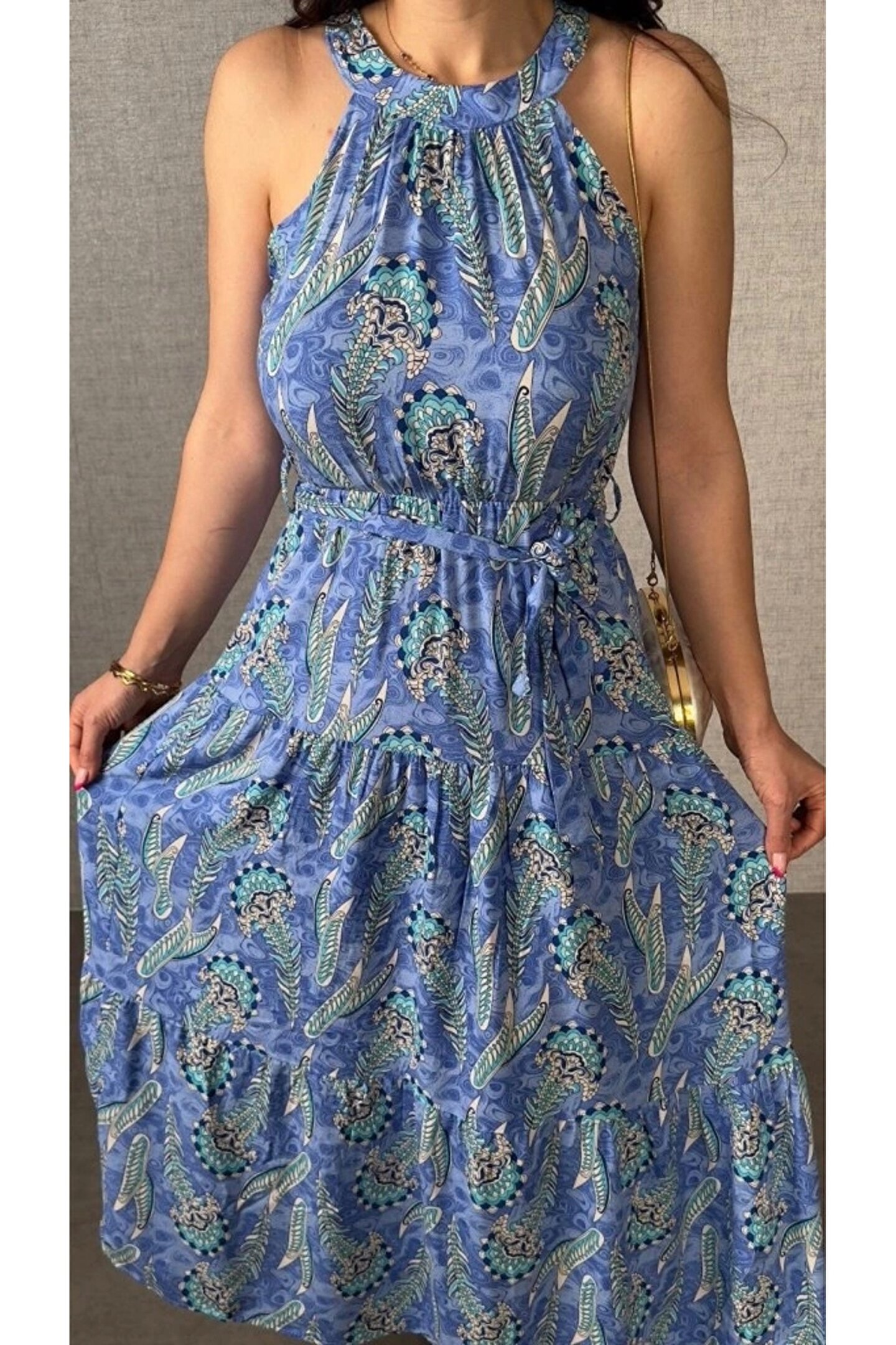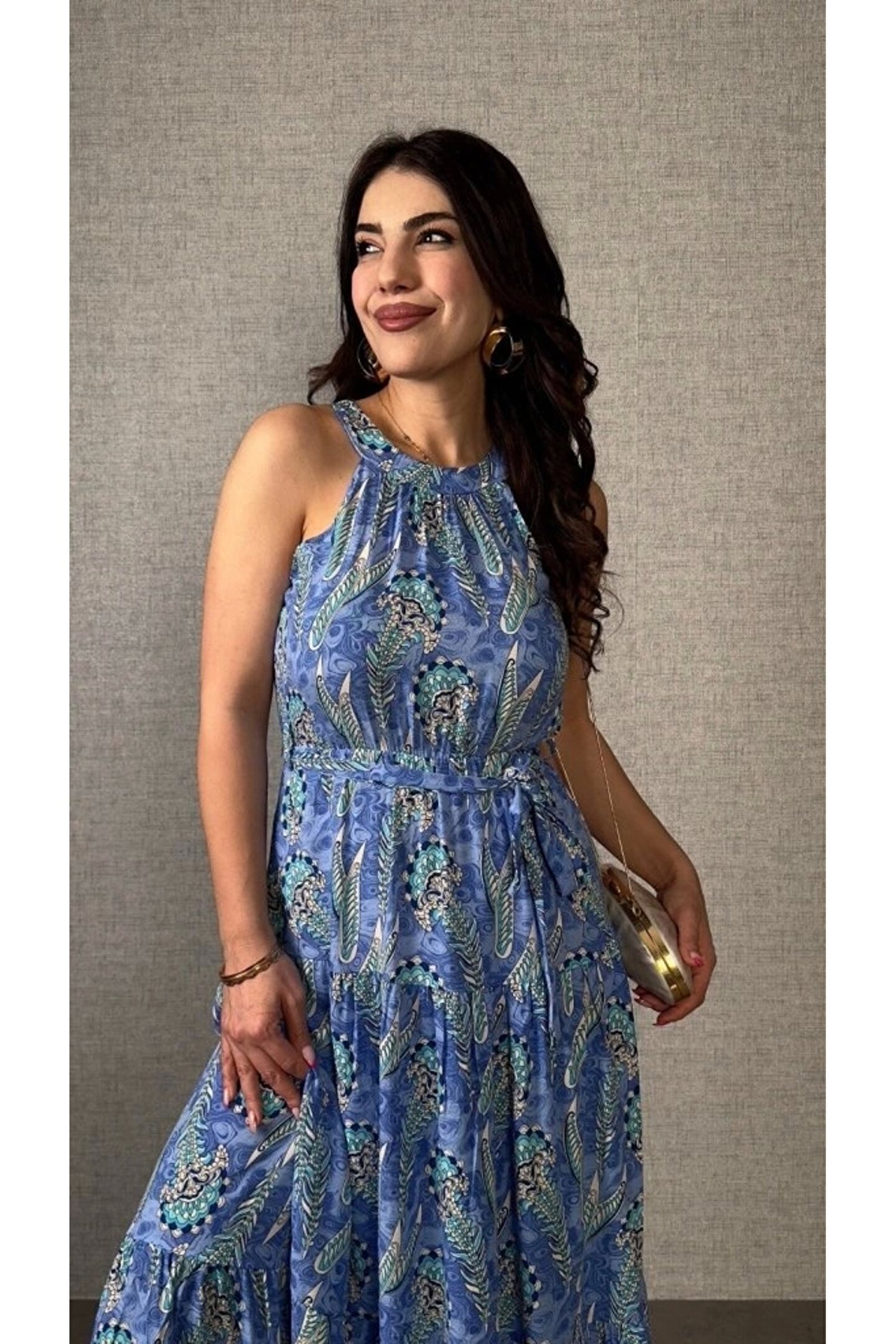Silerra Kadın Omuzlardan Açık Boyundan Geçmeli Desenli Süprem Bluz