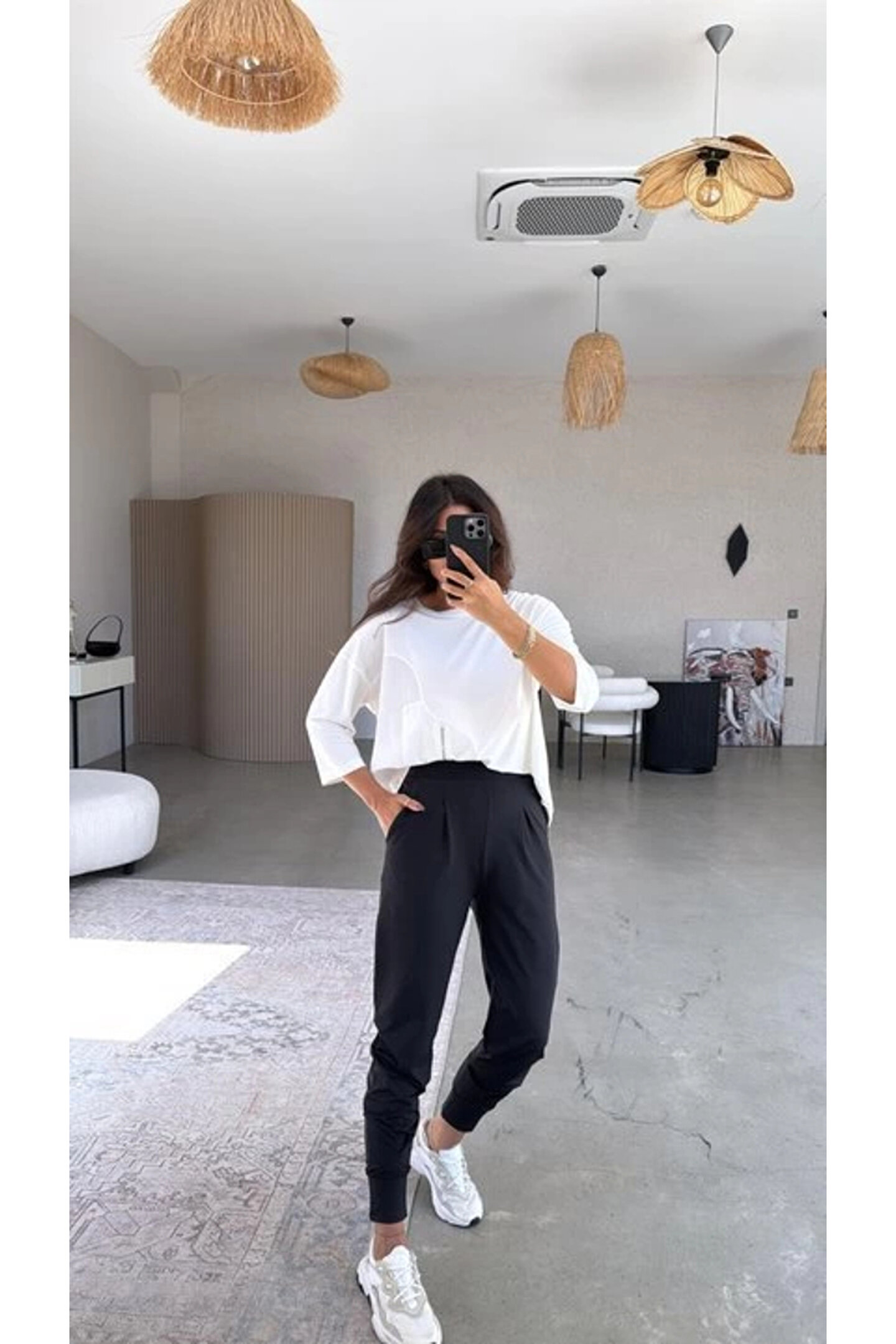 Silerra Kadın Scuba Modal Paça Manşet Pileli Pantolun
