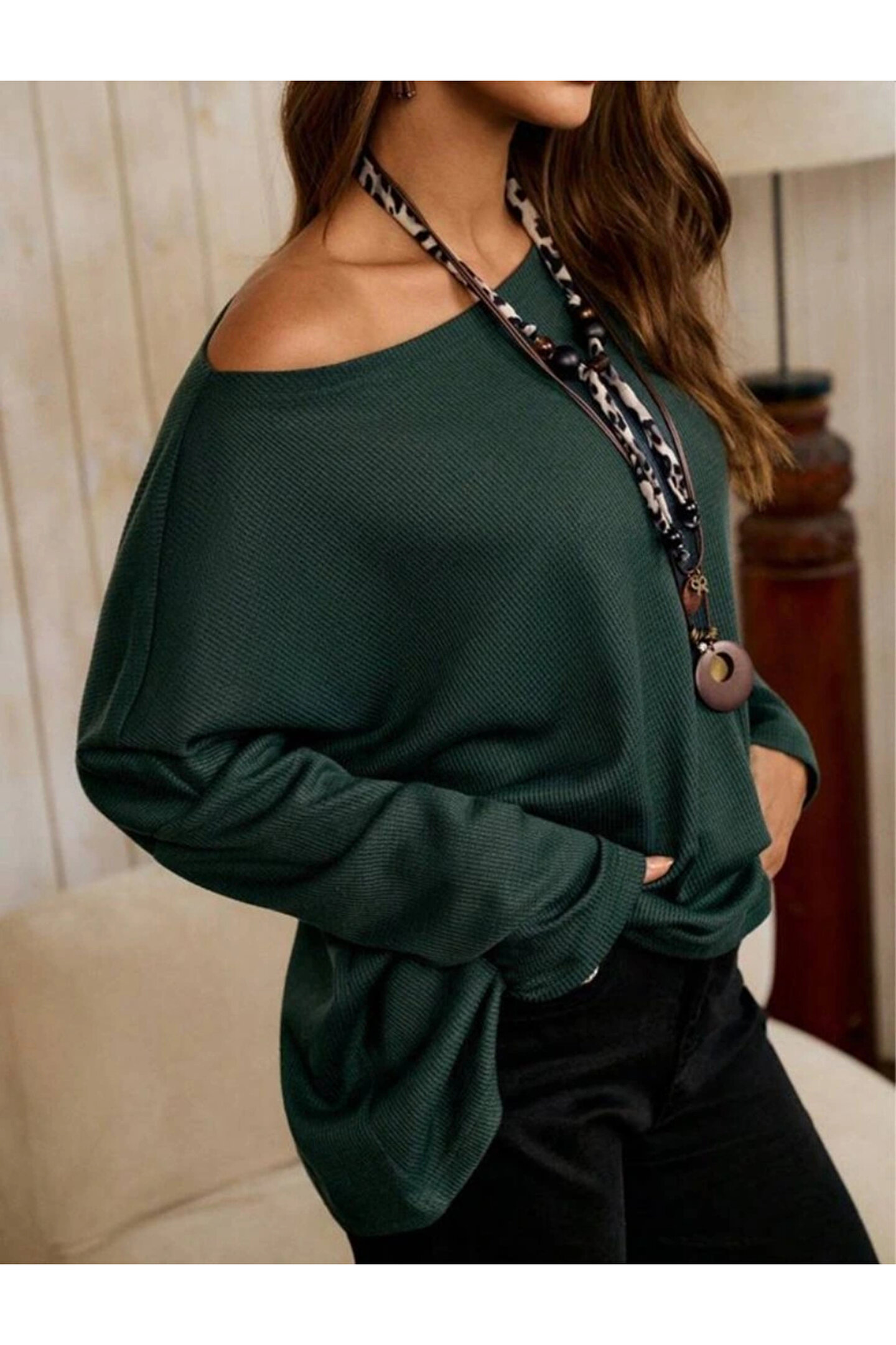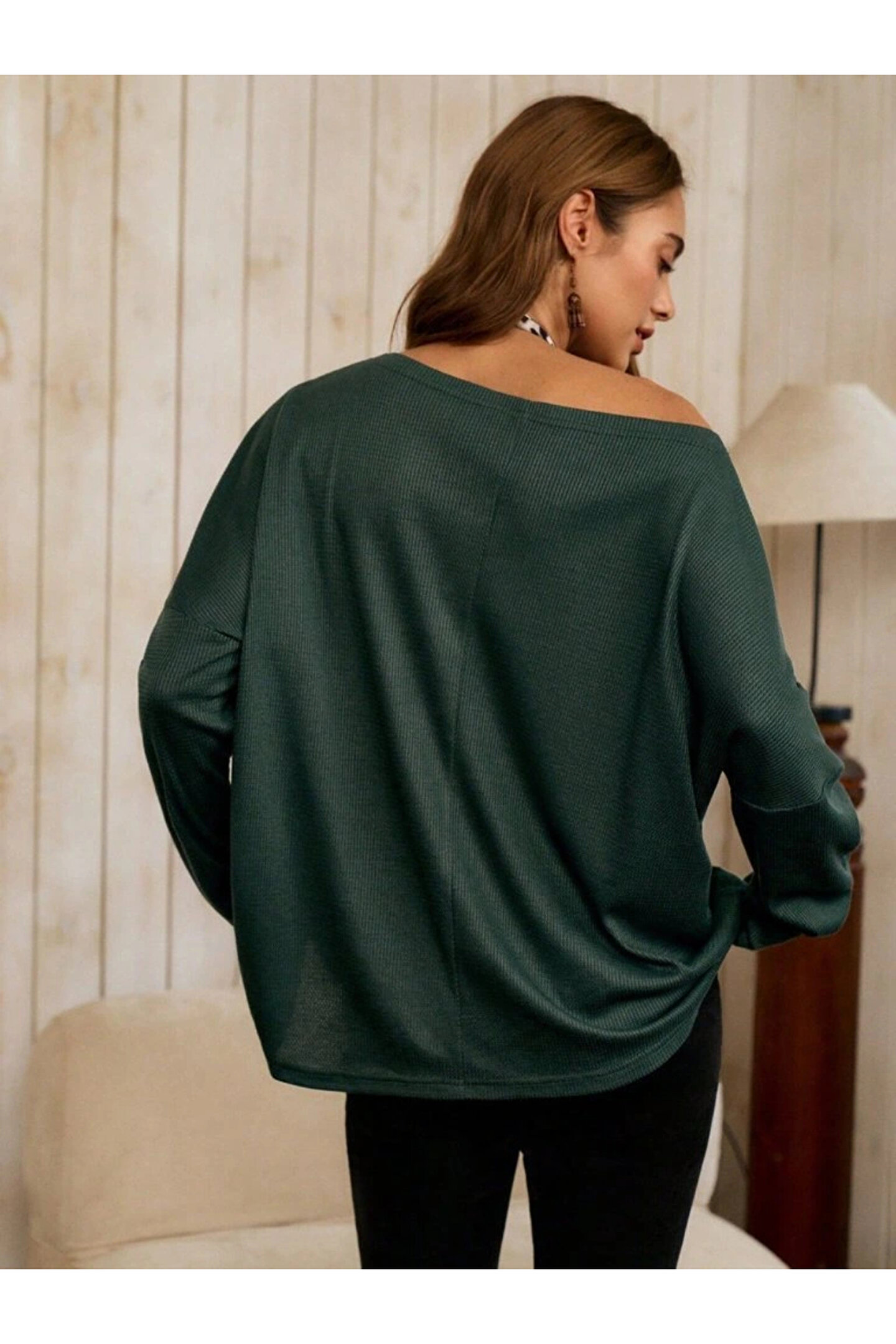 Kadın Tek Omuzdan Açık Yarasa Kollu Waffle Bluz