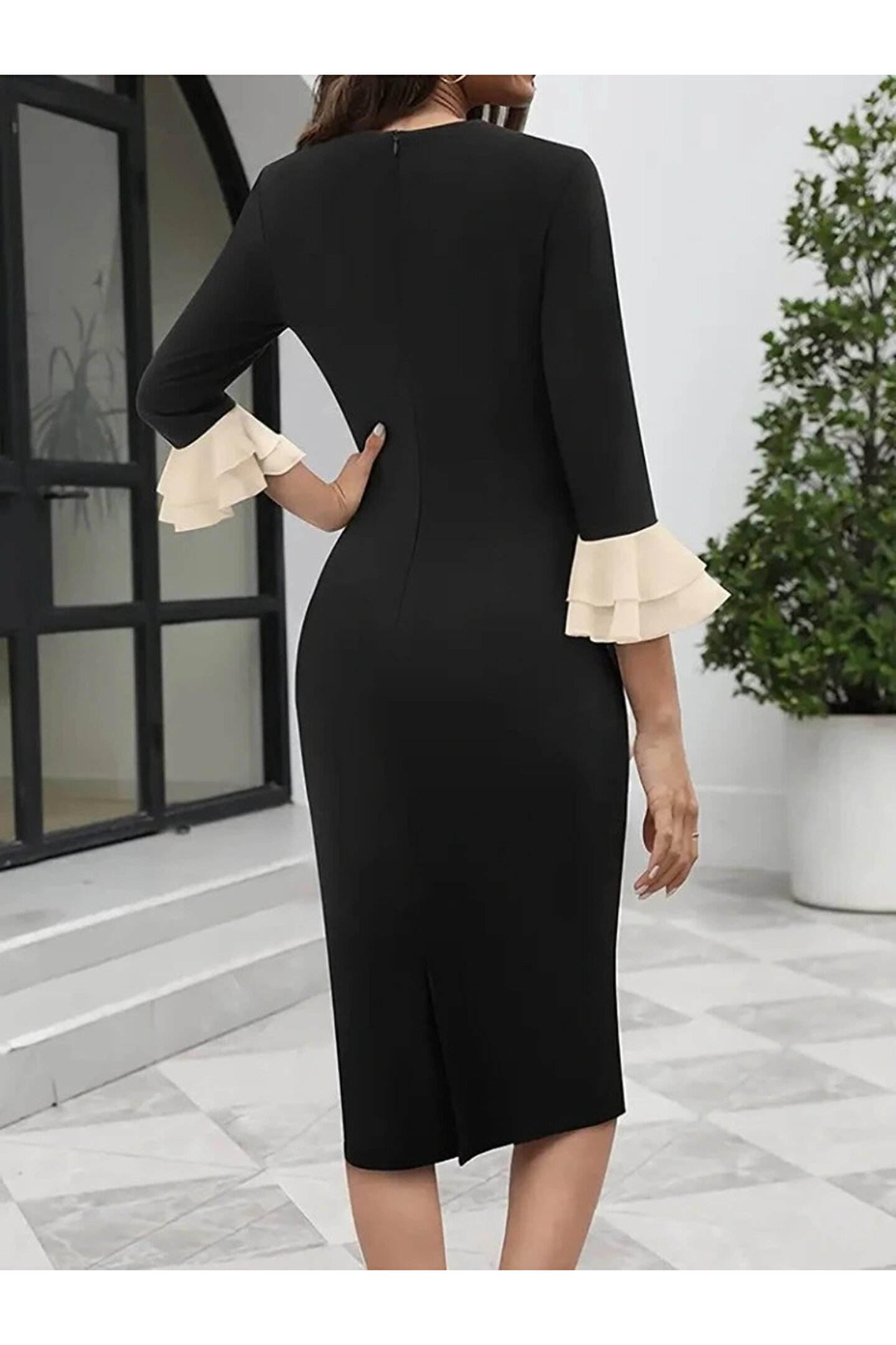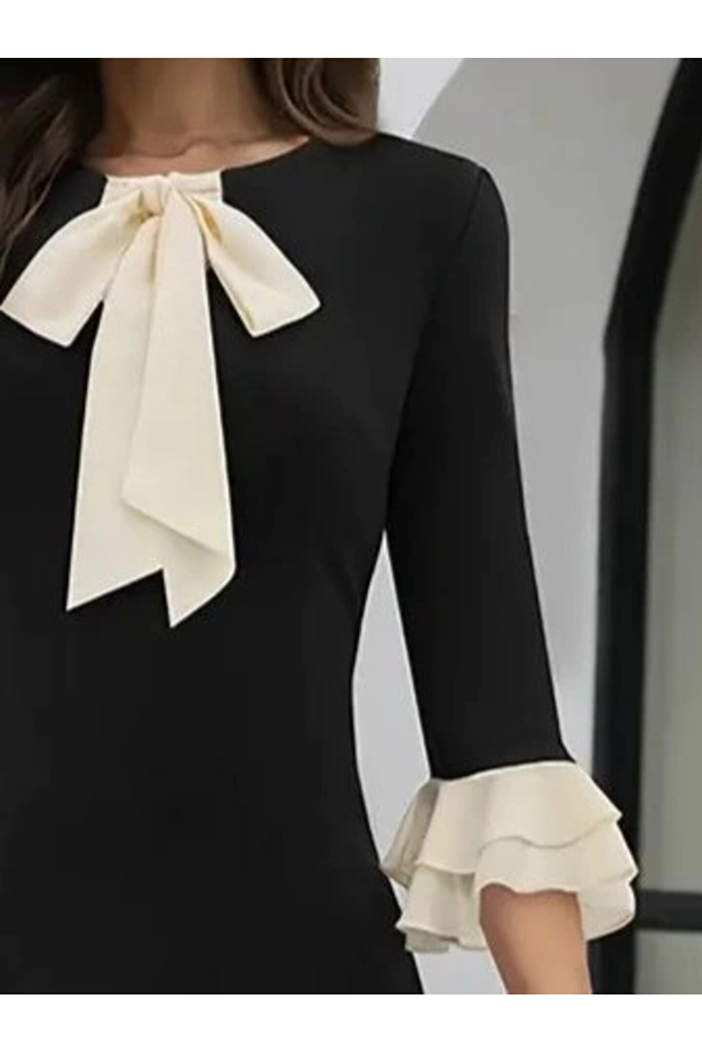 Kadın Truvakar Kollu Fiyonk Yakalı Midi Ithal Krep Elbise