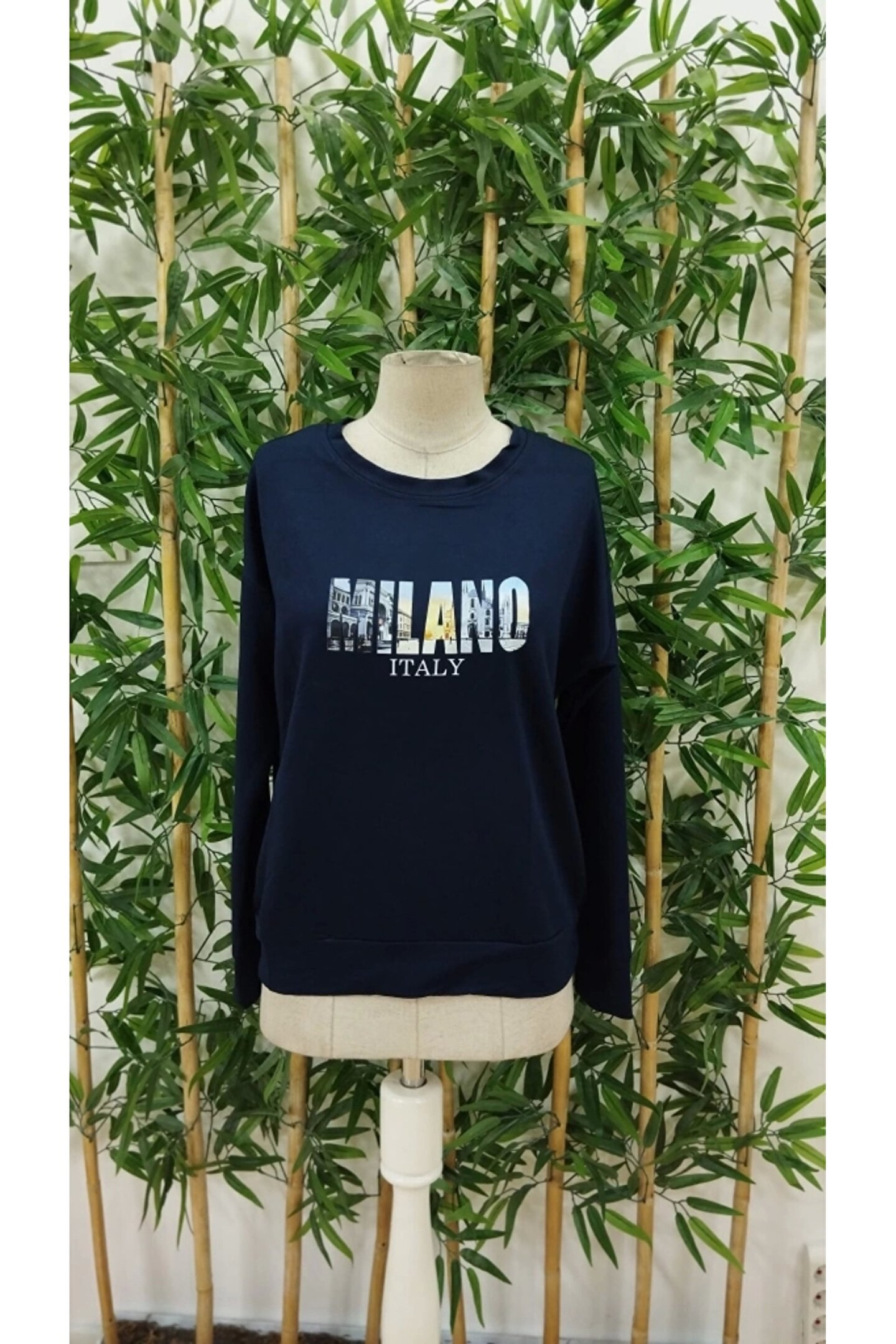 Kadın Uzun Kollu Bisiklet Yaka Desenli Viskon Iki Iplik Bluz