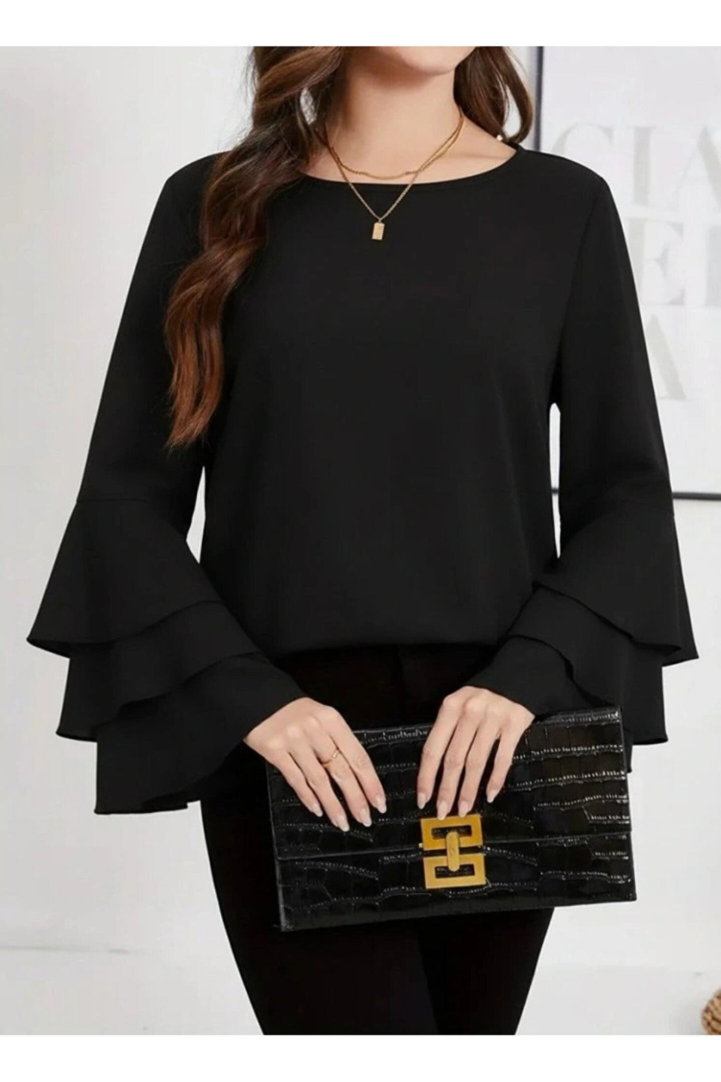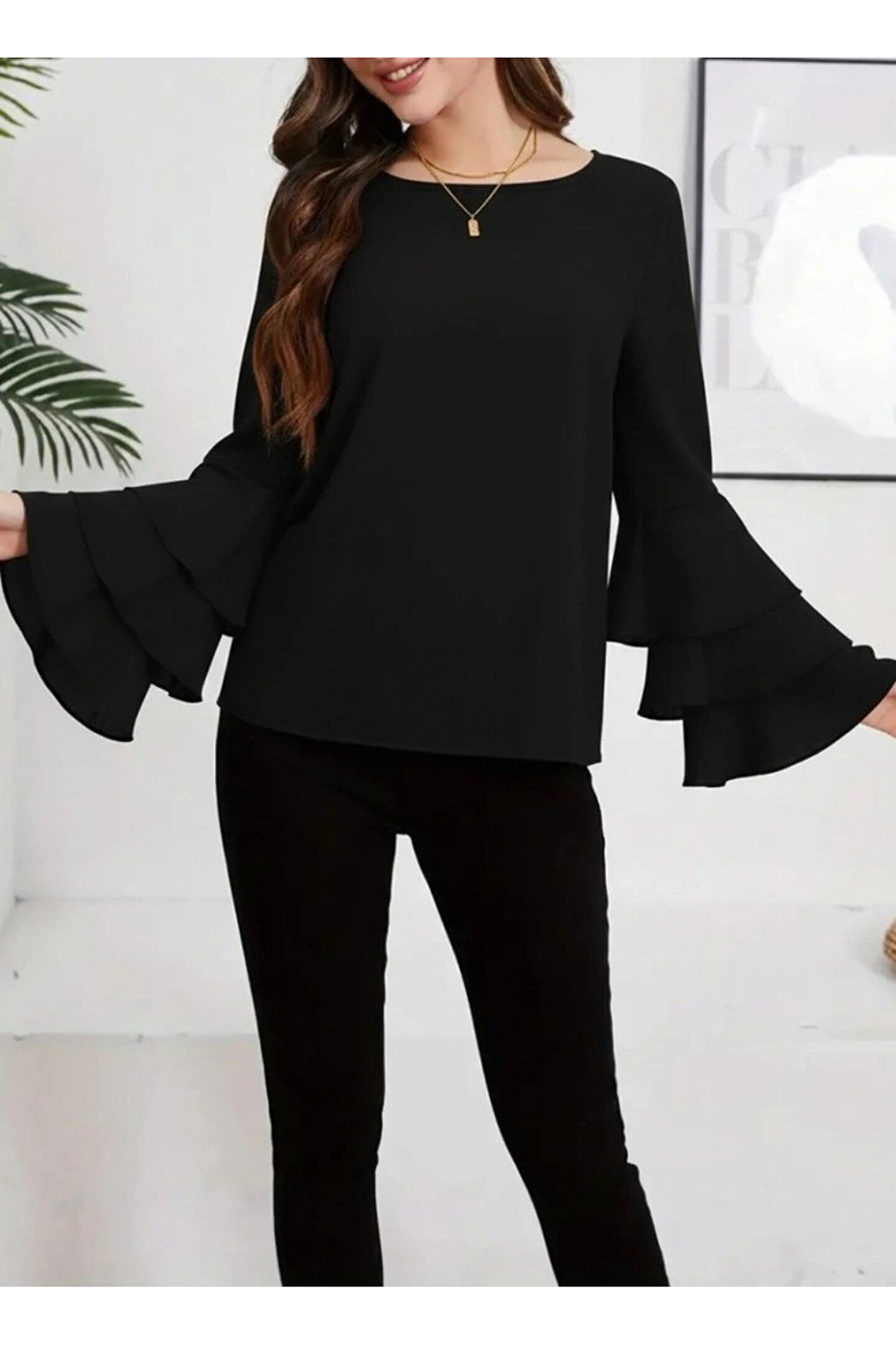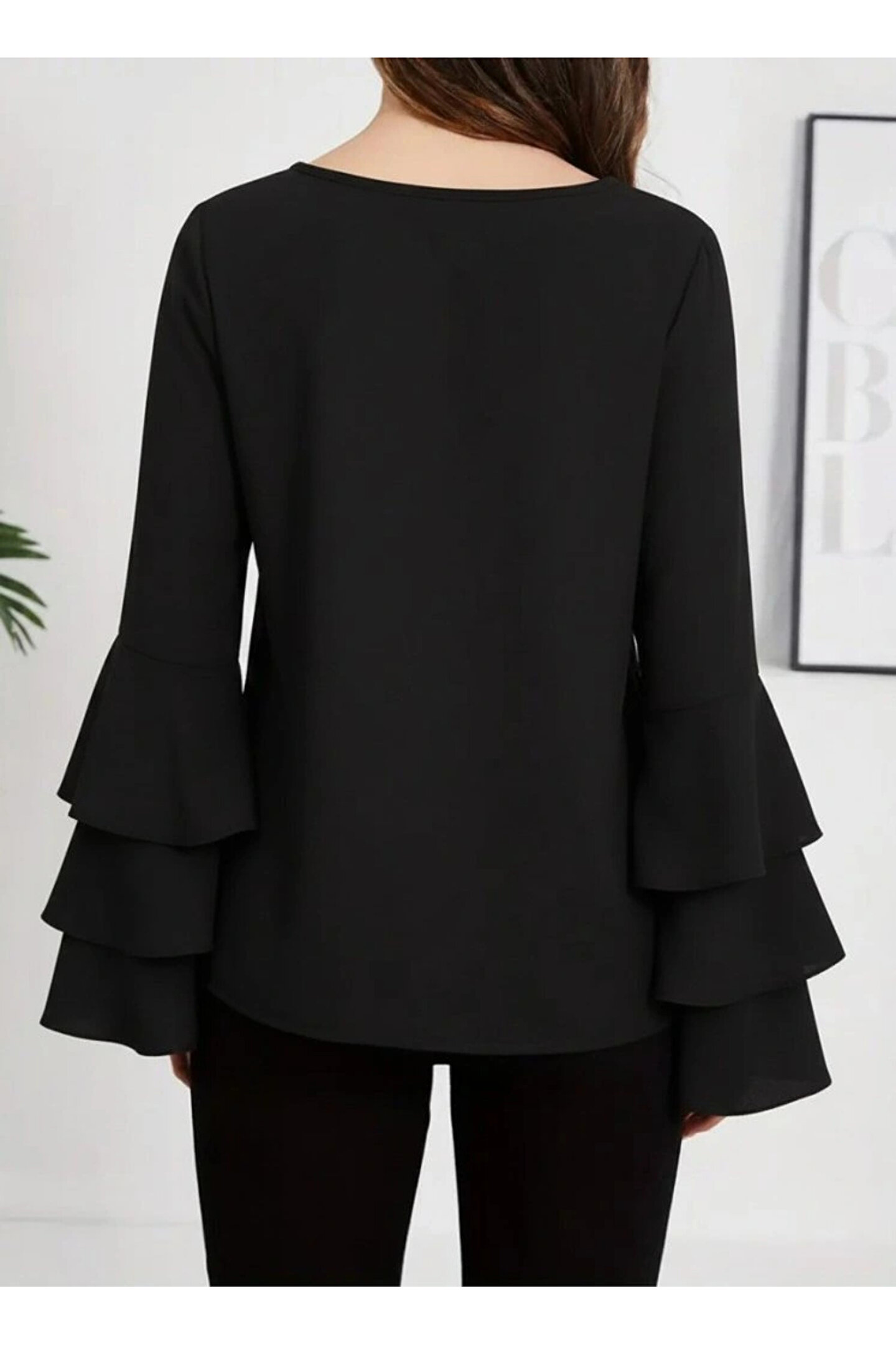 Kadın Uzun Kollu Bisiklet Yaka Kollar İspanyol Volanlı Sandy Bluz