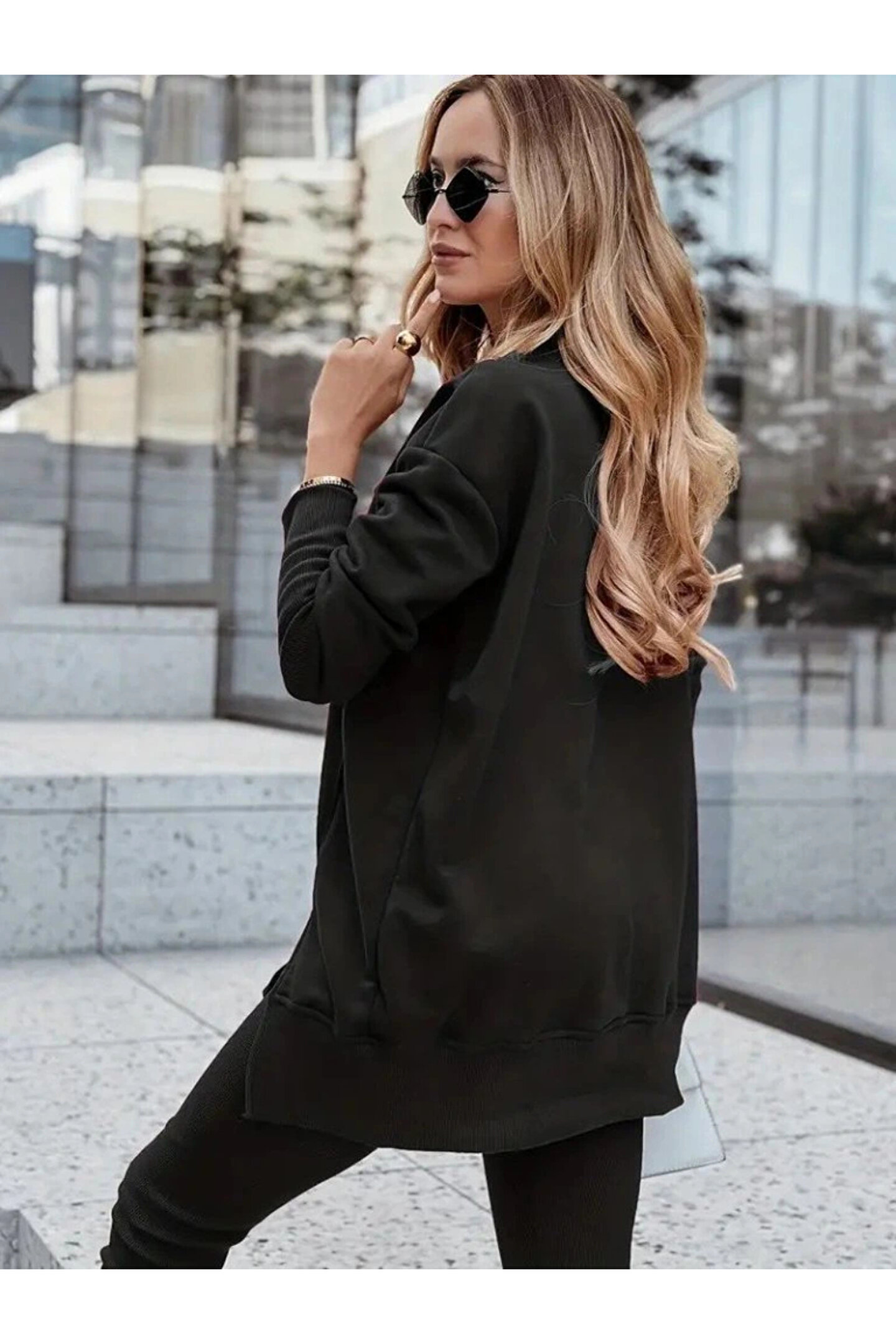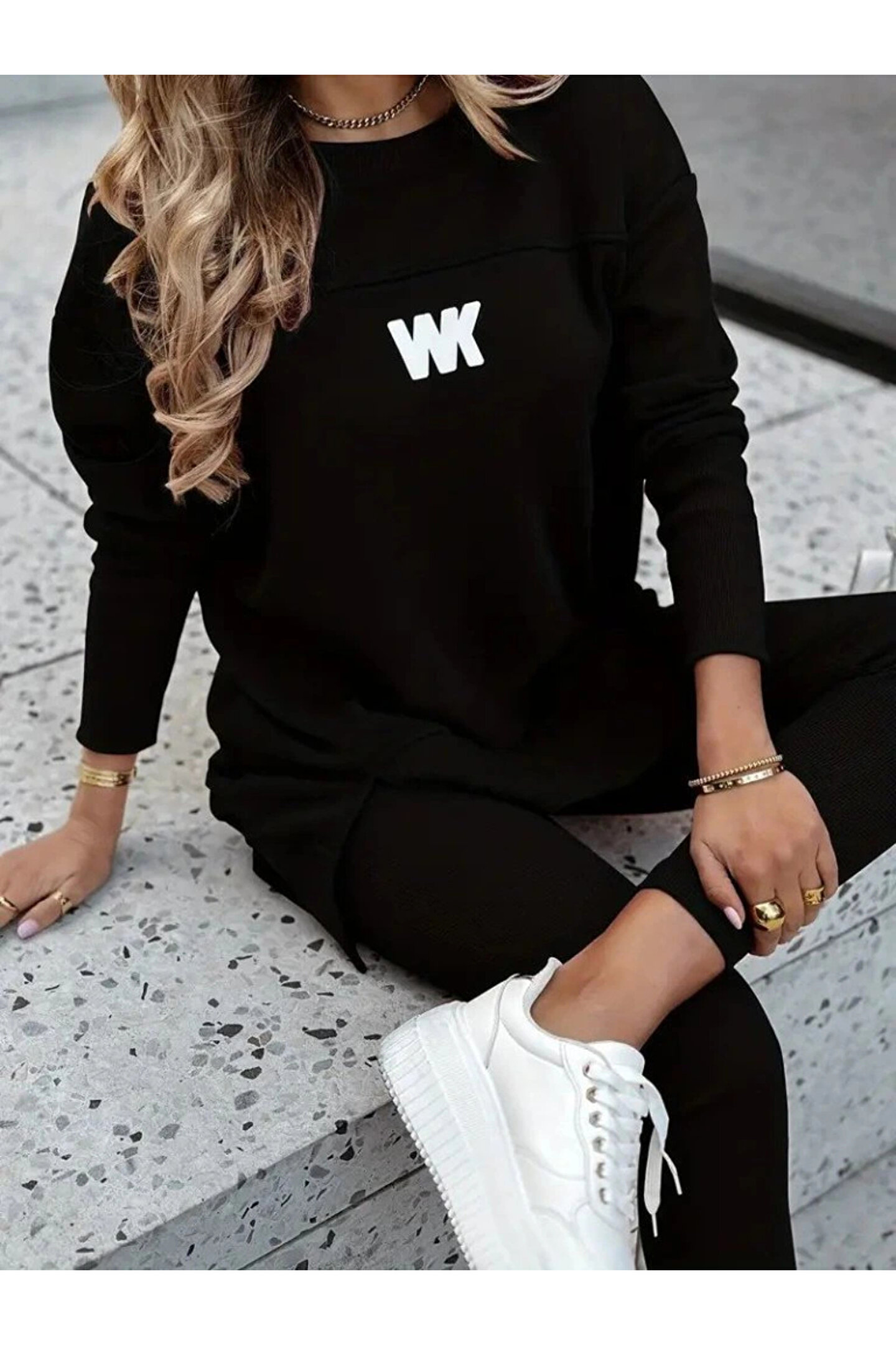 Kadın Uzun Kollu Bisiklet Yaka Nervurlu Viskon Iki Iplik Ve Tayt Pantolon Ikili Takım