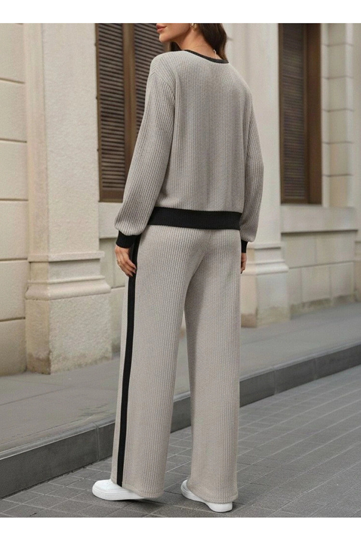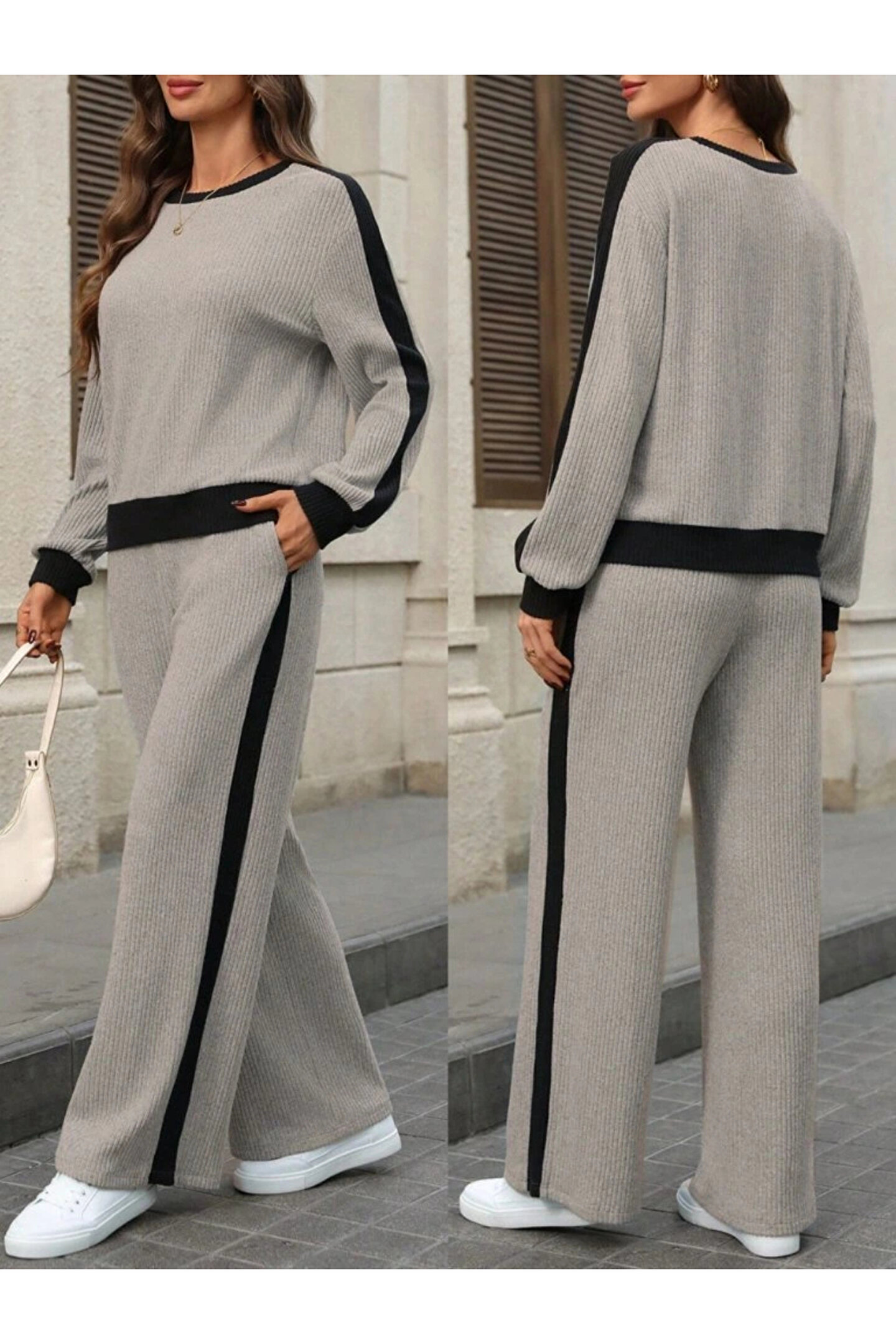 Kadın Uzun Kollu Bisiklet Yaka şardonlu Kaşkorse Bluz Ve Pantolon Ikili Takım