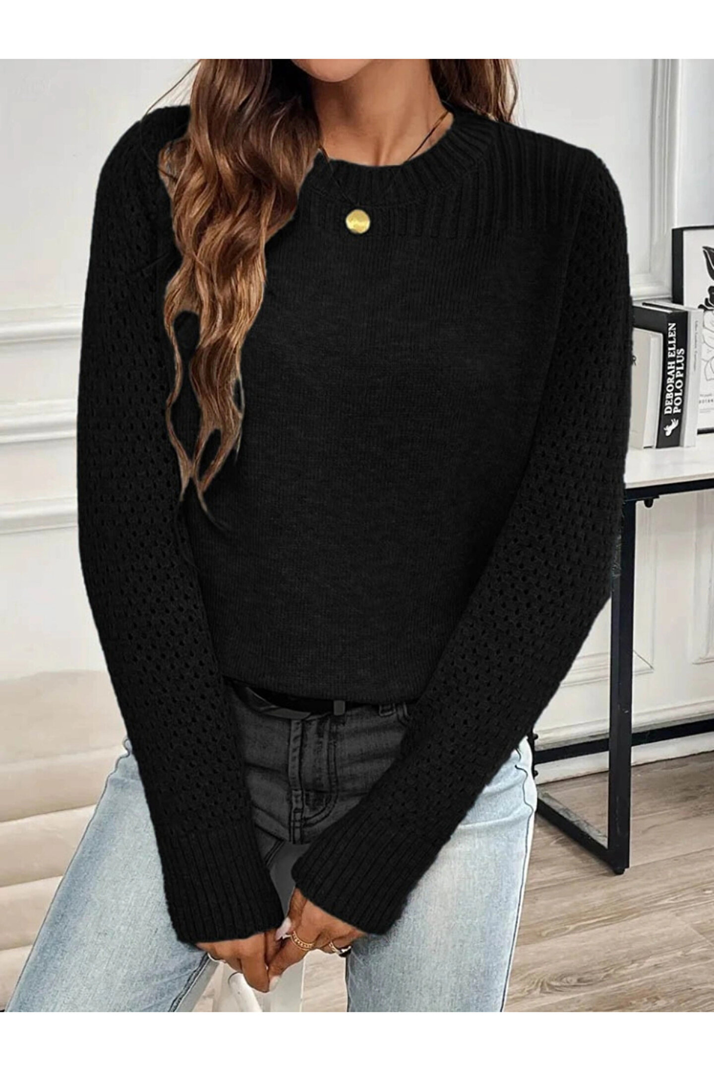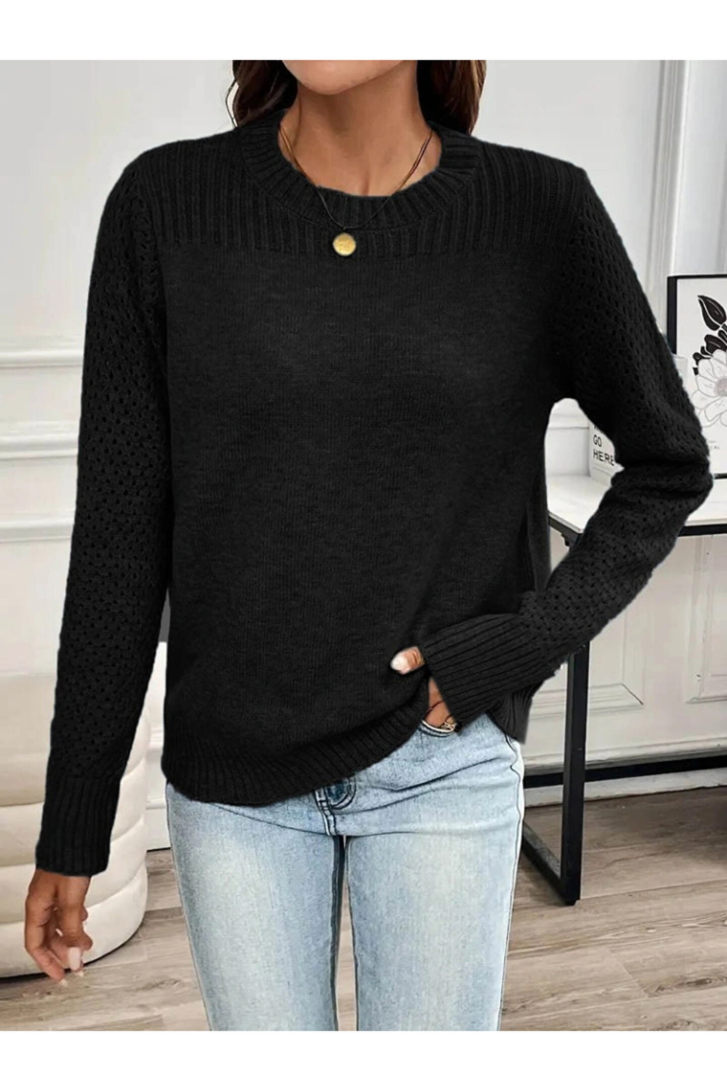 Kadın Uzun Kollu Bisiklet Yaka Triko Bluz