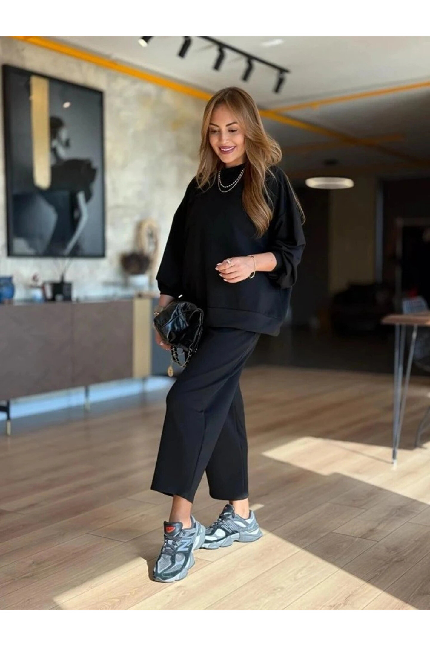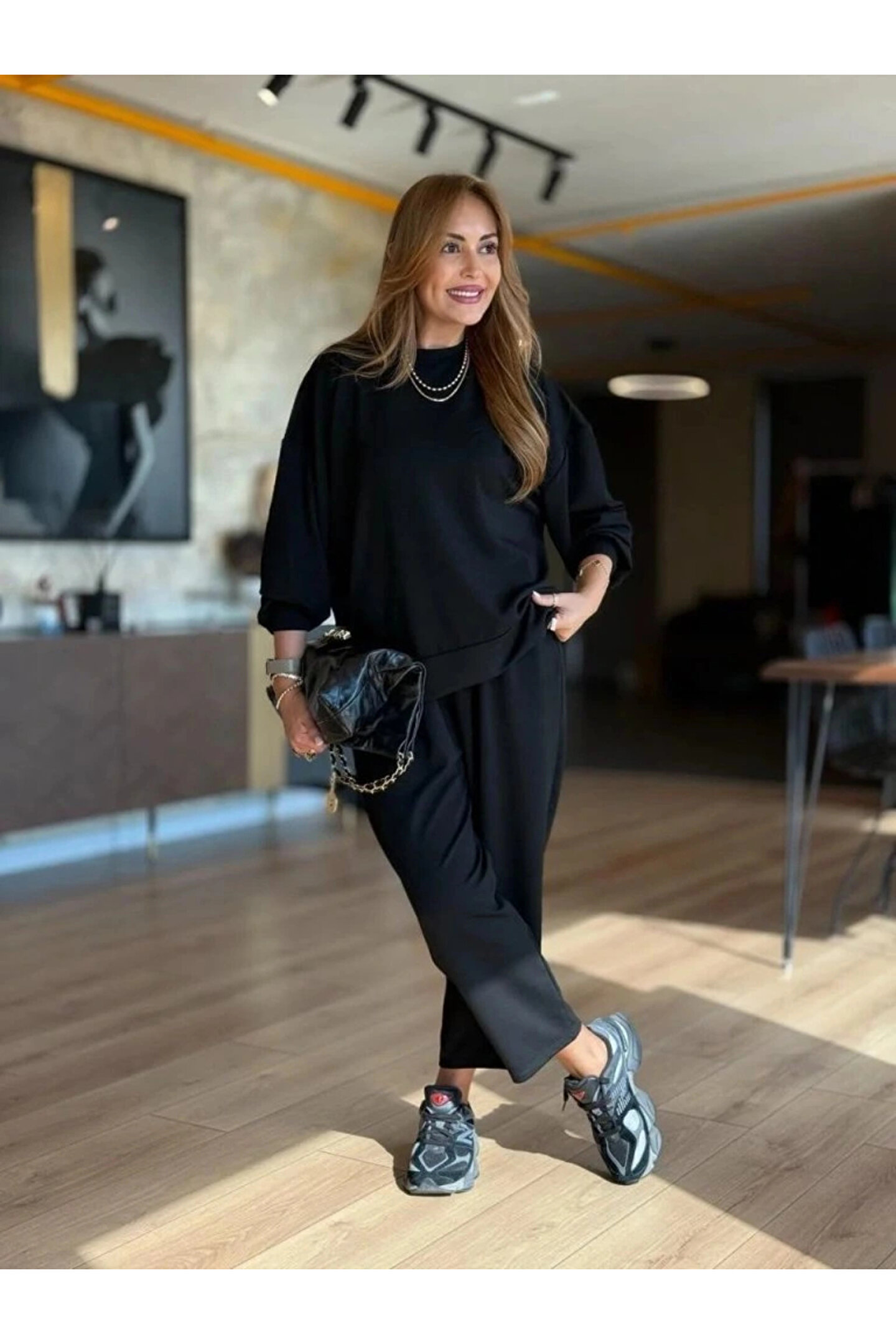 Kadın Uzun Kollu Bisiklet Yaka Viskon Iki Iplik Bluz Ve Pantolon Ikili Takım