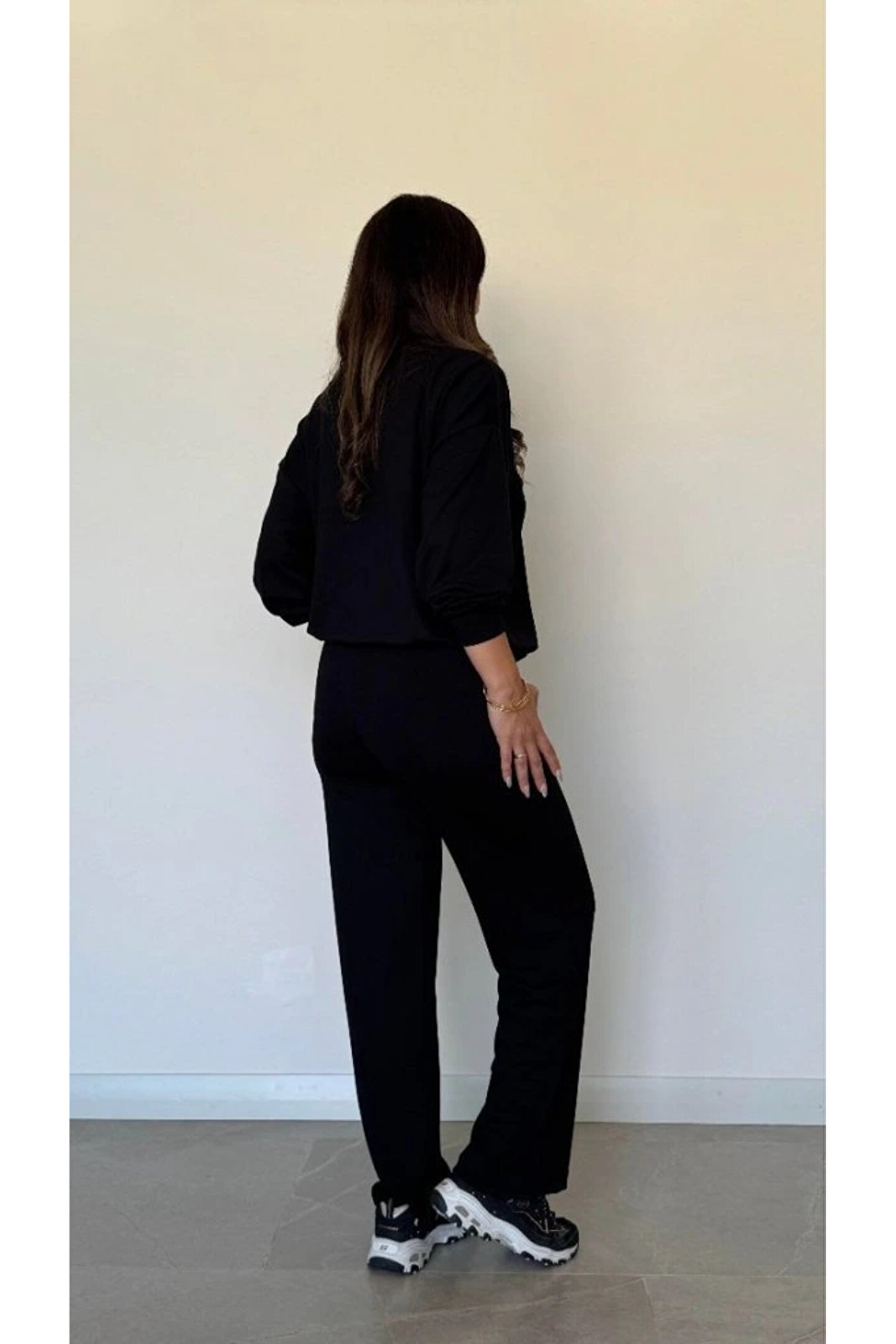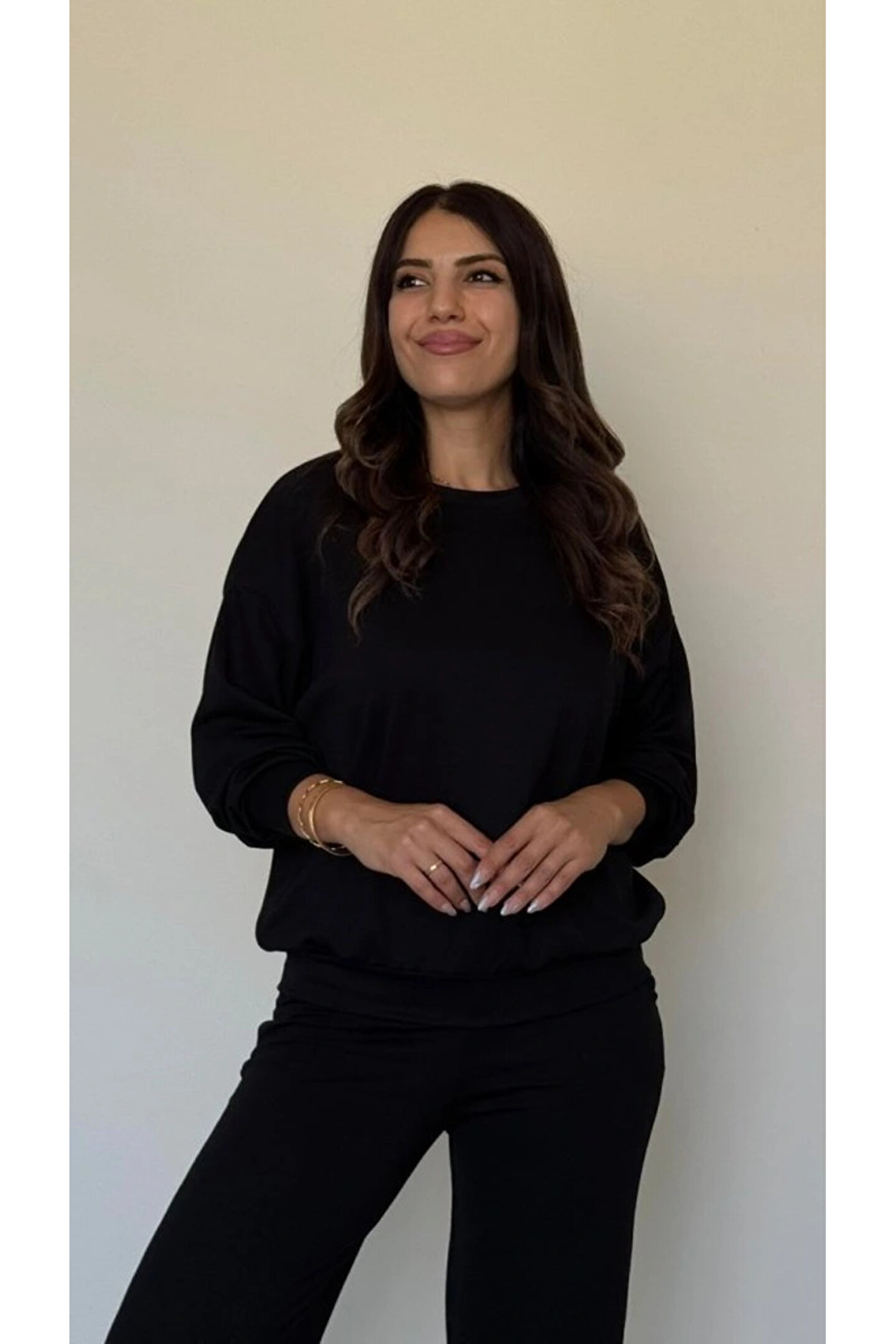 Kadın Uzun Kollu Bisiklet Yaka Viskon Iki Iplik Bluz Ve Pantolon Ikili Takım