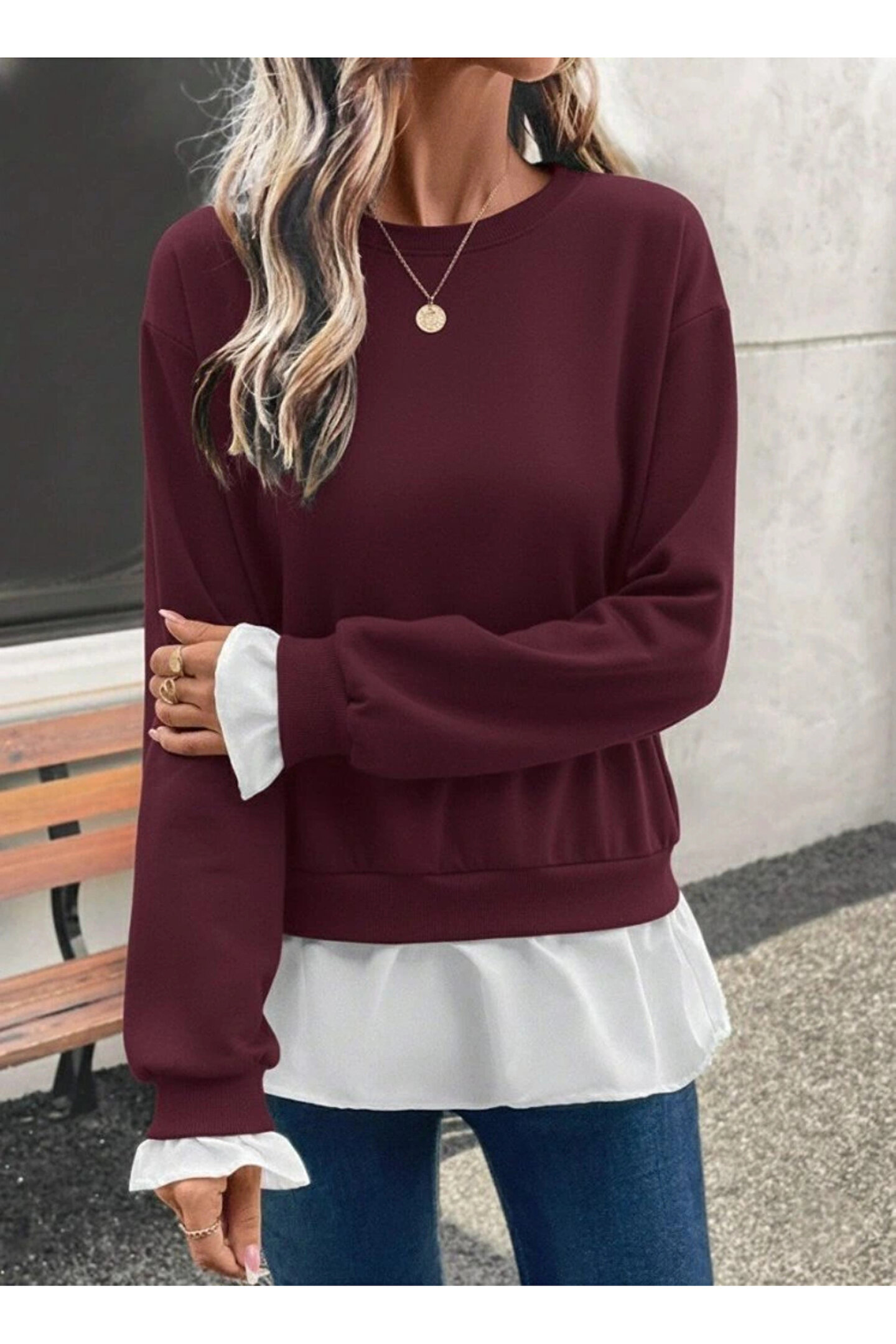 Silerra Kadın Uzun Kollu Bisiklet Yaka Viskon Iki Iplik Ve Etek Ucu Trikoton Bluz