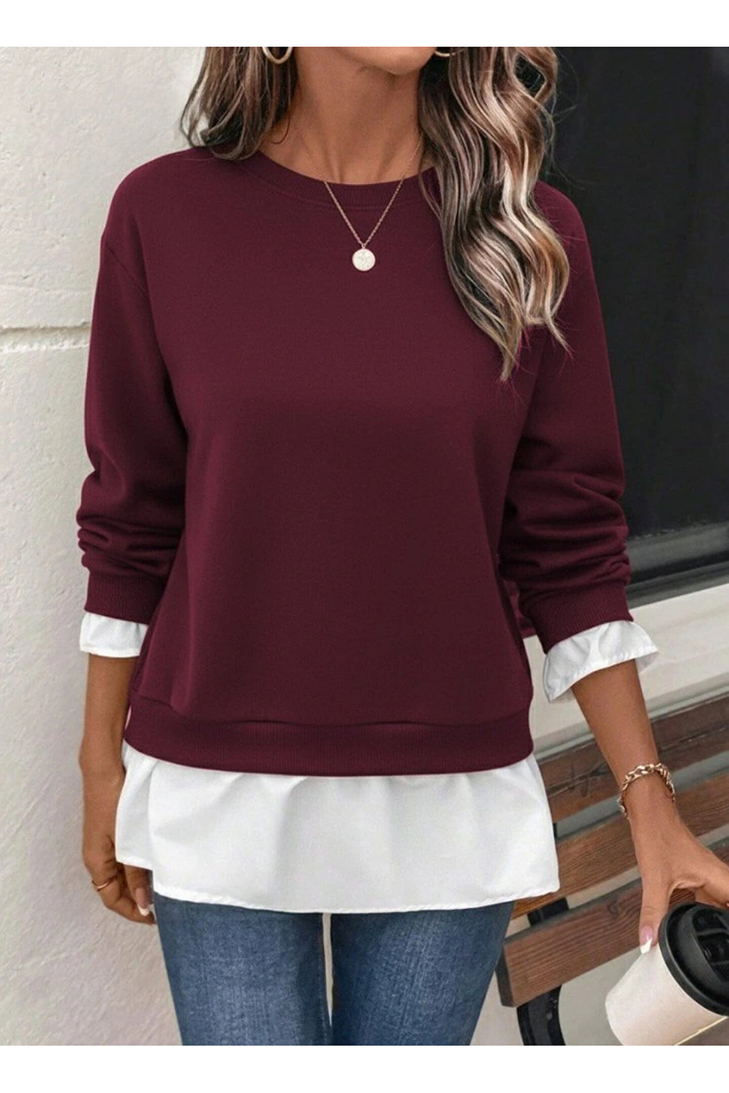 Kadın Uzun Kollu Bisiklet Yaka Viskon Iki Iplik Ve Etek Ucu Trikoton Bluz