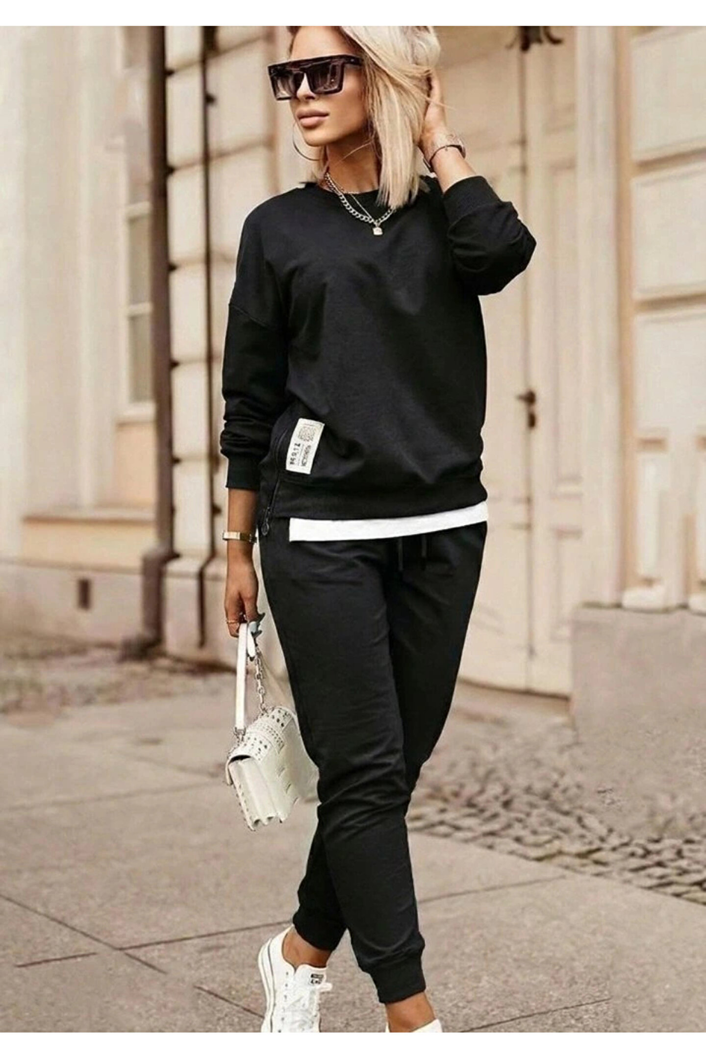 Kadın Uzun Kollu Bisiklet Yaka Yandan Fermuarlı Viskon Iki Iplik Bluz Ve Pantolon Ikili Takım