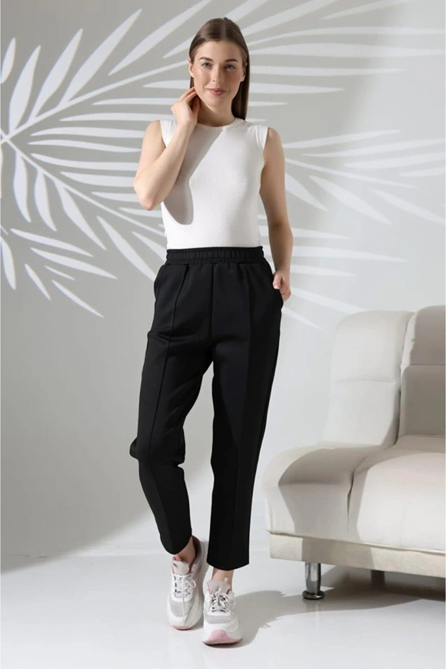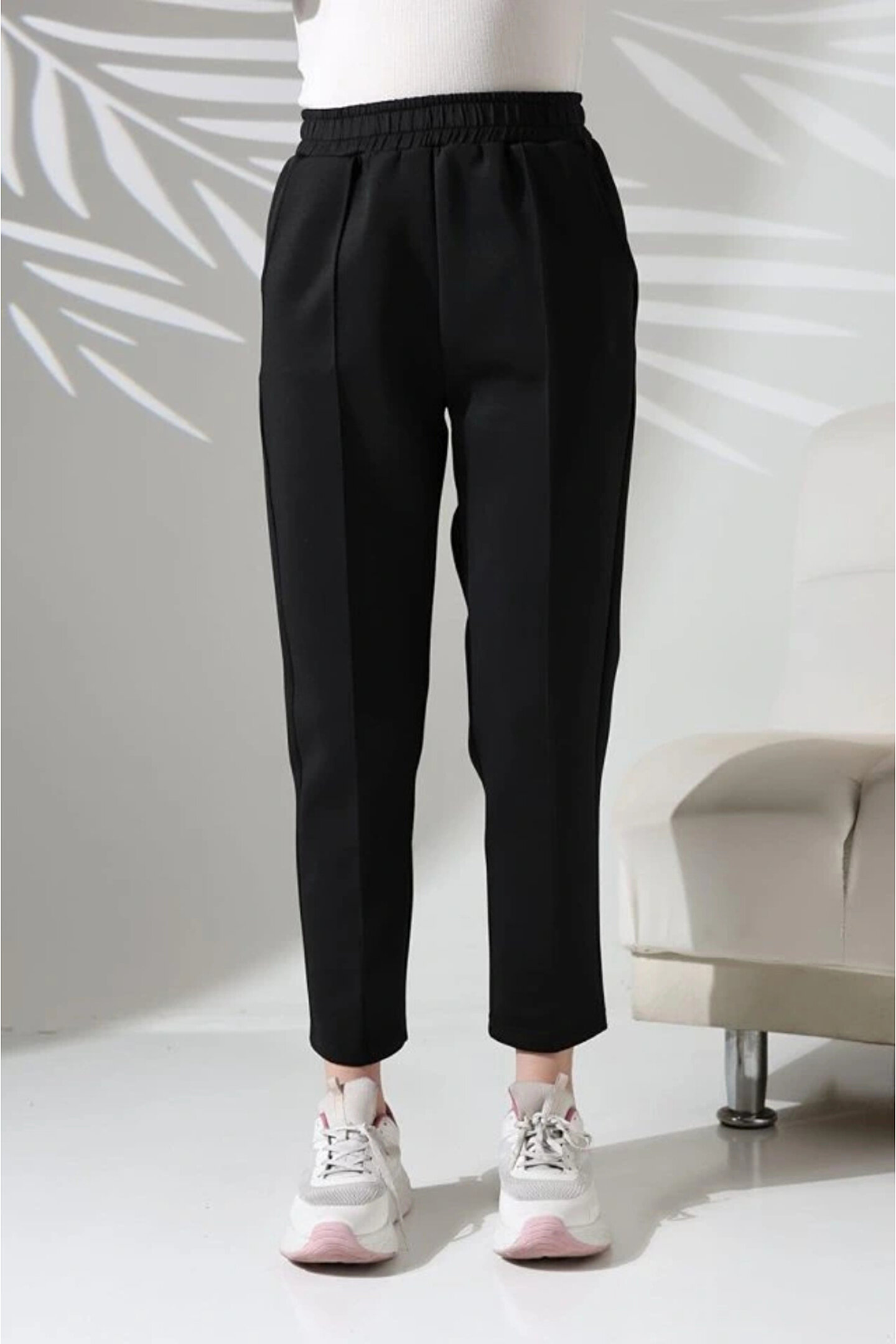 Kadın Uzun Kollu Dalıç Kumaş Cep Detay Beli Lastikli ütüsüz Pantolon