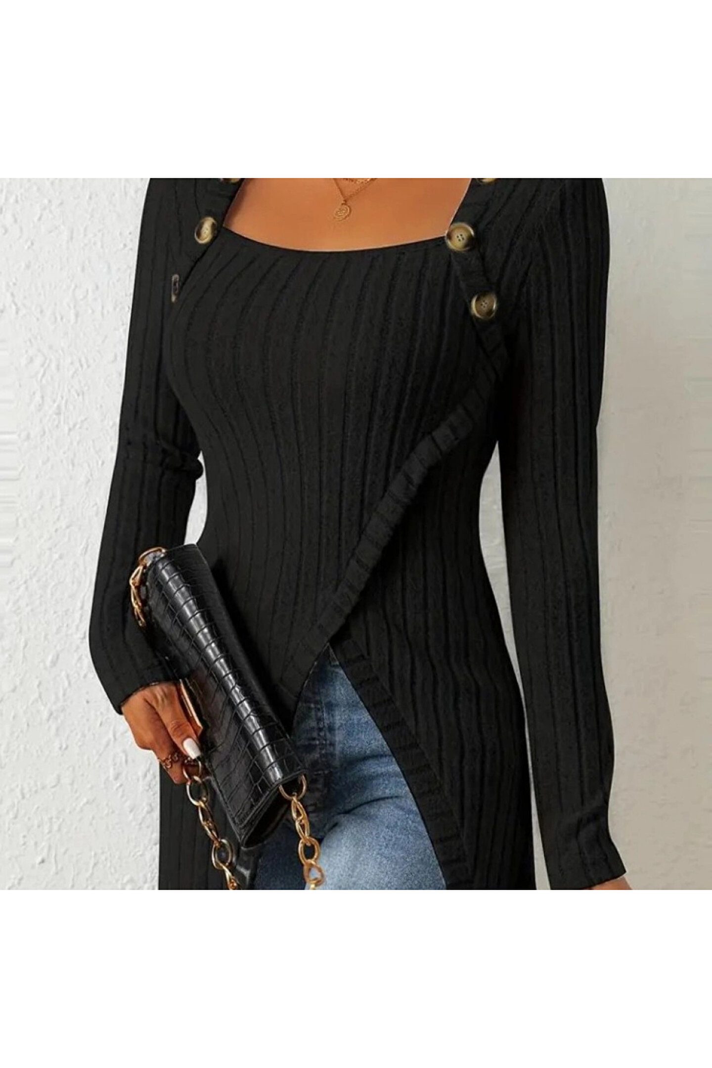 Silerra Kadın Uzun Kollu Derin Kare Yaka Düğme Detay şardonlu Kaşkorse Kruvaze Bluz