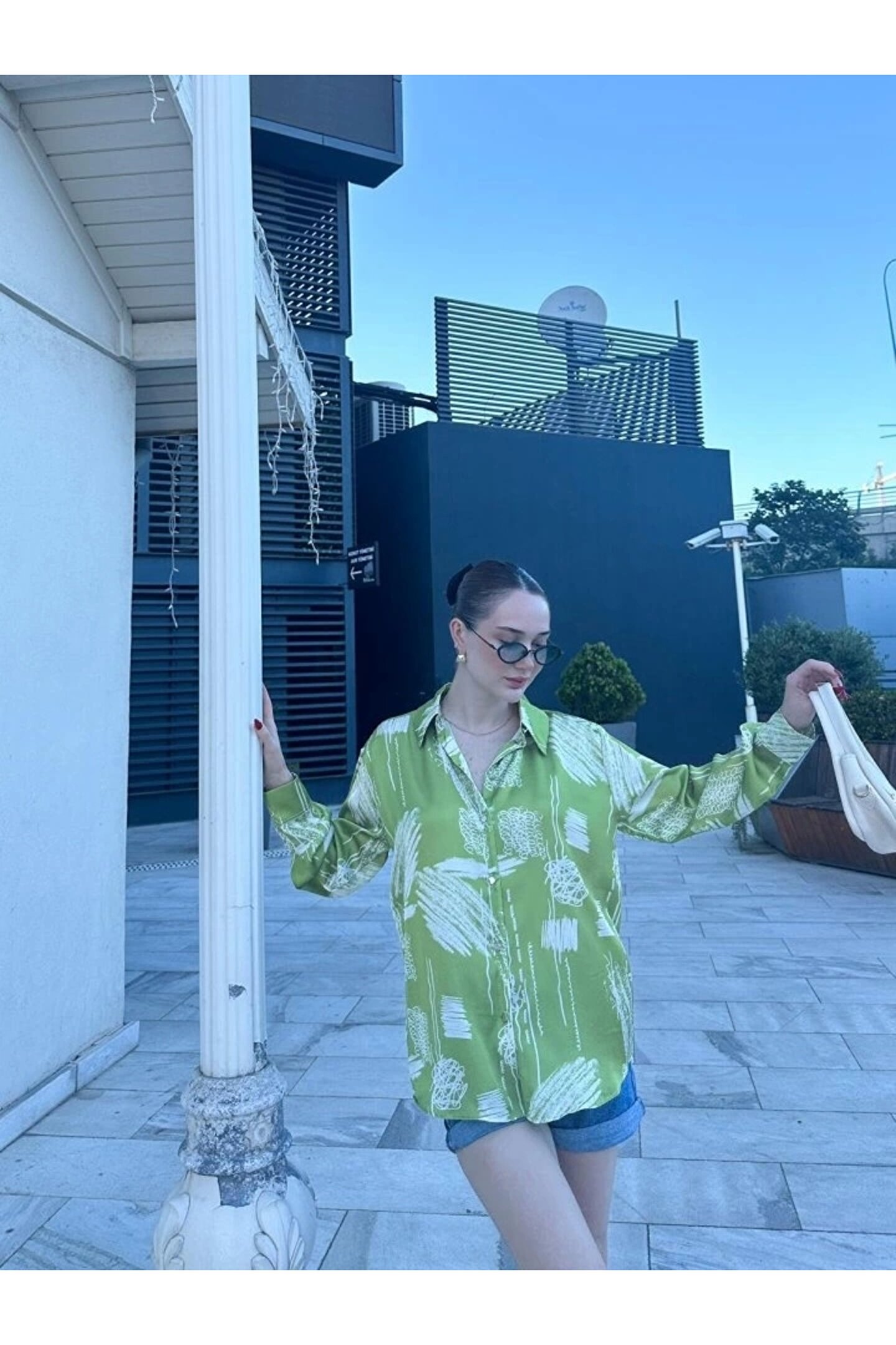 Kadın Uzun Kollu Dijital Baskılı Salaş Saten Gömlek