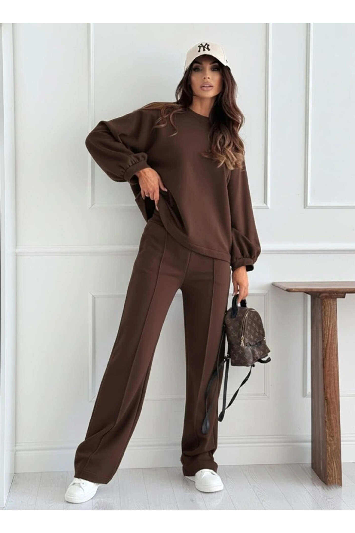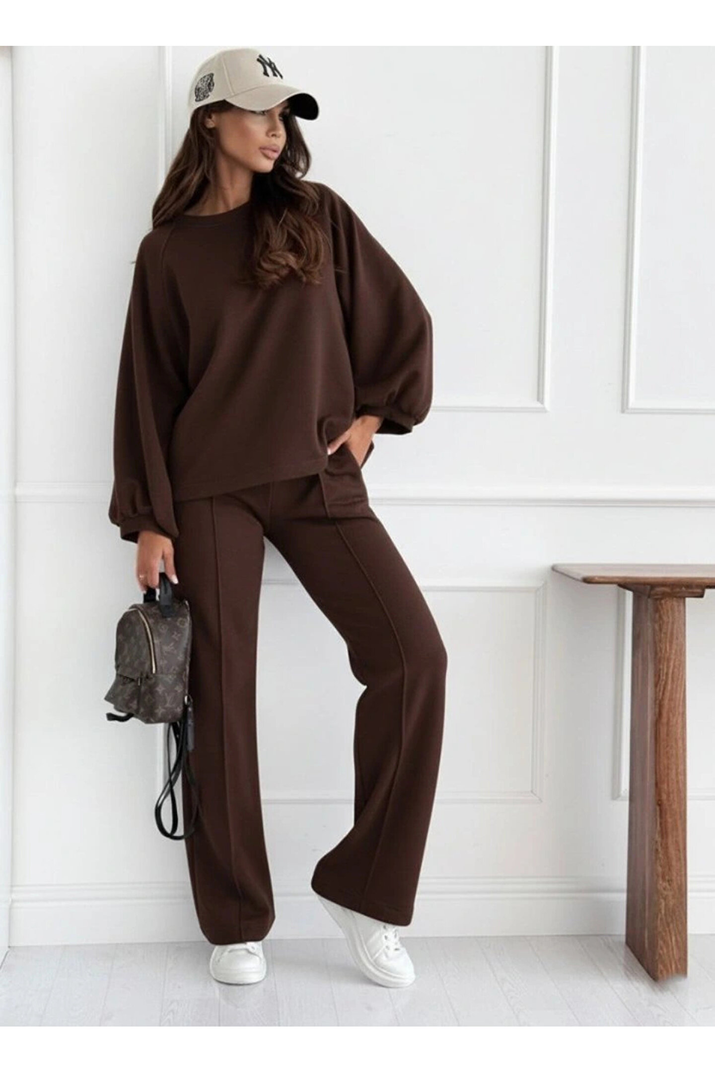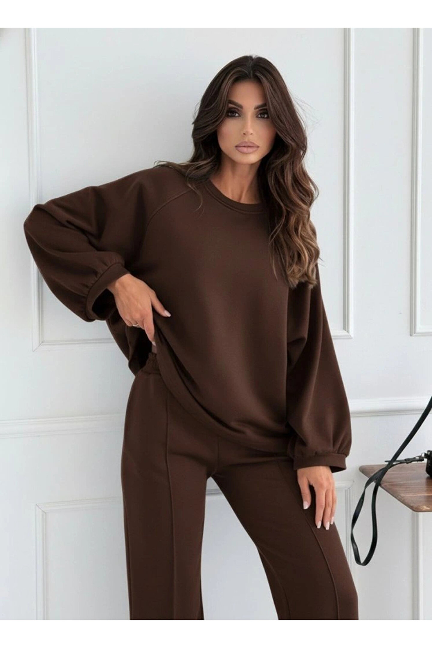 Kadın Uzun Kollu Geniş Kesim Modal Bluz Ve Pantolon Ikili Takım