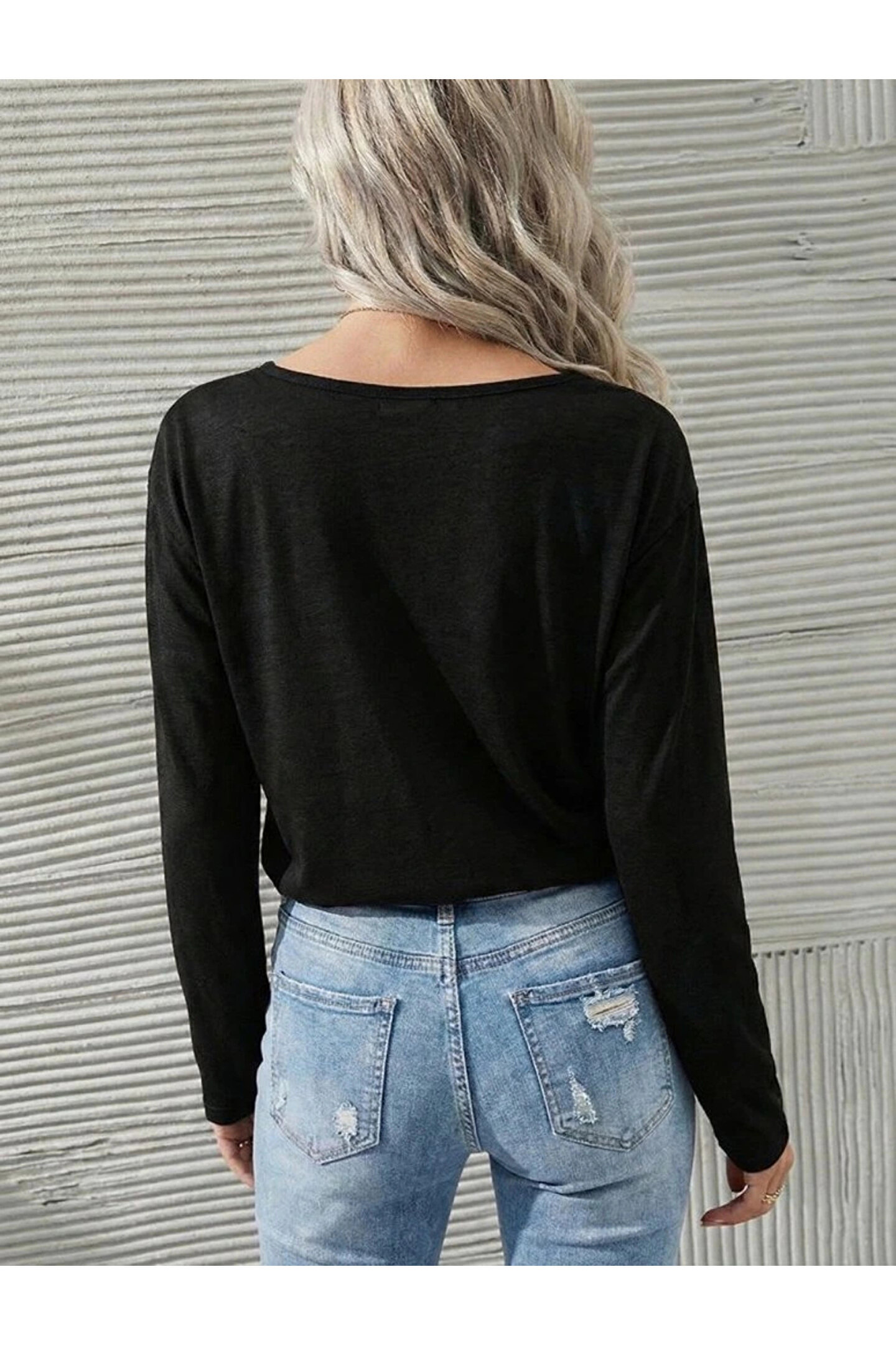 Kadın Uzun Kollu Geniş Yuvarlak Yaka Dantelli Viskon Iki Iplik Bluz