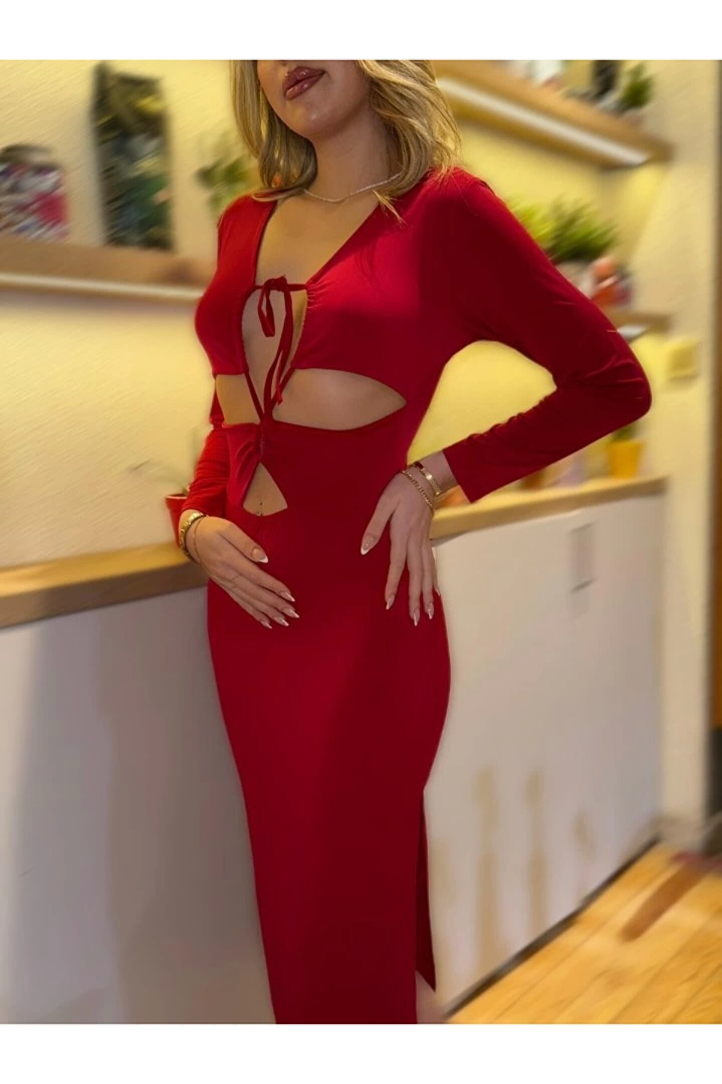 Kadın Uzun Kollu Göğüs Ve Göbek Dekolte Detay Sandy Midi Boy Elbise Modelin Ölçüleri: Boy:165, Kg:55, Göğüs:90, Bel:72, Kalça: 100 Modelin üzerindeki ürün M/38 bedendir EK OZELLIKLER-Boş/Ek özellik Yok KAPATMA TURU-Diger TARZ-Diger UZUNLUK-Midi Boy YAKA-V Yaka DESEN-Diğerleri KOL UZUNLUK-Uzun Kol TARZ-Gündelik KALIP-Diger