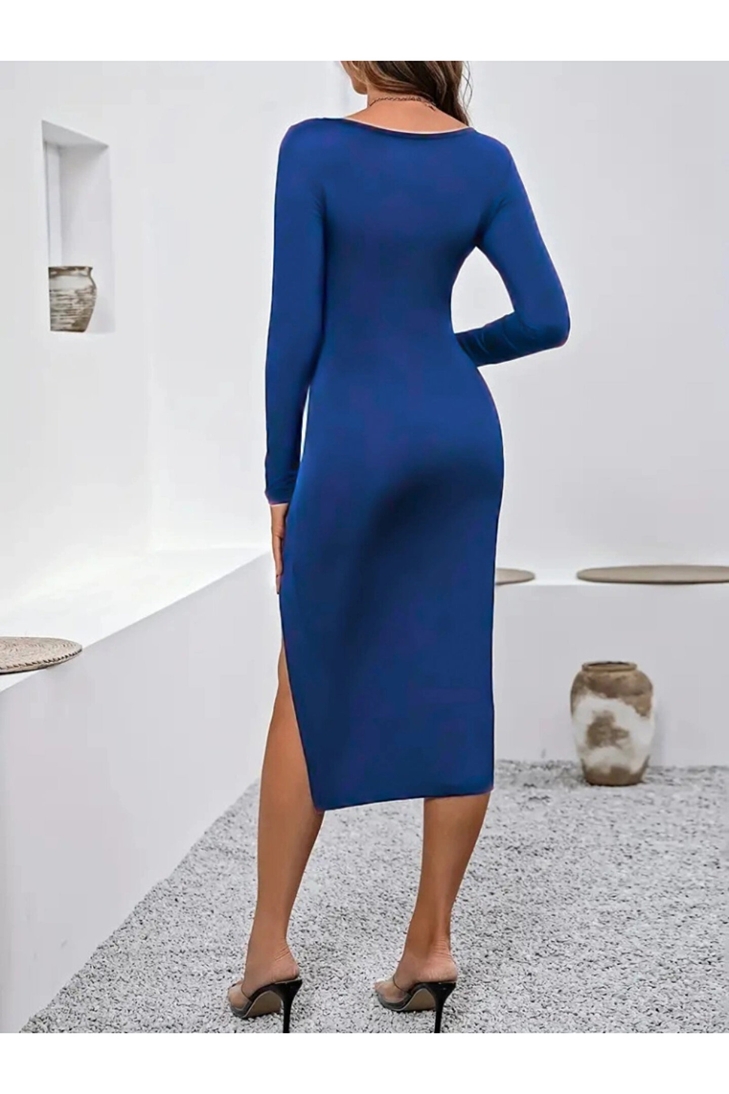 Kadın Uzun Kollu Göğüs Ve Göbek Dekolte Detay Sandy Midi Boy Elbise