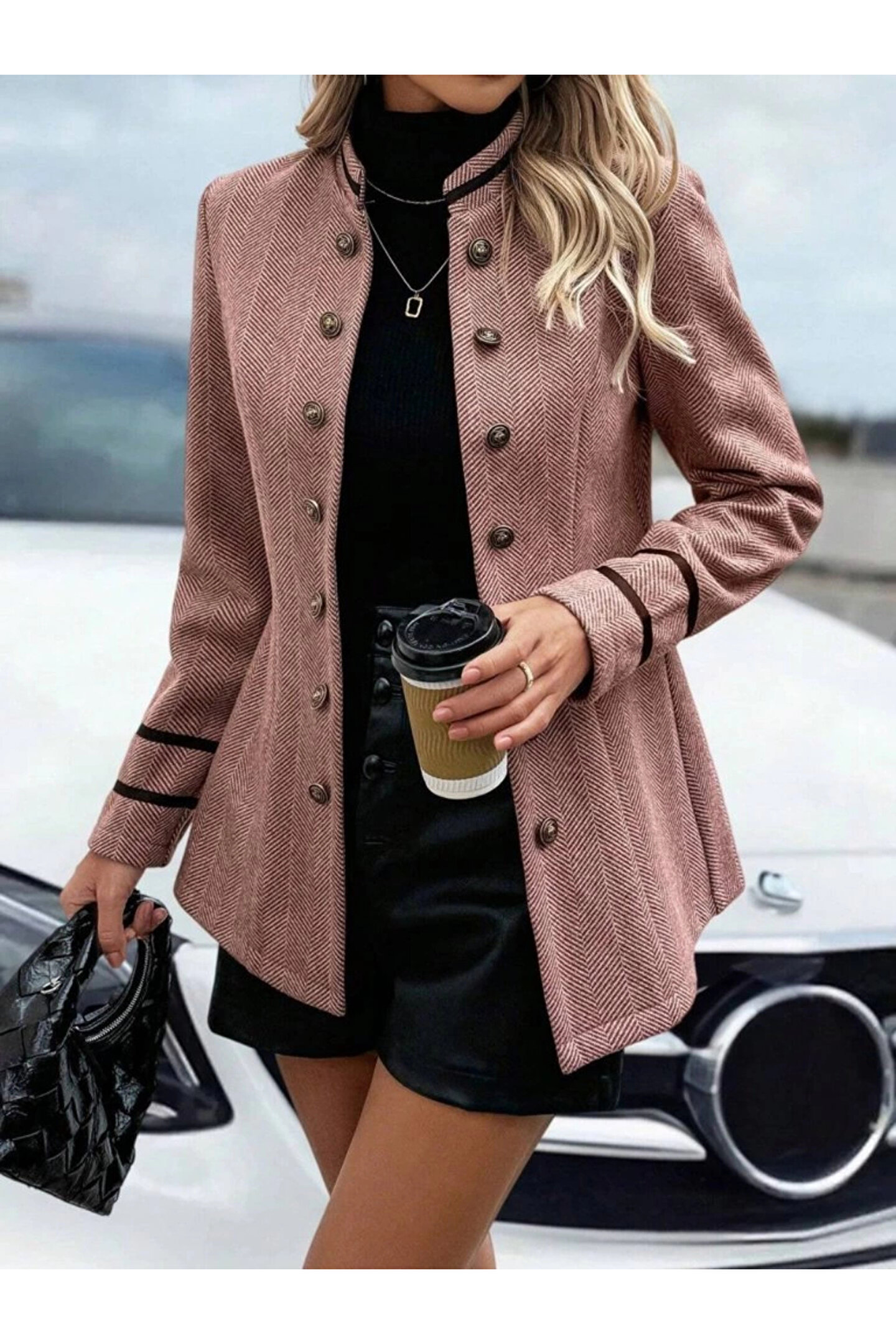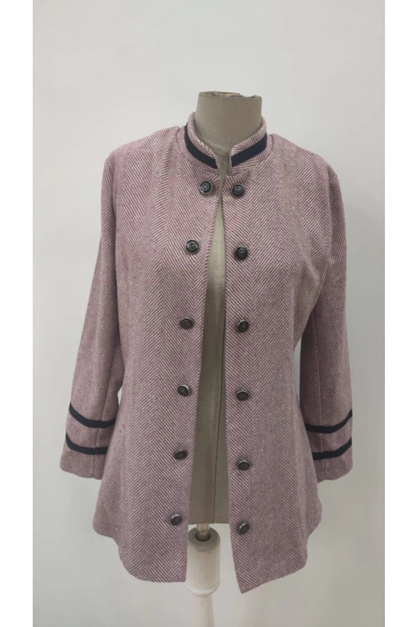 Kadın Uzun Kollu Hakim Yaka Düğme Detaylı Mini Dokuma Ceket